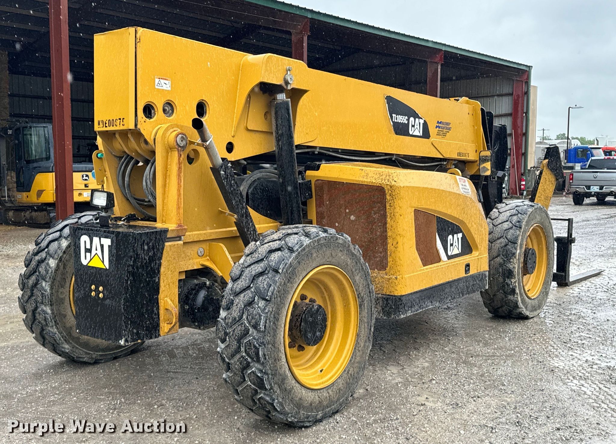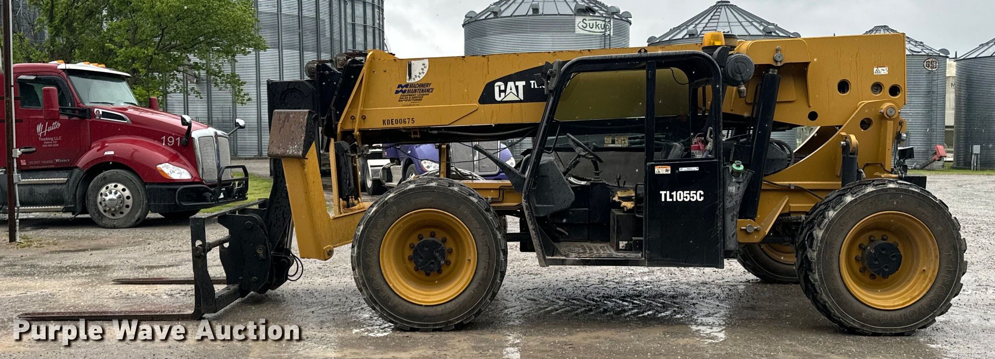 Purple Wave is selling a used Telehandler in Kansas. This item is a 2013 Caterpillar TL1055C telehandler with the following: Hours: 4,636 on meter, Hour meter replaced at 4,435 hours, Serial: KDE00675