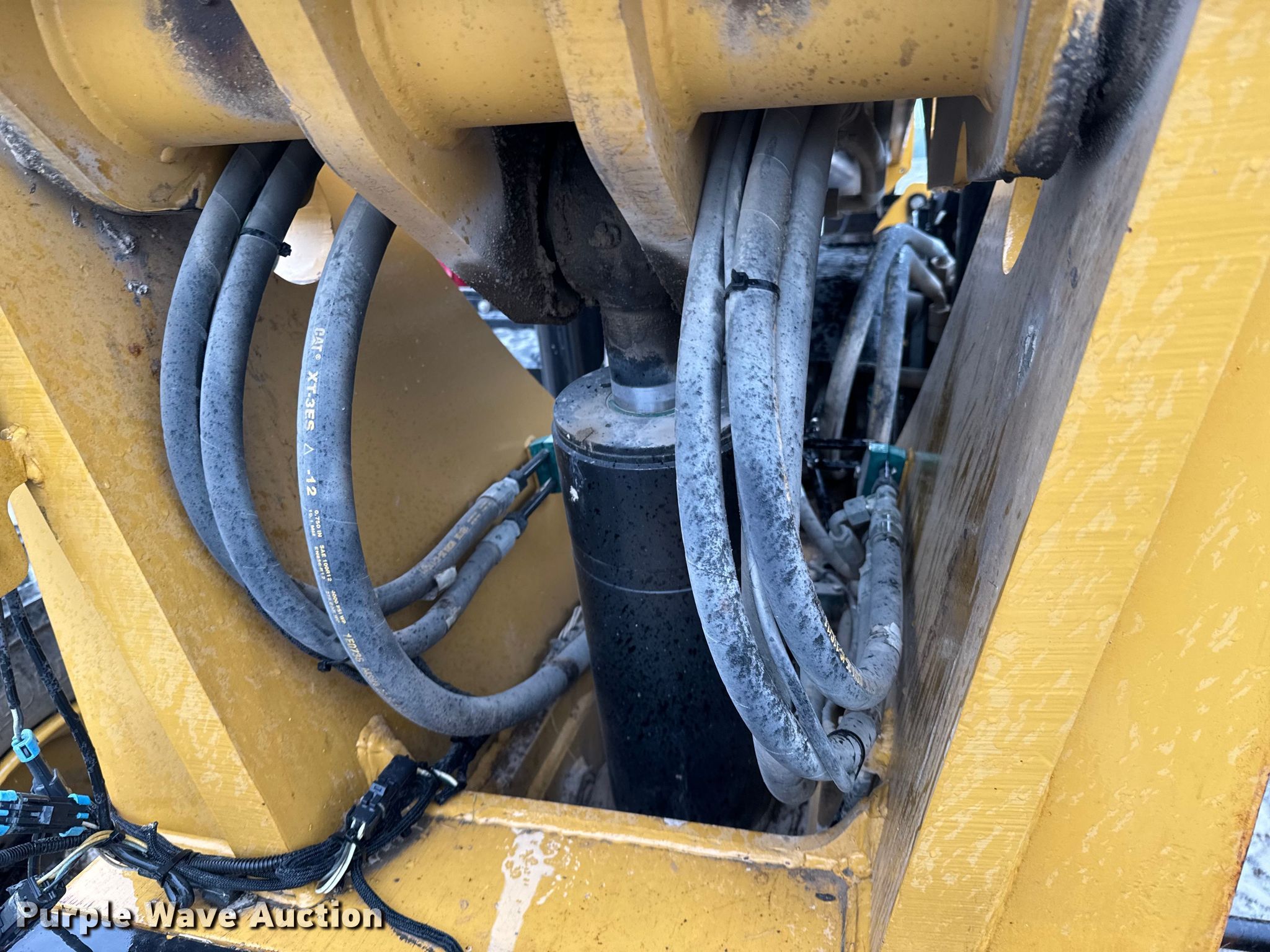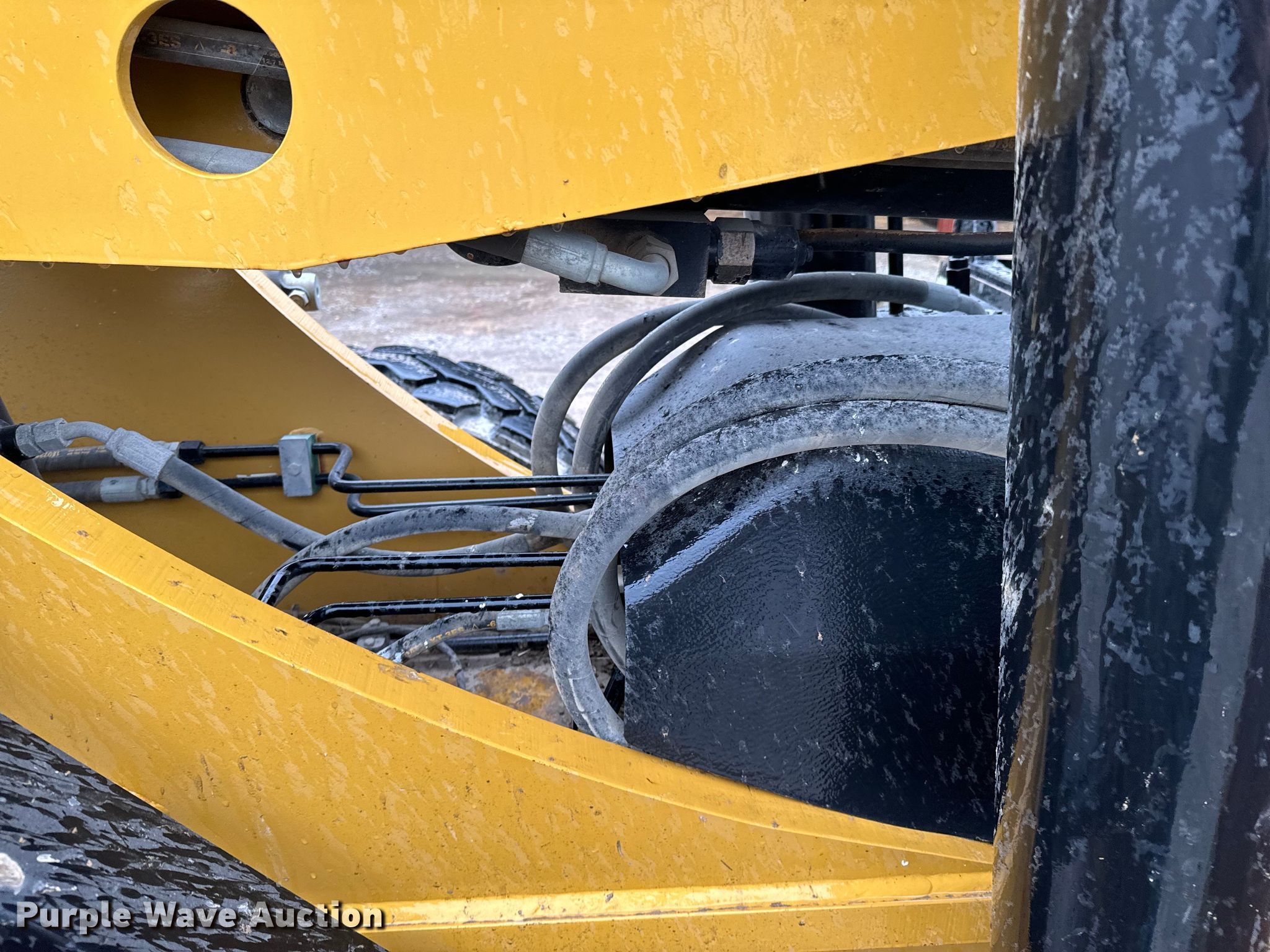 2013 Caterpillar TL1055C telehandler. Hours: 4,636 on meter Hour meter replaced at 4,435 hours, Serial: KDE00675. Engine Cylinders: 4, Fuel type: Diesel. Transmission Powershift, 4F - 4R, Four wheel drive. Operators station Canopy, Steering: Crab, Four wheel. Features Maximum lift capacity: 10,000 lbs, Maximum lift height: 56', Boom stages: 4, Fork length: 60", Auxiliary hydraulics, Tilt carriage, Hydraulic outriggers. Tires Size: 4.00/75-23. Hutto Trucking. Galena, KS 66739