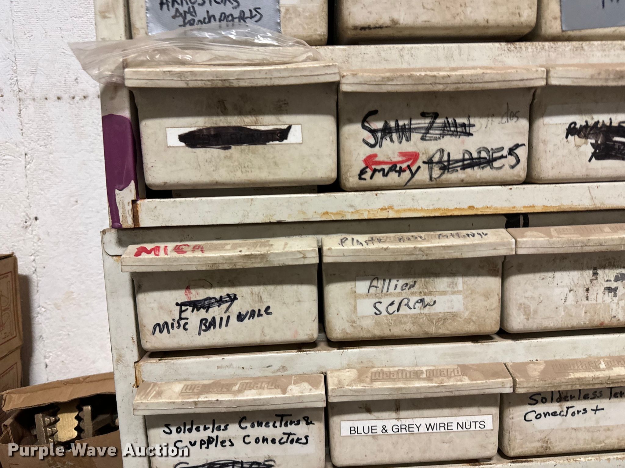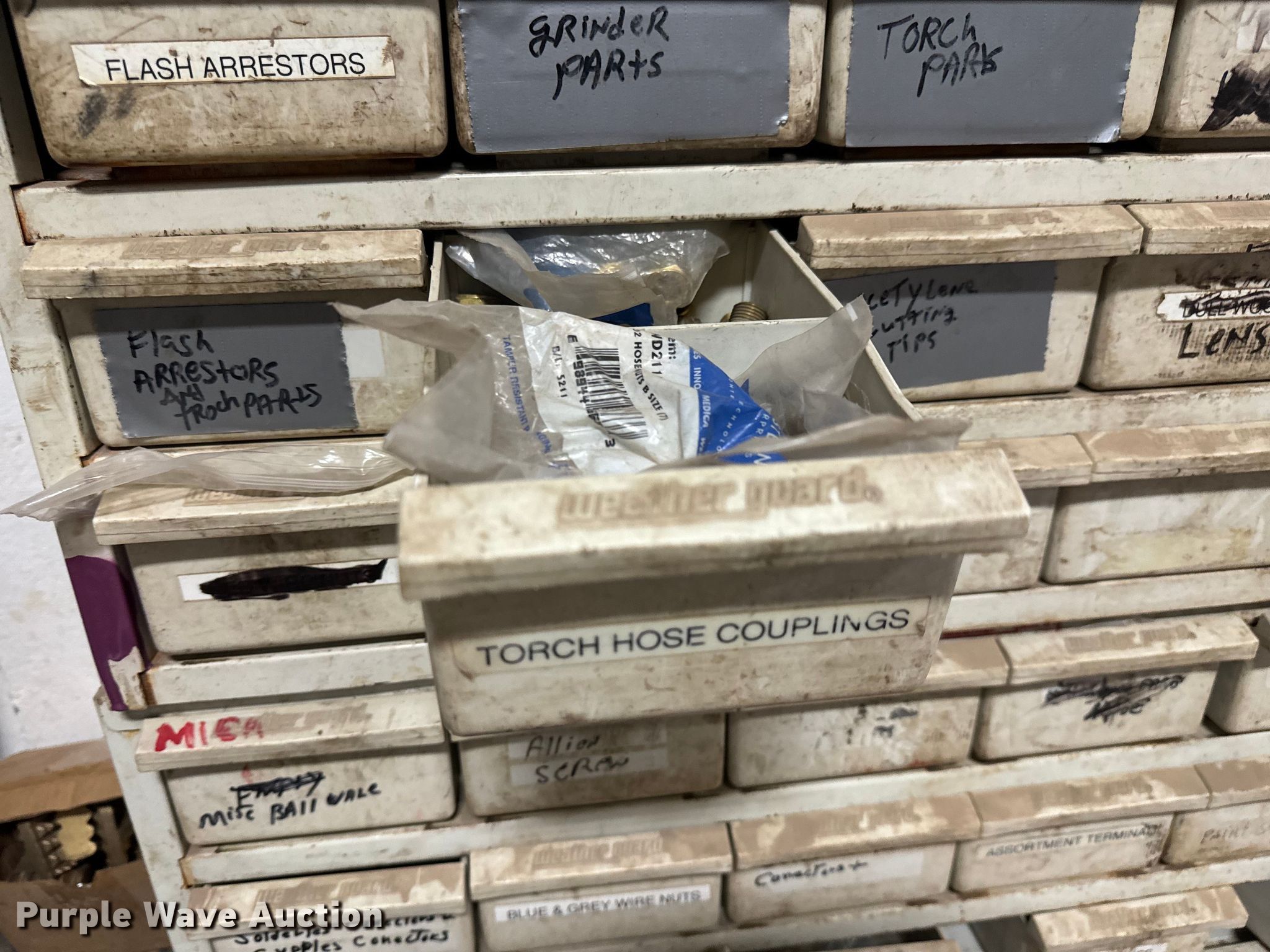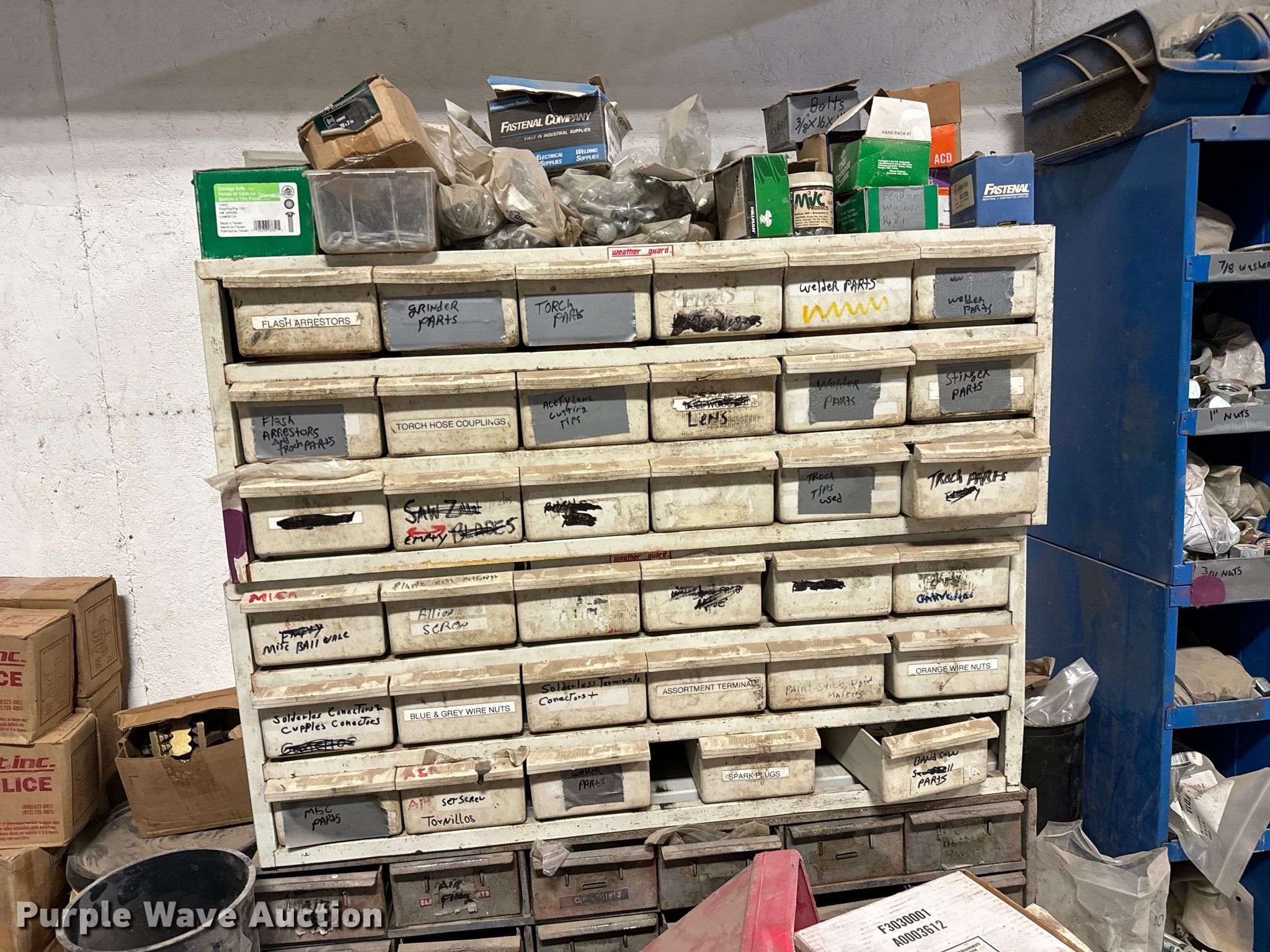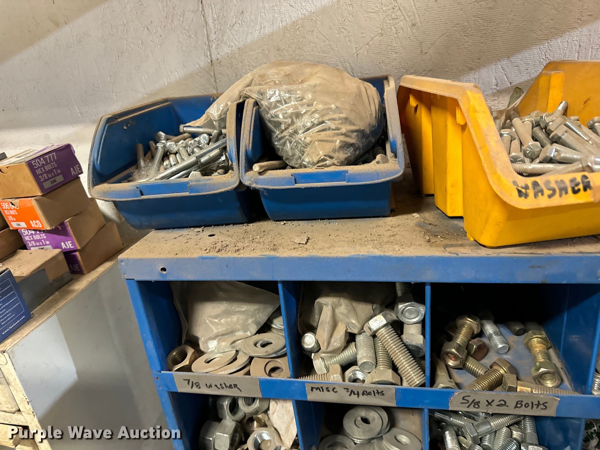 Purple Wave is selling a used Tools in Kansas. This item is a Tools with the following: Hardware, Electrical supplies, Torch supplies, Welding supplies, Shelving, Bins, Workbench and more