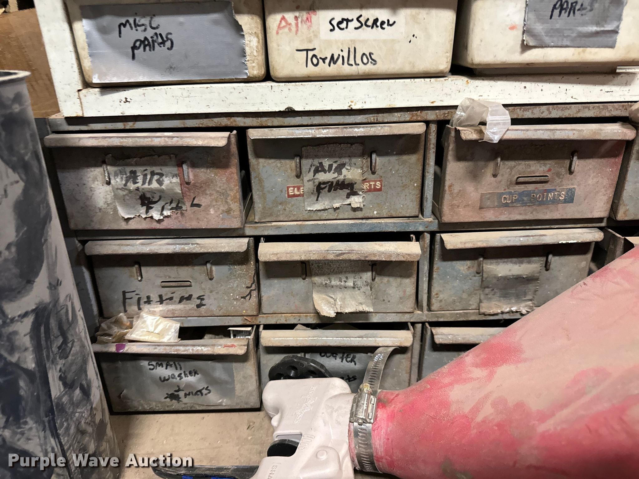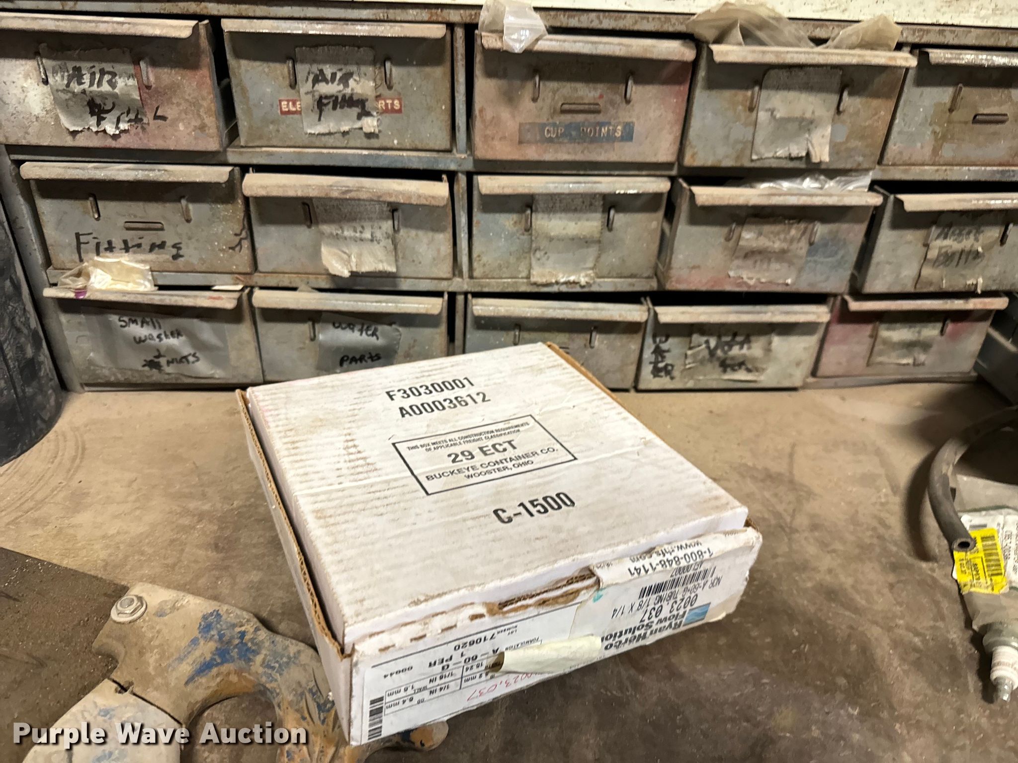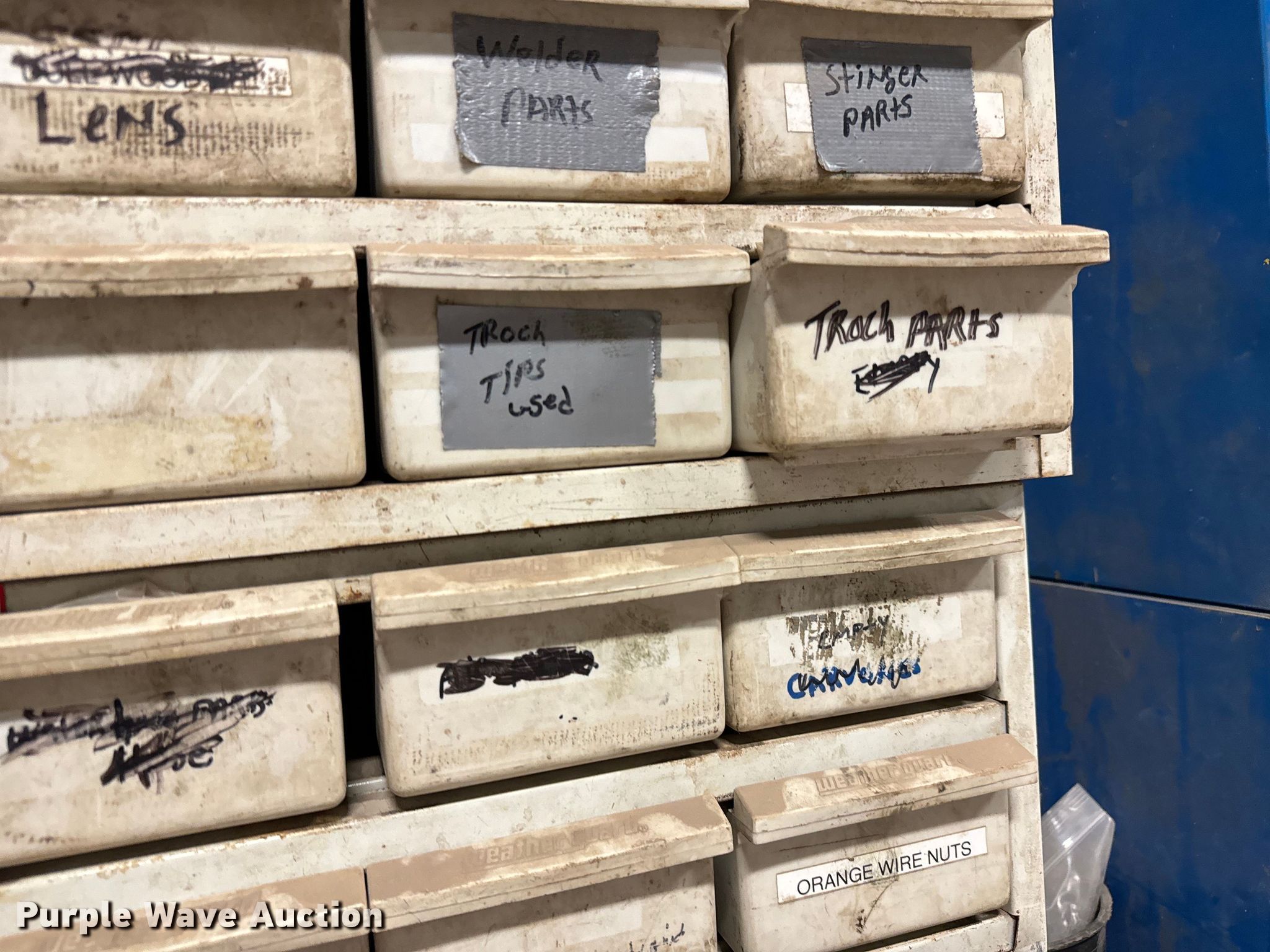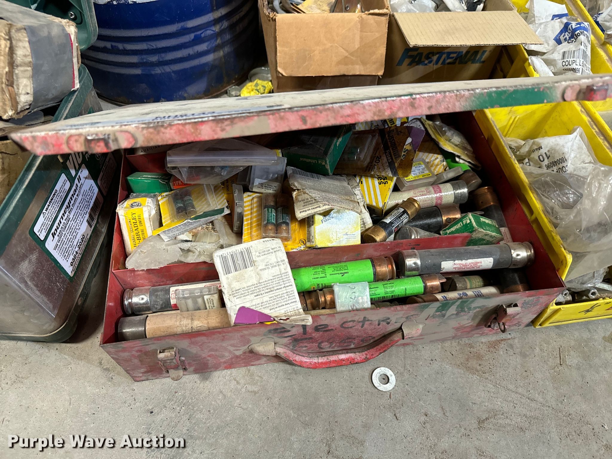 Purple Wave is selling a used Tools in Kansas. This item is a Tools with the following: Hardware, Electrical supplies, Torch supplies, Welding supplies, Shelving, Bins, Workbench and more