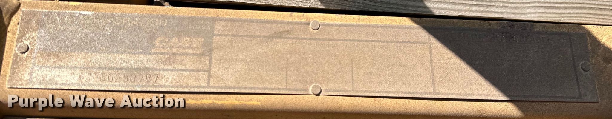 1997 Case 586E forklift. Hours: Unknown, Serial: JJG0250787. Engine Case 4-390, Serial: 45403152, Displacement: 3.9L, Cylinders: 4, Fuel type: Diesel. Transmission Shuttle shift. Chassis Differential lock. Operators station OROPS. Features Maximum lift capacity: 6,000 lbs, Maximum lift height: 258", Mast stages: 3, Side shift, Mast tilt, Fork length: 48". Tires Front: 19.5L-24, Rear: ST235/85R16. Notes No key, Dead battery, Engine issues , Non-operational unit. Belshe Trailers. Tecumseh, OK 74873