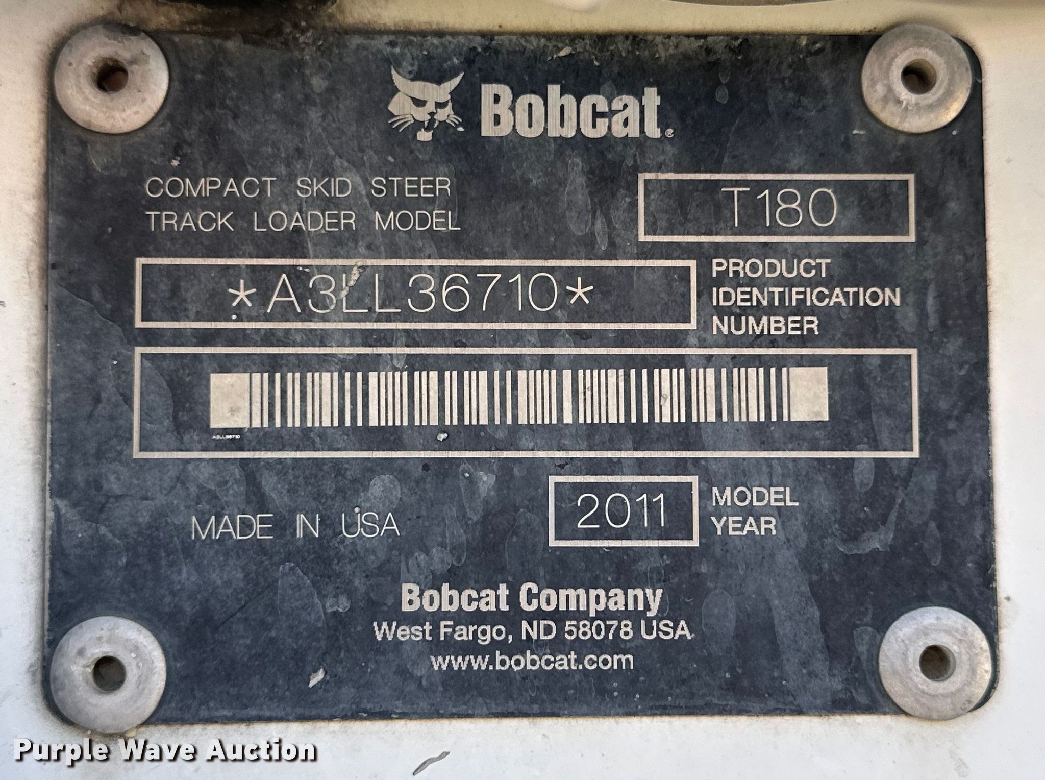 Purple Wave is selling a used Tracked Skid Steer Loader in Nebraska. This item is a 2011 Bobcat T180 tracked skid steer loader with the following: Hours: 3,519 on meter, Serial: A3LL36710, Unit #: 980