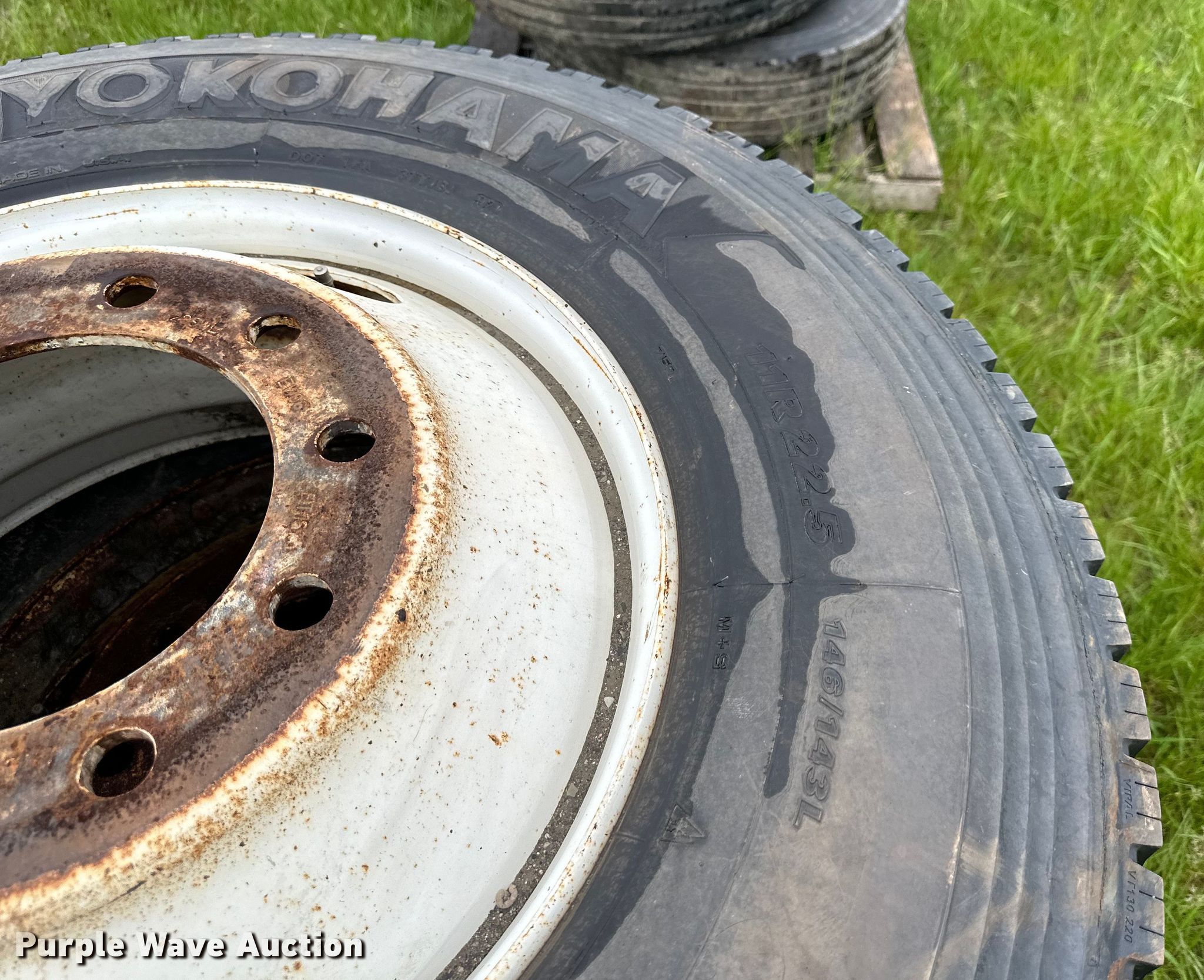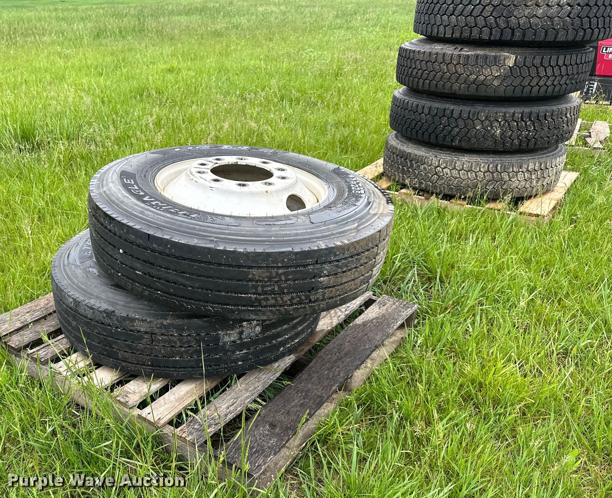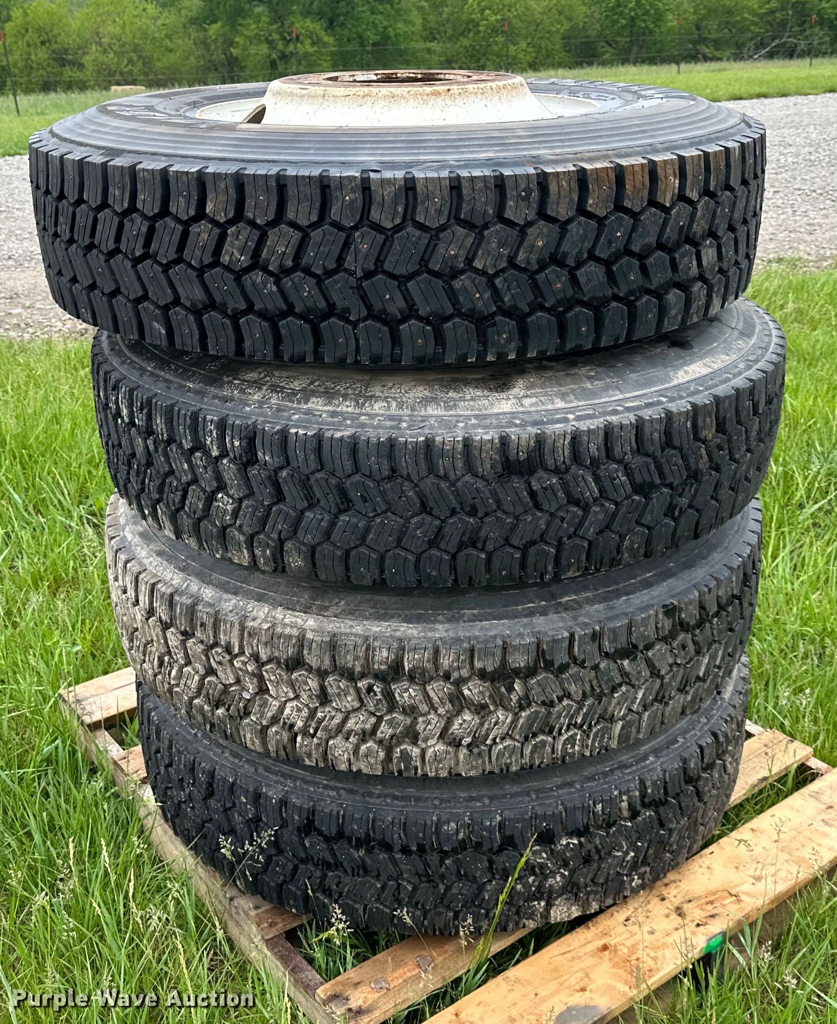 Purple Wave is selling a used Fleet Tires in Kansas. This item is a (6) 11R22.5 studded tires with the following: Tire chains