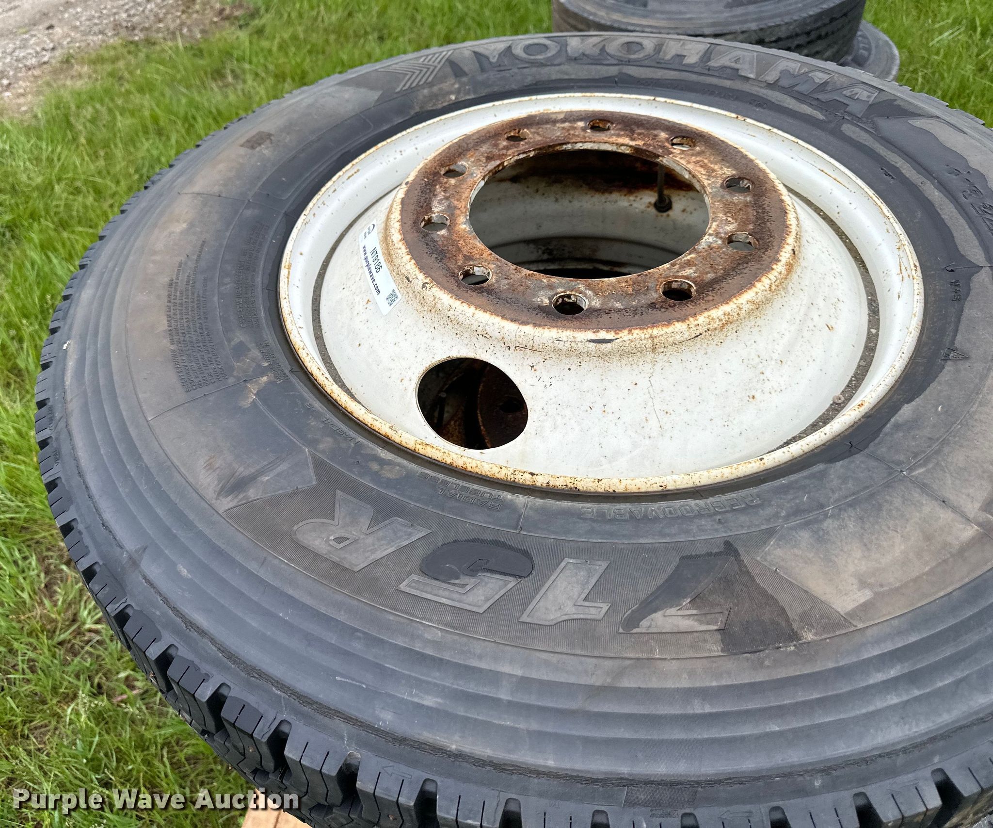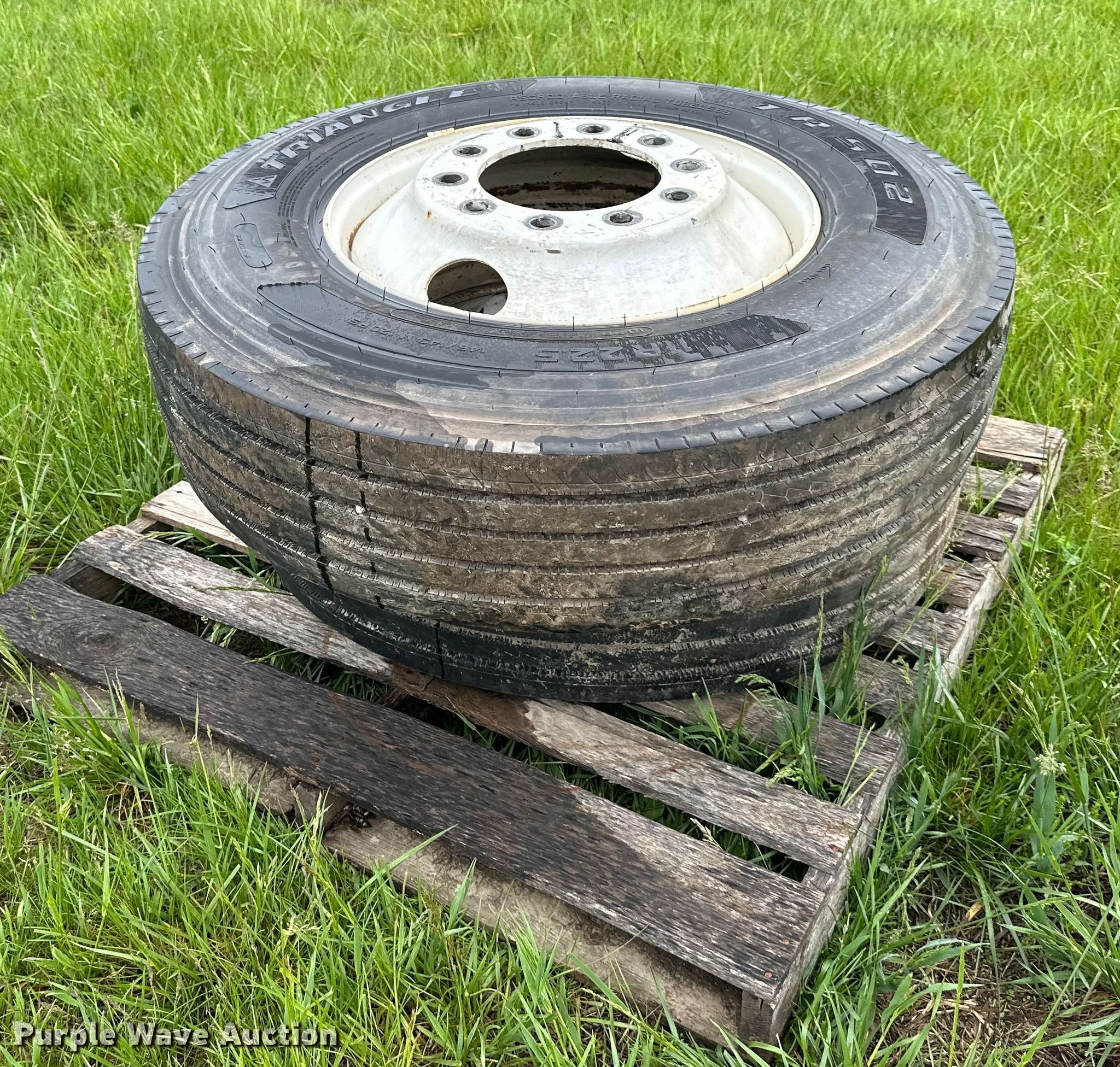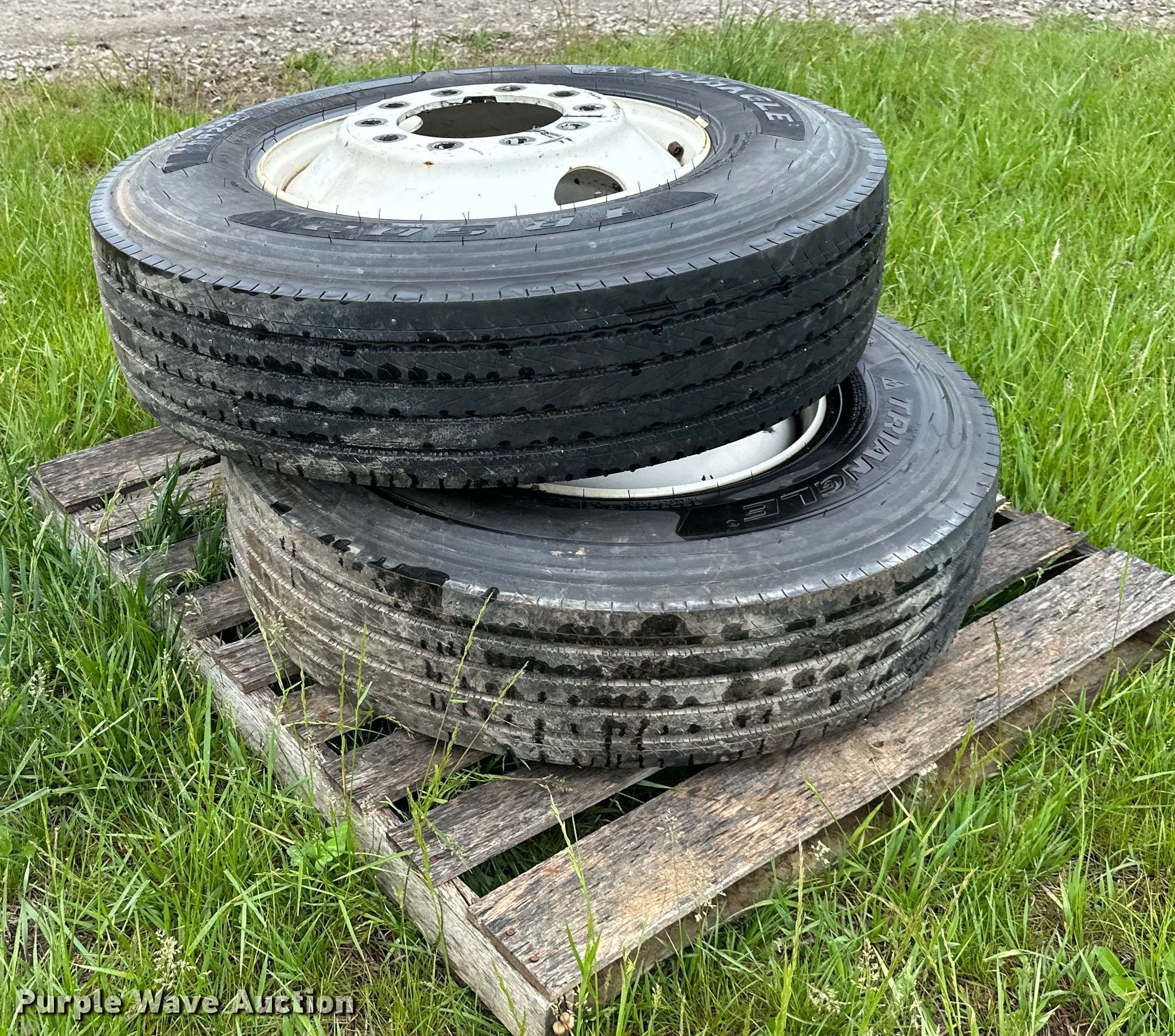 Purple Wave is selling a used Fleet Tires in Kansas. This item is a (6) 11R22.5 studded tires with the following: Tire chains