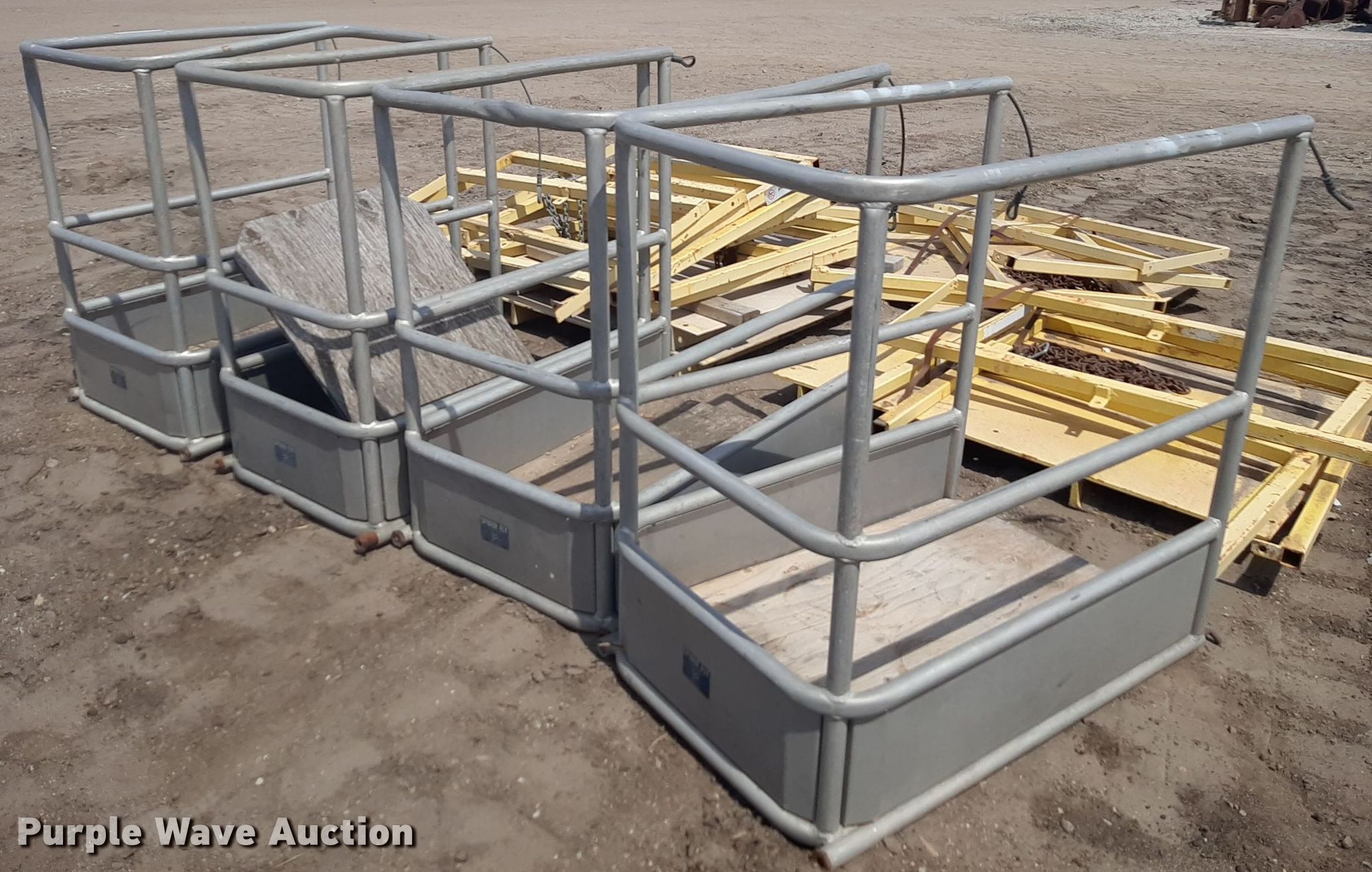 Purple Wave is selling a used Tools in Kansas. This item is a Tools with the following: (4) metal baskets, (4) aluminum lift cages
