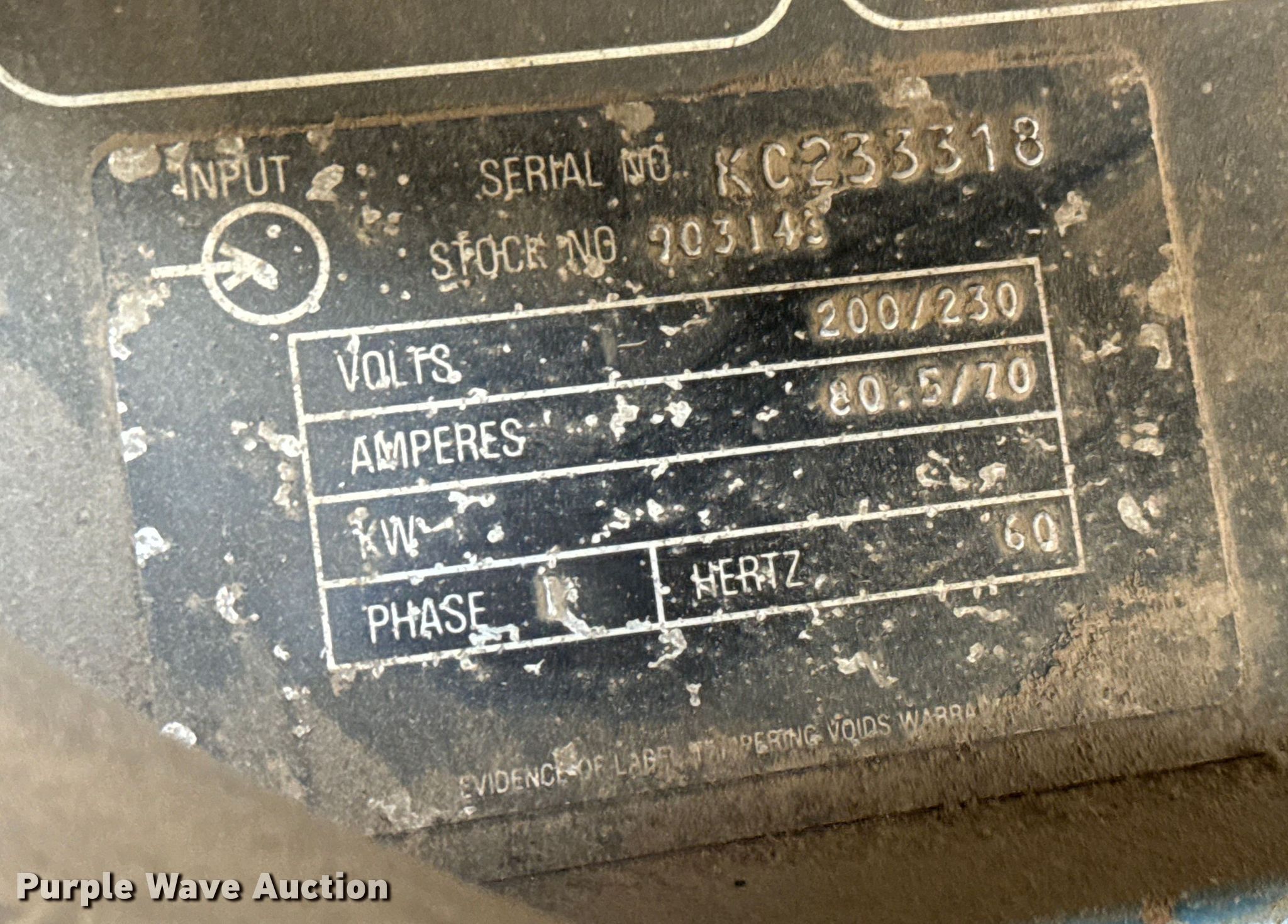 Millerm Spectrum 500 plasma cutter. Electric Motor. Volts: 200/230, Phase: Single. Notes Unknown operating condition. Sherwood Construction Company. Wichita, KS 67277