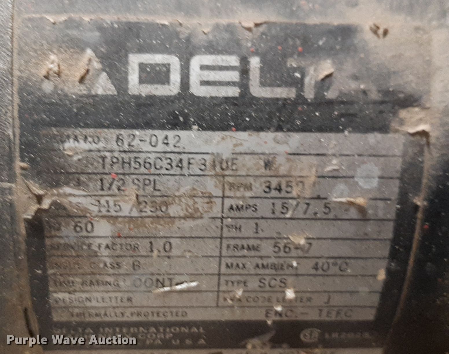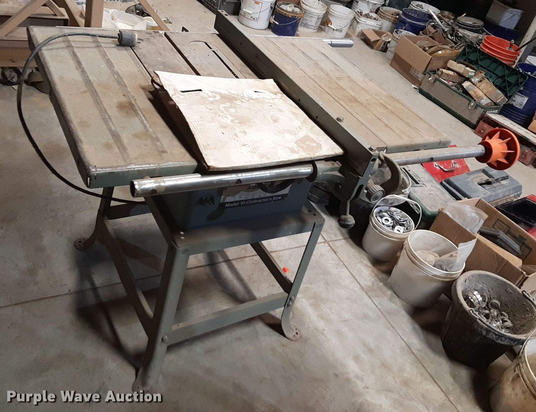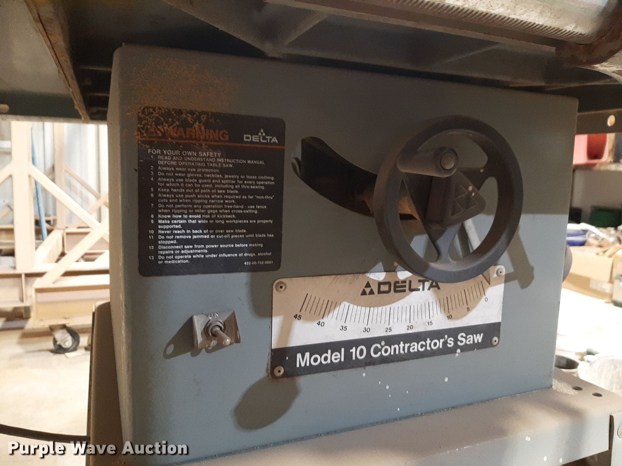 Purple Wave is selling a used Tools in Kansas. This item is a Delta Model 10 table saw with the following: Volts: 115, Unknown operating condition