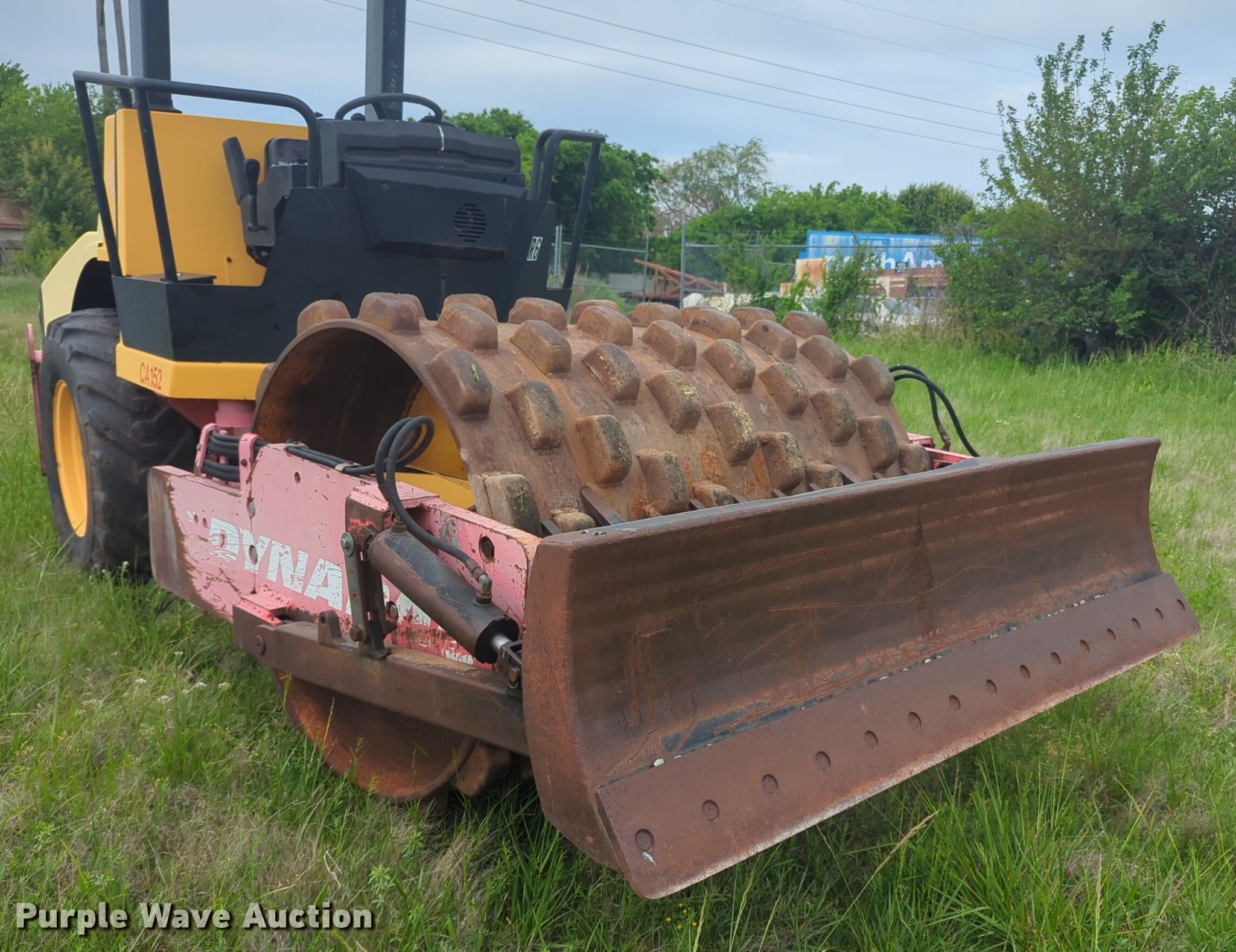 1999 Dynapac CA152PD single drum vibratory roller. Hours: 2,078 on meter, Serial: 64320433. Engine Cummins B3.9-C, Displacement: 3.9L, Cylinders: 4, Fuel type: Diesel. Transmission Hydrostatic. Features Drum: Padfoot, Vibratory system: Single, Front drum Width: 70", Diameter: 40", Drum scrapers: Front, Front blade width: 88". Tires Size: 14.9-24. Notes Unknown operating condition of front blade. Steve's Wholesale Tools. Oklahoma City, OK 73139