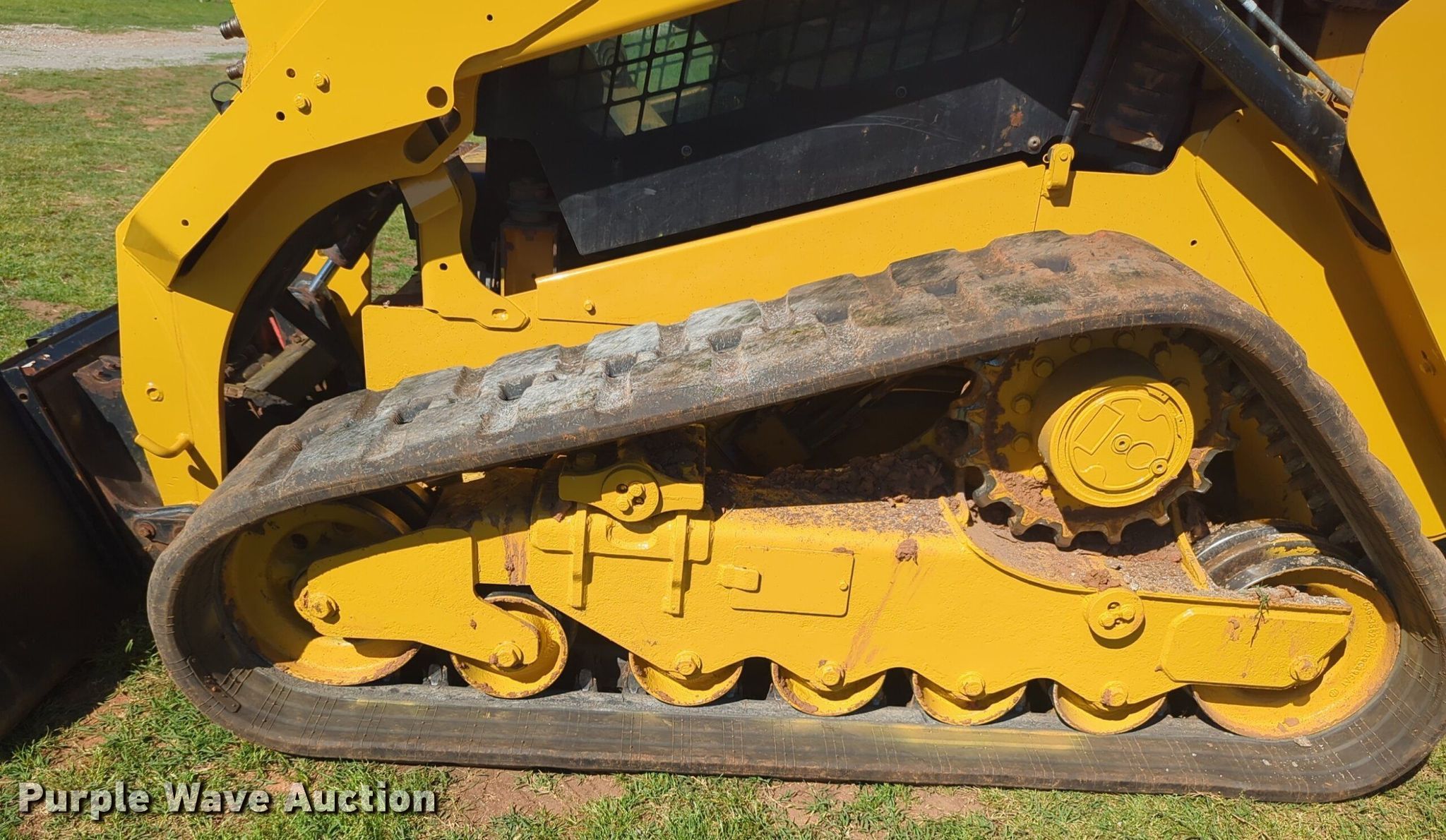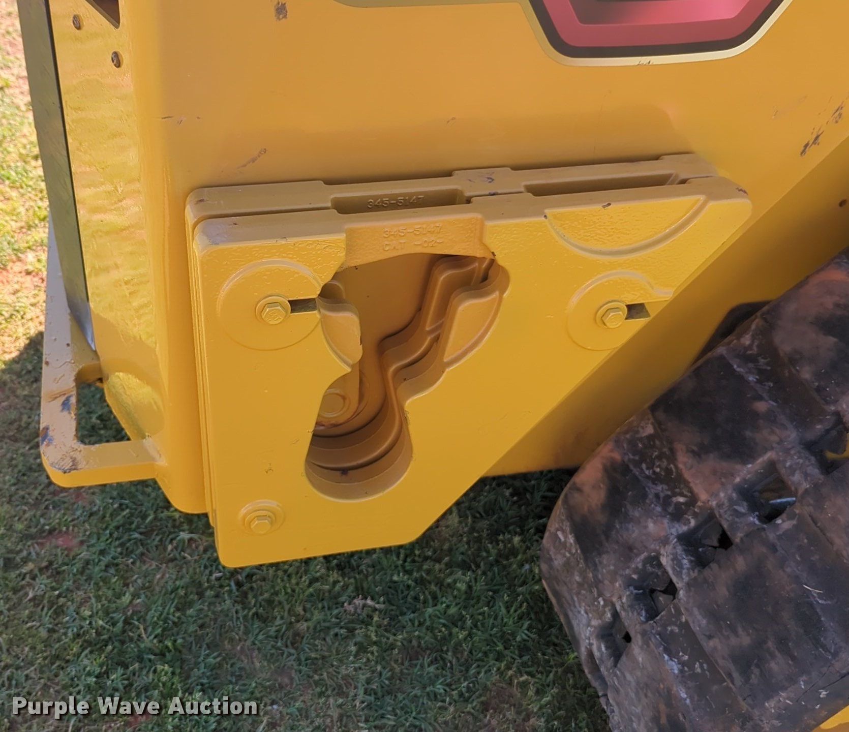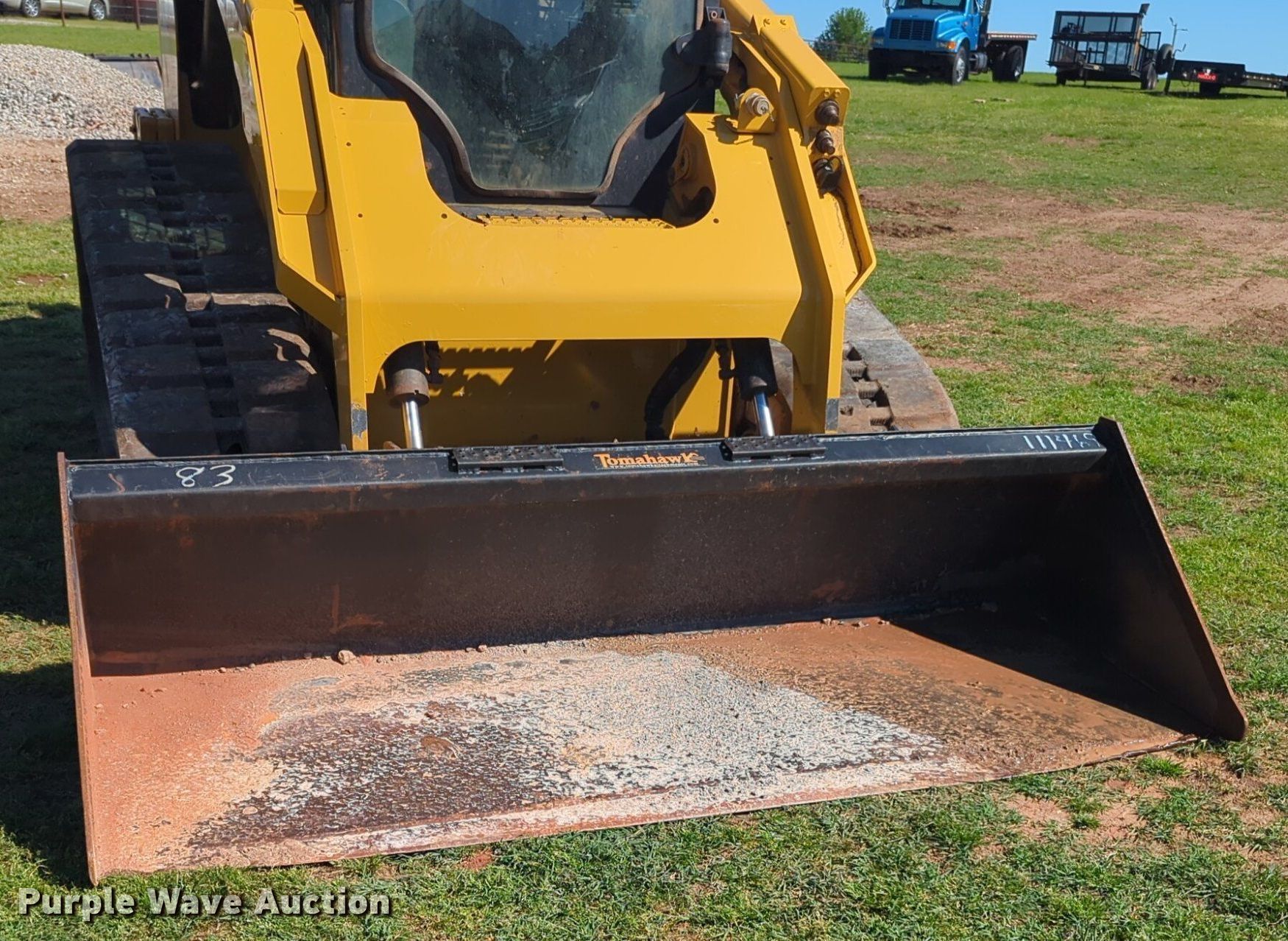 2019 Caterpillar 289D3 skid steer loader. Hours: 1,748 on meter, Serial: CAT0289DKJX900761. Engine Caterpillar C3.3B-CR-T-EF04, Displacement: 3.3L, Cylinders: 4, Fuel type: Diesel. Transmission Hydrostatic, Two speed travel. Operators station Enclosed cab, AC, Heat, Bucket control: Hand, Electronic Monitoring System panel. Features Auxiliary hydraulics, Auxiliary electrical outlet, Quick coupler: Hydraulic, Counter weights, Bucket Tomahawk, Width: 84". Tracks Width: 17.5". Escobars Landscaping LLC. Yukon, OK 73099