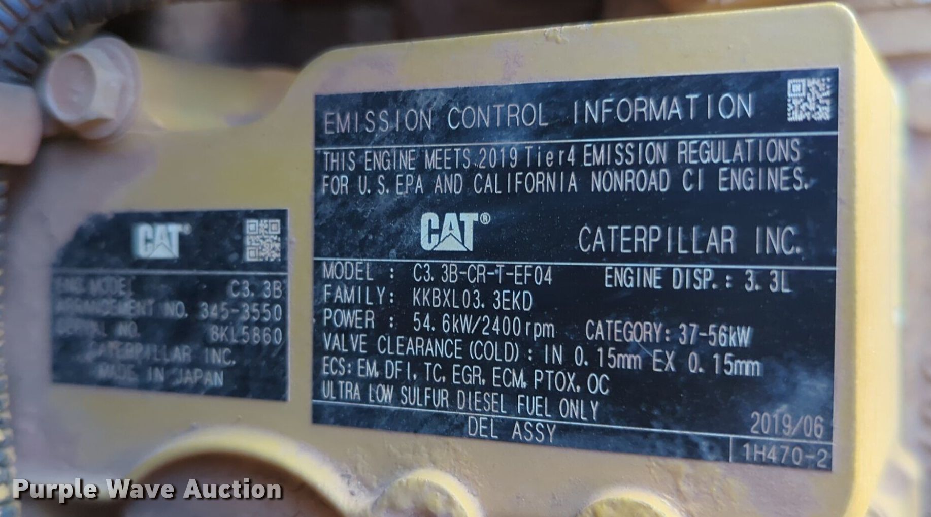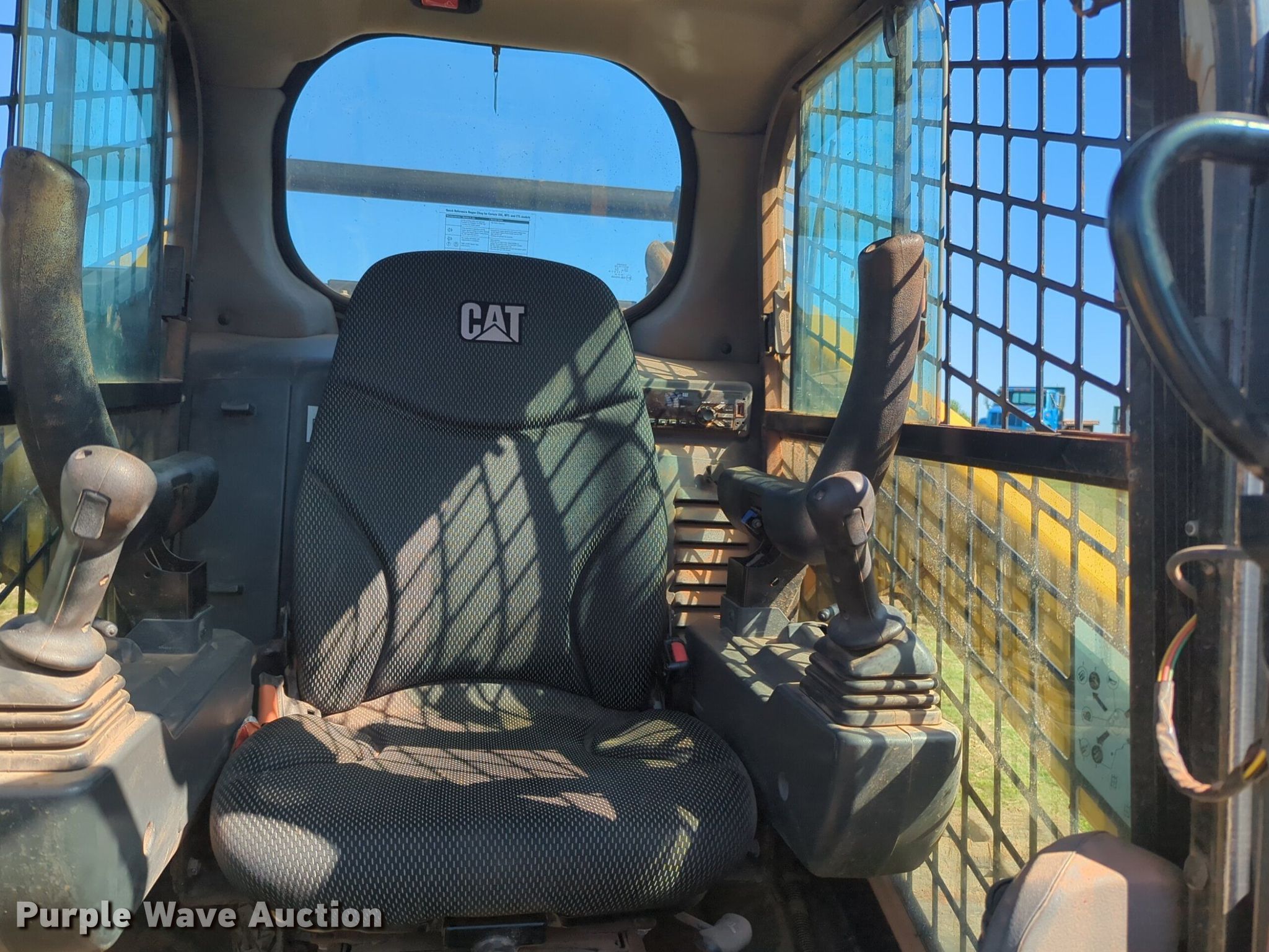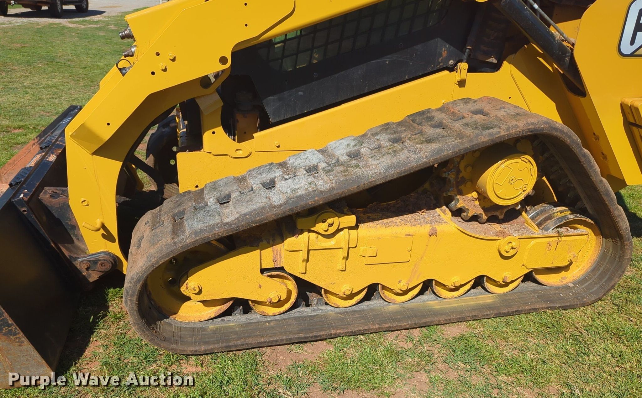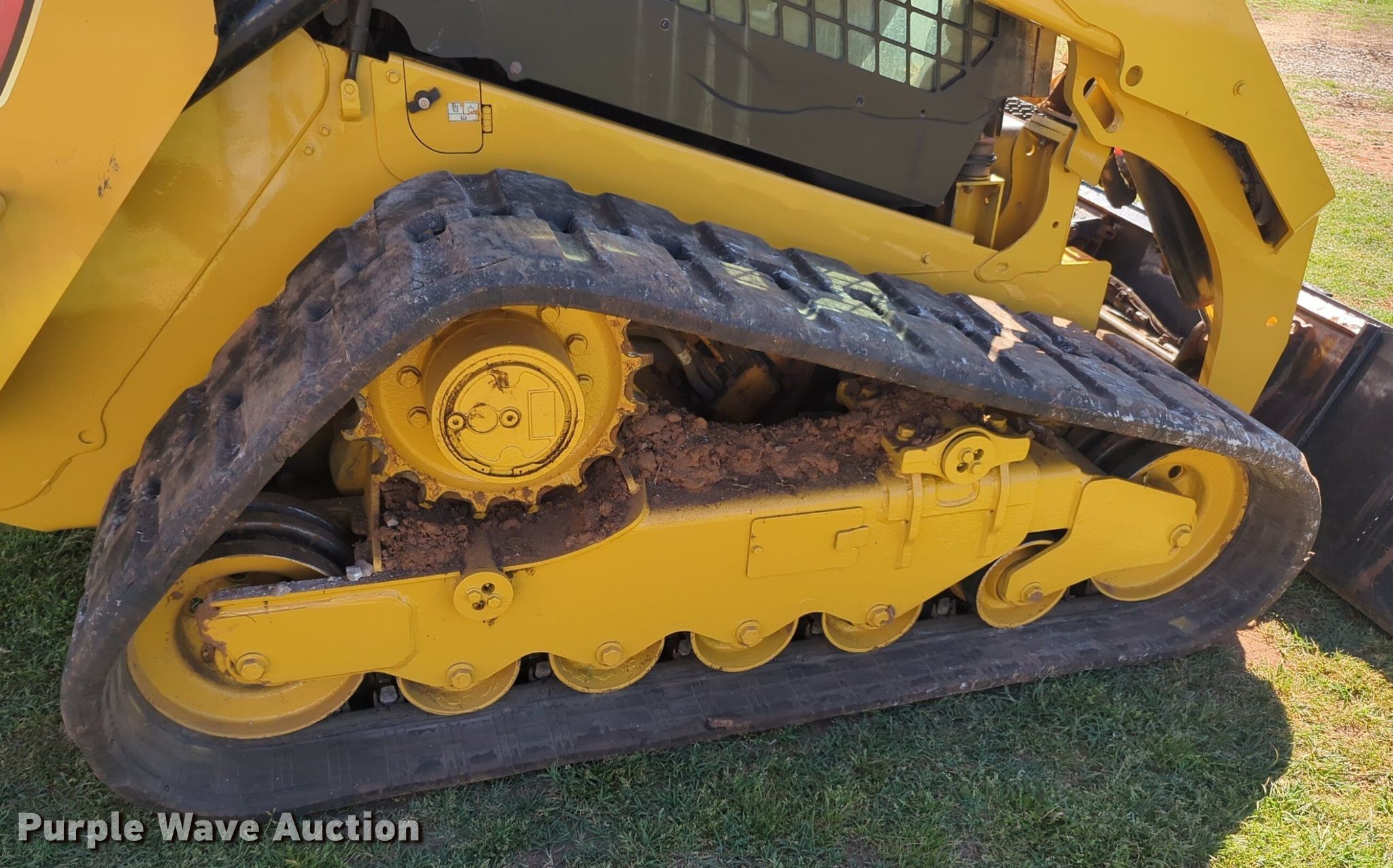 2019 Caterpillar 289D3 skid steer loader. Hours: 1,748 on meter, Serial: CAT0289DKJX900761. Engine Caterpillar C3.3B-CR-T-EF04, Displacement: 3.3L, Cylinders: 4, Fuel type: Diesel. Transmission Hydrostatic, Two speed travel. Operators station Enclosed cab, AC, Heat, Bucket control: Hand, Electronic Monitoring System panel. Features Auxiliary hydraulics, Auxiliary electrical outlet, Quick coupler: Hydraulic, Counter weights, Bucket Tomahawk, Width: 84". Tracks Width: 17.5". Escobars Landscaping LLC. Yukon, OK 73099