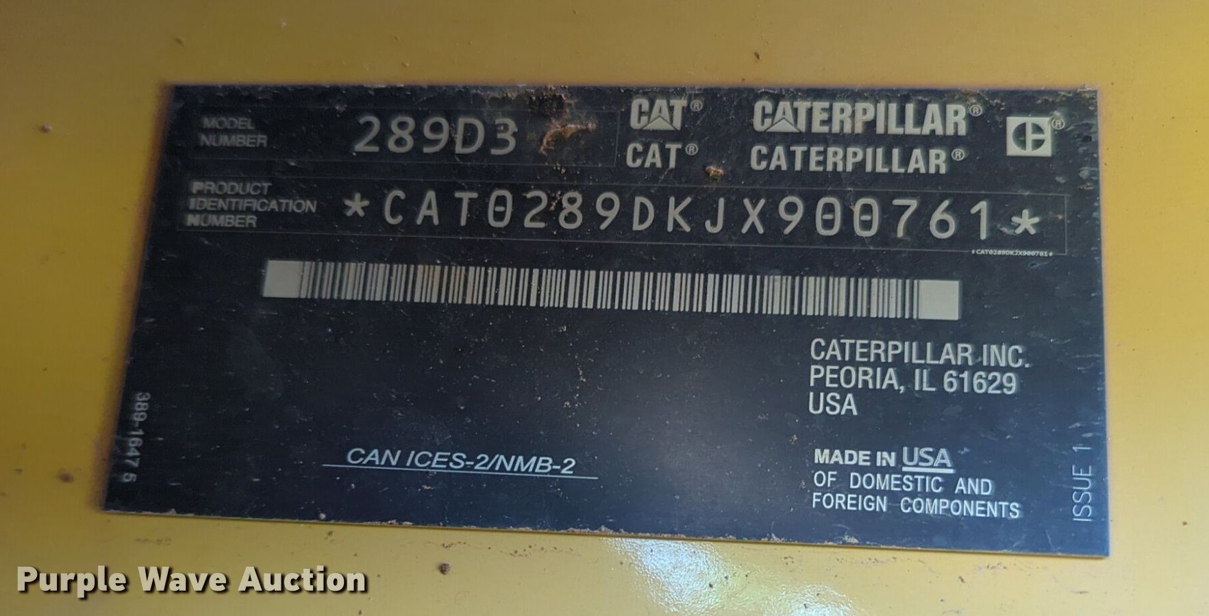 Purple Wave is selling a used Tracked Skid Steer Loader in Oklahoma. This item is a 2019 Caterpillar 289D3 skid steer loader with the following: Hours: 1,748 on meter, Serial: CAT0289DKJX900761