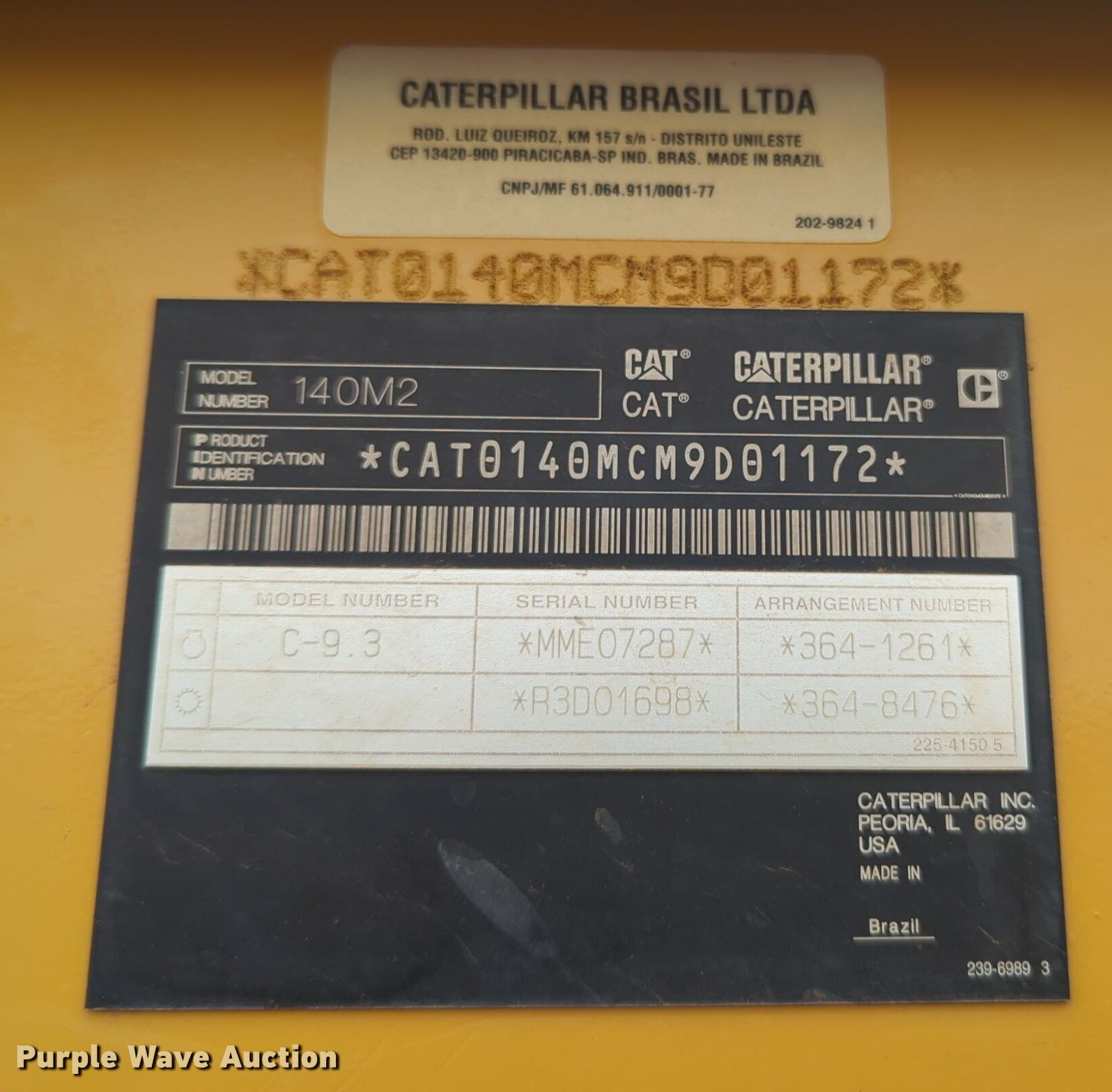 Purple Wave is selling a used Motor Grader in Oklahoma. This item is a 2012 Caterpillar 140M2 VHP motor grader with the following: Hours: 4,666 on meter, Serial: CAT0140MCM9D01172