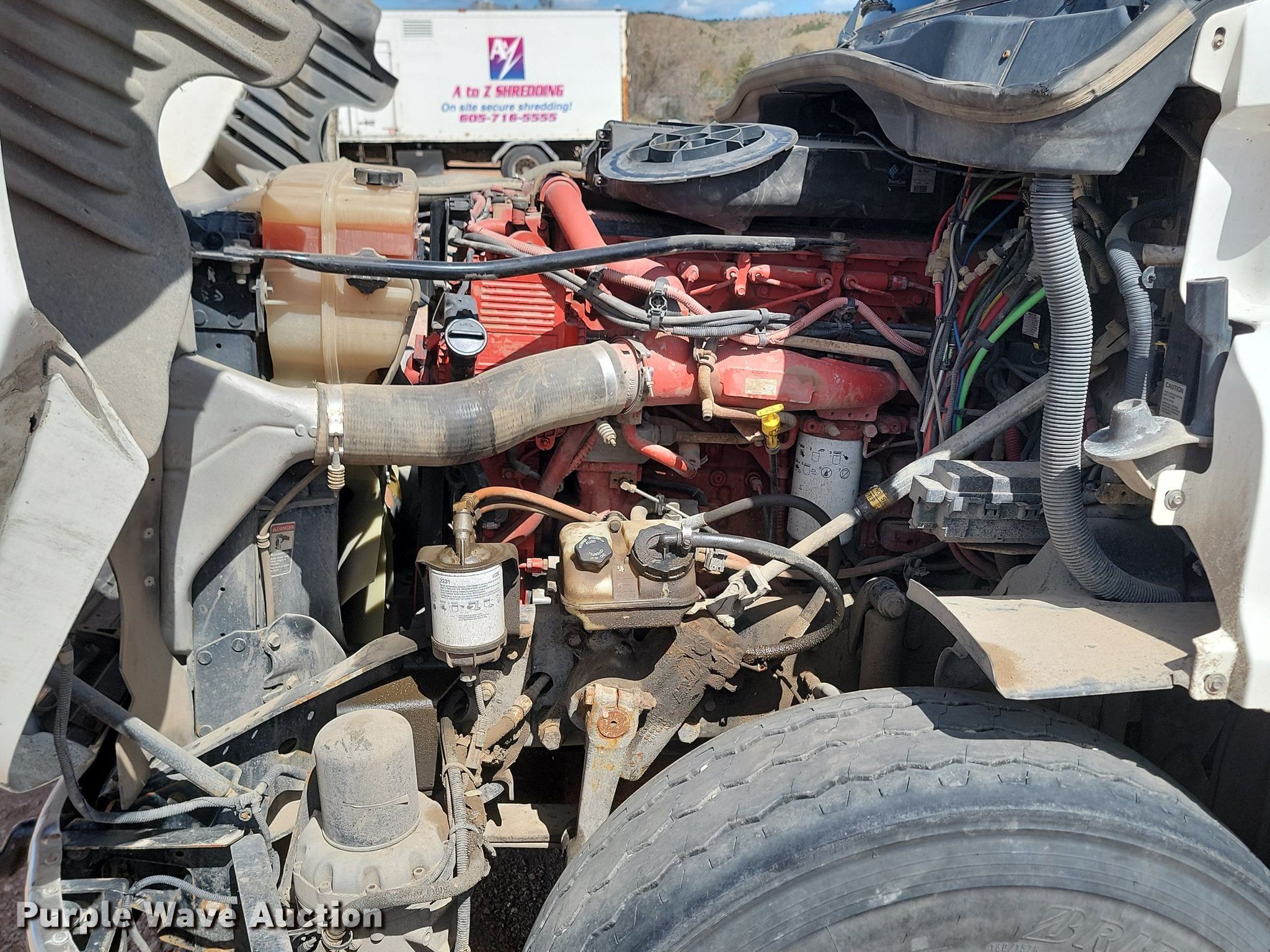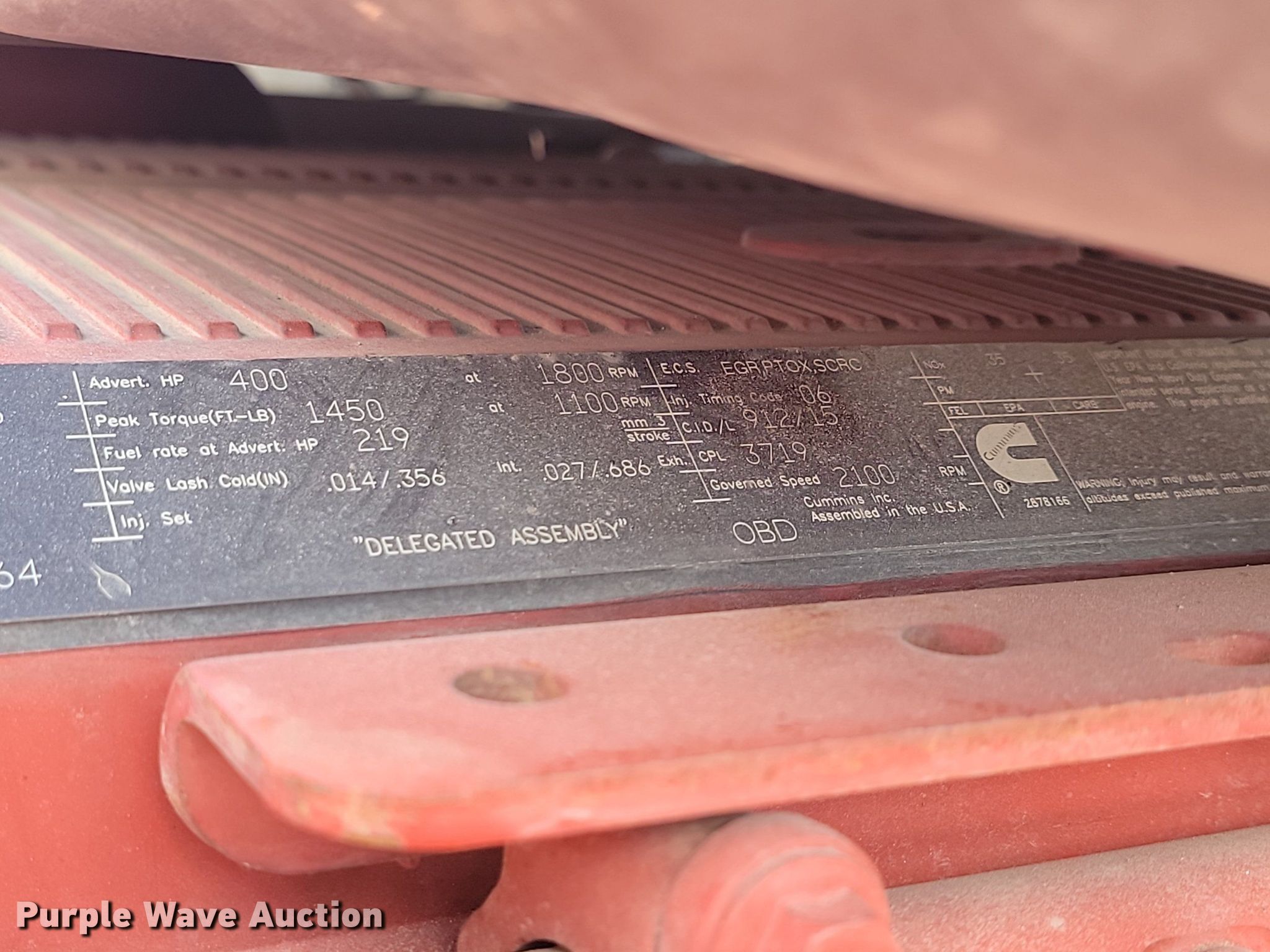 2012 Freightliner Cascadia roll-off container truck. Miles: 103,979 on odometer, VIN: 1FUJGEBG0CSBP7482. Engine Cummins, Displacement: 14.9L, Cylinders: 6, Fuel type: Diesel. Transmission Automatic. Chassis Axles: Triple, Pusher axle, Suspension: Air, Brakes: Air, PTO, GVWR: 52,000 lbs. Interior AC, Heat, Power windows, Cruise control. Features Refuse bed Pioneer RP4500. Tires Front: 315/80R22.5, Rear: 11R22.5, Lift axle: 255/70R22.5. Notes Dash warning indicator: Check engine, Stop, Windshield chipped or cracked, Unit must be towed or hauled, Roll off dumpster not included, Non-operational unit. South Dakota title. Title distribution may be delayed up to 14 days from verification of funds. Black Hawk, SD 57718