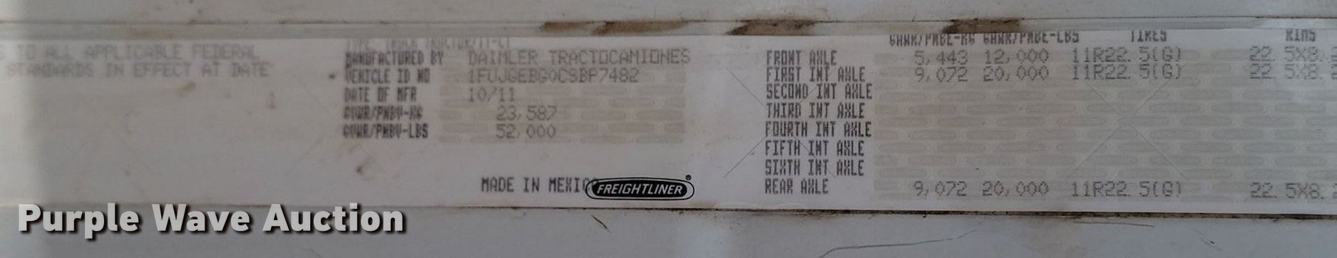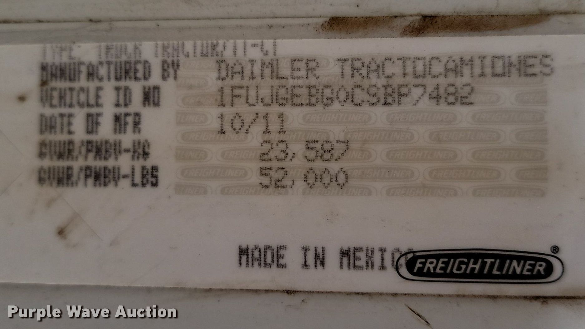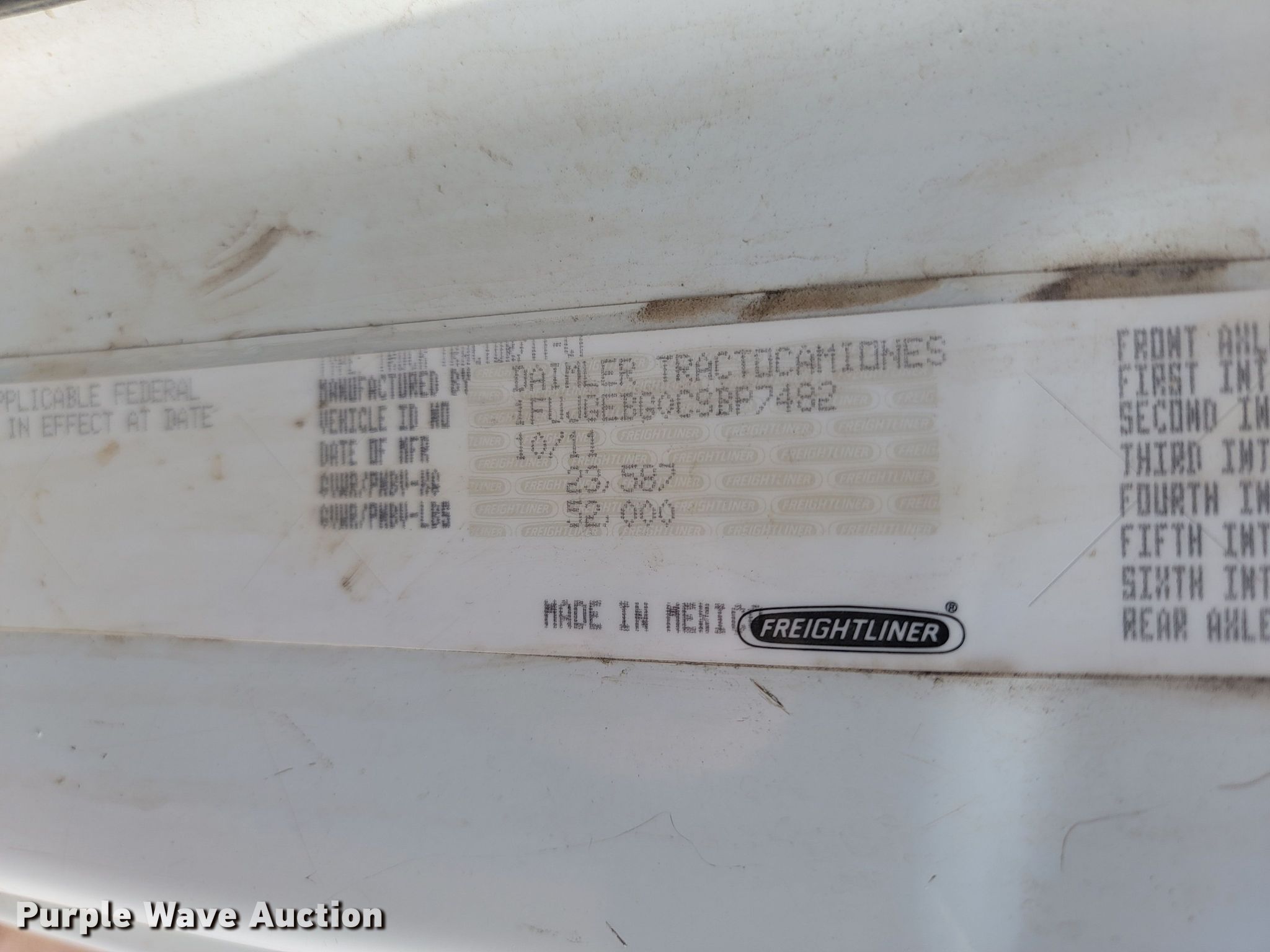 Purple Wave is selling a used Rollback or Tow Truck in South Dakota. This item is a 2012 Freightliner Cascadia roll-off container truck with the following: Miles: 103,979 on odometer, VIN: 1FUJGEBG0CSBP7482