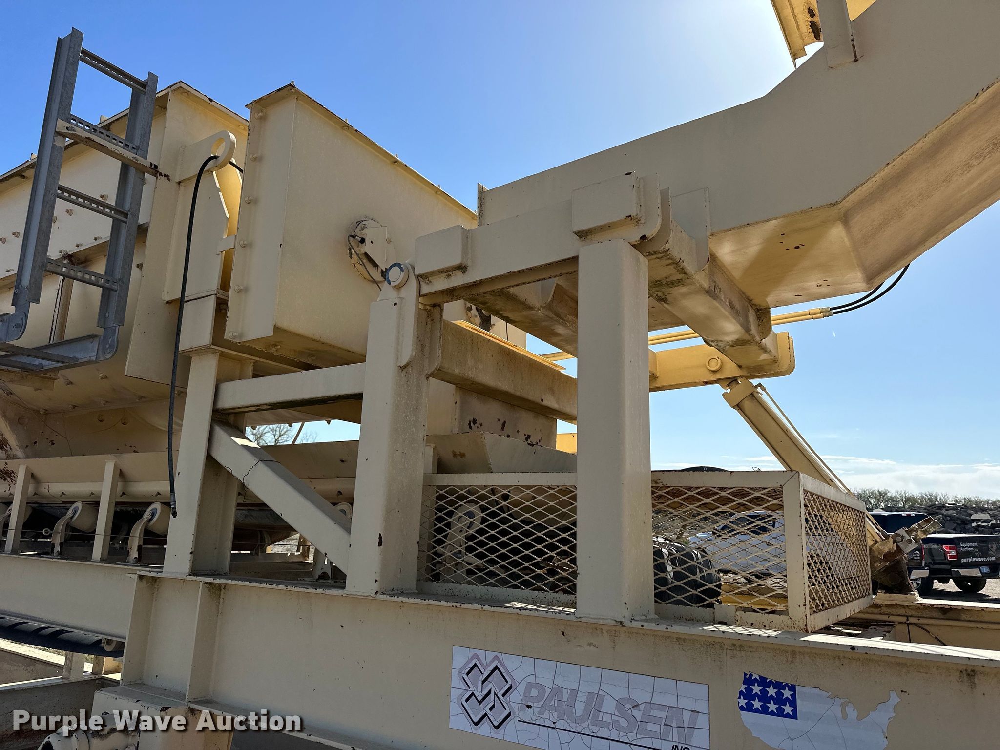 2005 Astec PLM-T400 pug mill. Serial: 050481501, Unit #: 0889. Features Conveyor Length: 50', Width: 28", Hydraulic lift, Input hopper Length: 13' 10", Width: 42". Tires Tire size: 11R22.5. Paulsen Inc.. Cozad, NE 69130