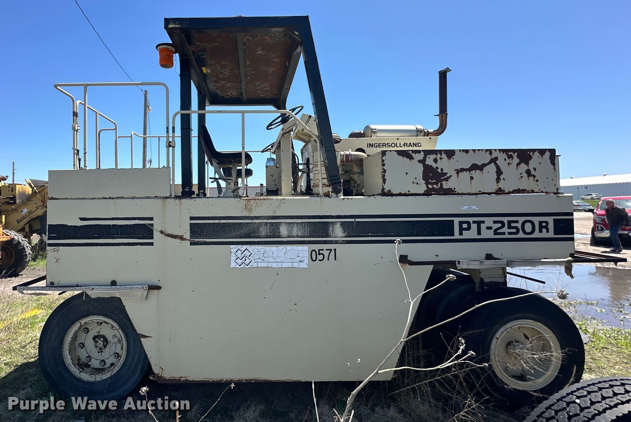 Ingersoll Rand PT-250R pneumatic roller. Hours: 2,856 on meter, Unit #: 571. Engine Cylinders: 4, Fuel type: Diesel. Transmission Shuttle shift, 4F - 4R. Features Vibratory system: Double. Tires Size: 11.00 20, Quantity: 9. Notes Dead battery, Non-operational unit. Paulsen Inc.. Cozad, NE 69130