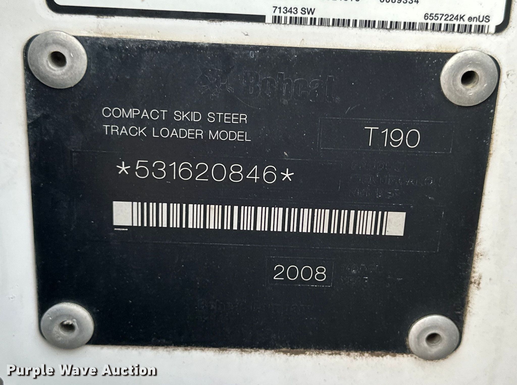 Purple Wave is selling a used Tracked Skid Steer Loader in Nebraska. This item is a 2008 Bobcat T190 tracked skid steer loader with the following: Hours: 4,999 on meter, Serial: 531620846, Unit #: 939