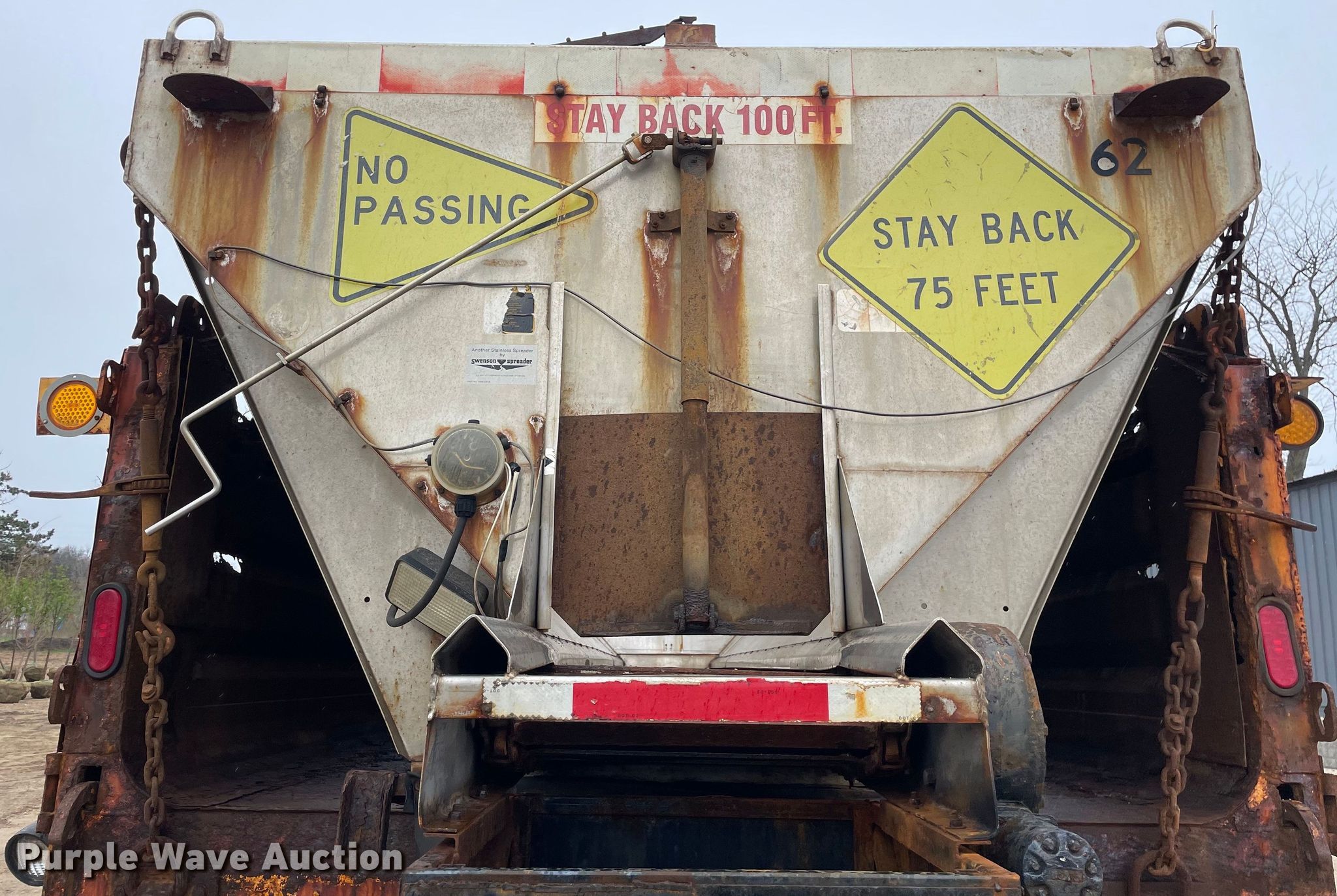 2000 Sterling L8500 dump truck. Miles: 111,472 on odometer, Hours: 6,752 on meter, VIN: 2FZXBJBB2YAH40300. Engine Caterpillar 3126, Cylinders: 6, Fuel type: Diesel. Transmission Automatic. Chassis Axles: Tandem, Differential lock: Inter-axle, Suspension: Spring over walking beam, Brakes: Air, PTO, GVWR: 58,000 lbs FAWR: 18,000 lbs, IAWR: 20,000 lbs, RAWR: 20,000 lbs. Interior Heat, Heated mirrors, Power windows, Cruise control. Features Dump bed 12' 6" L x 96" W, Side height: 38", Bed type: Steel, Ram: Single, Spreader Swenson, Plow Model: Angle blade, Width: 132", Wing plow Width: 108". Tires Front: 385/65R22.5, Rear: 11R22.5. Notes Unattached wing plow included, Unattached end gate included, Dash warning indicator: ABS, Unknown operating condition of dump bed, Dump bed hydraulic cylinder leak. Illinois title. Woodstock, IL 60098