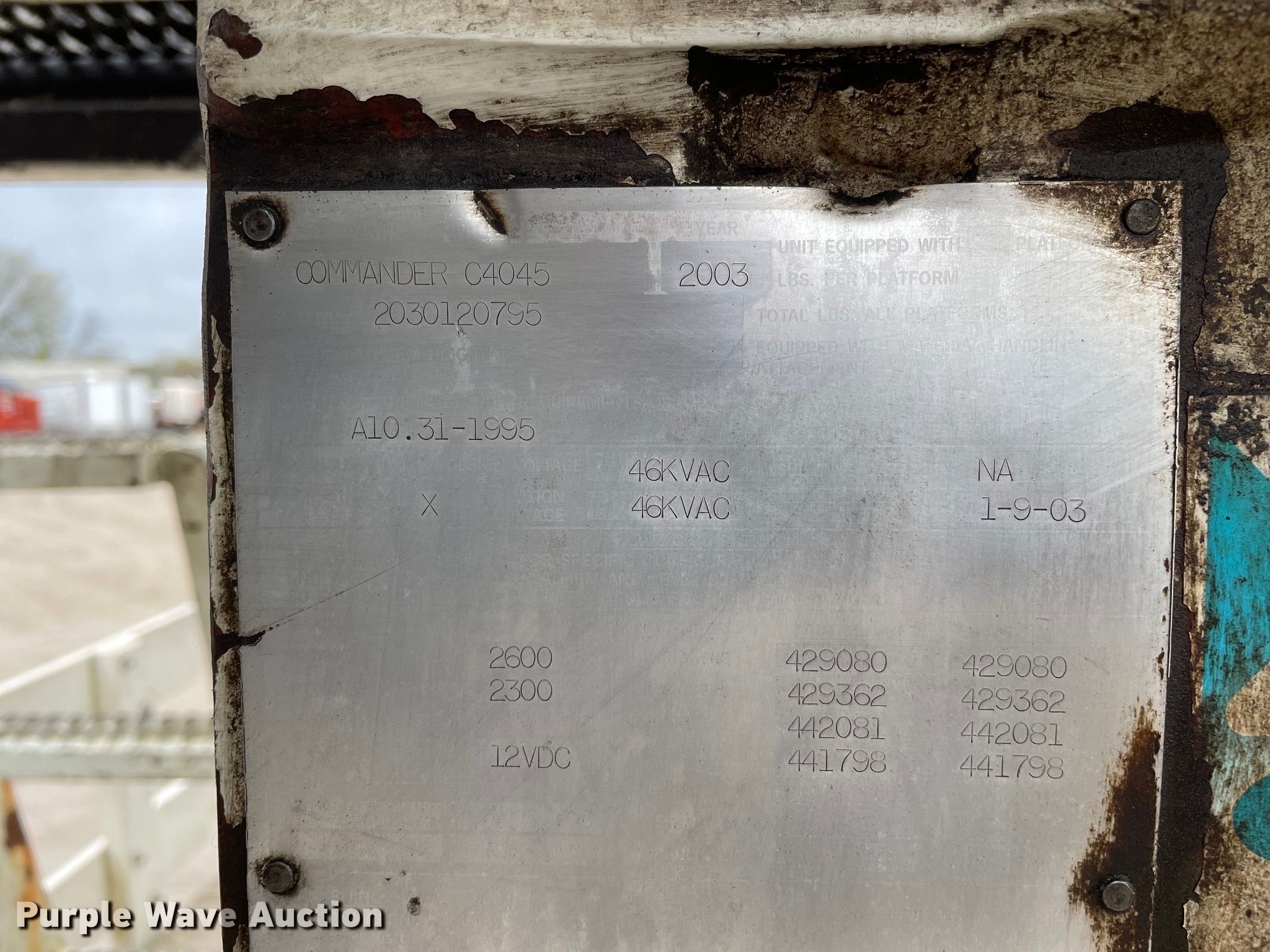 2004 International 7400 digger derrick truck. Miles: 90,648 on odometer, Hours: 14,513 on meter, VIN: 1HTWEAAN74J084011. Engine International DT466, Displacement: 7.6L, Cylinders: 6, Fuel type: Diesel. Transmission Automatic. Chassis Four wheel drive, Axles: Single, Suspension: Spring, Brakes: Air, PTO, GVWR: 33,000 lbs. Interior AC, Heat, Heated mirrors, Cruise control, Brake controller. Features Bed Dueco DFB-11-7, Serial: 0703107, 14' L x 96" W, Boom 2003 Terex Telelect Commander C4045, Serial: 2030120795, Boom type: Insulated, Telescopic, Boom controls Ground, Material handler, Pole guide, Auger. Tires Size: 11R22.5. Illinois title. Title distribution may be delayed up to 14 days from verification of funds. H & H Electric Co.. West Chicago, IL 60131
