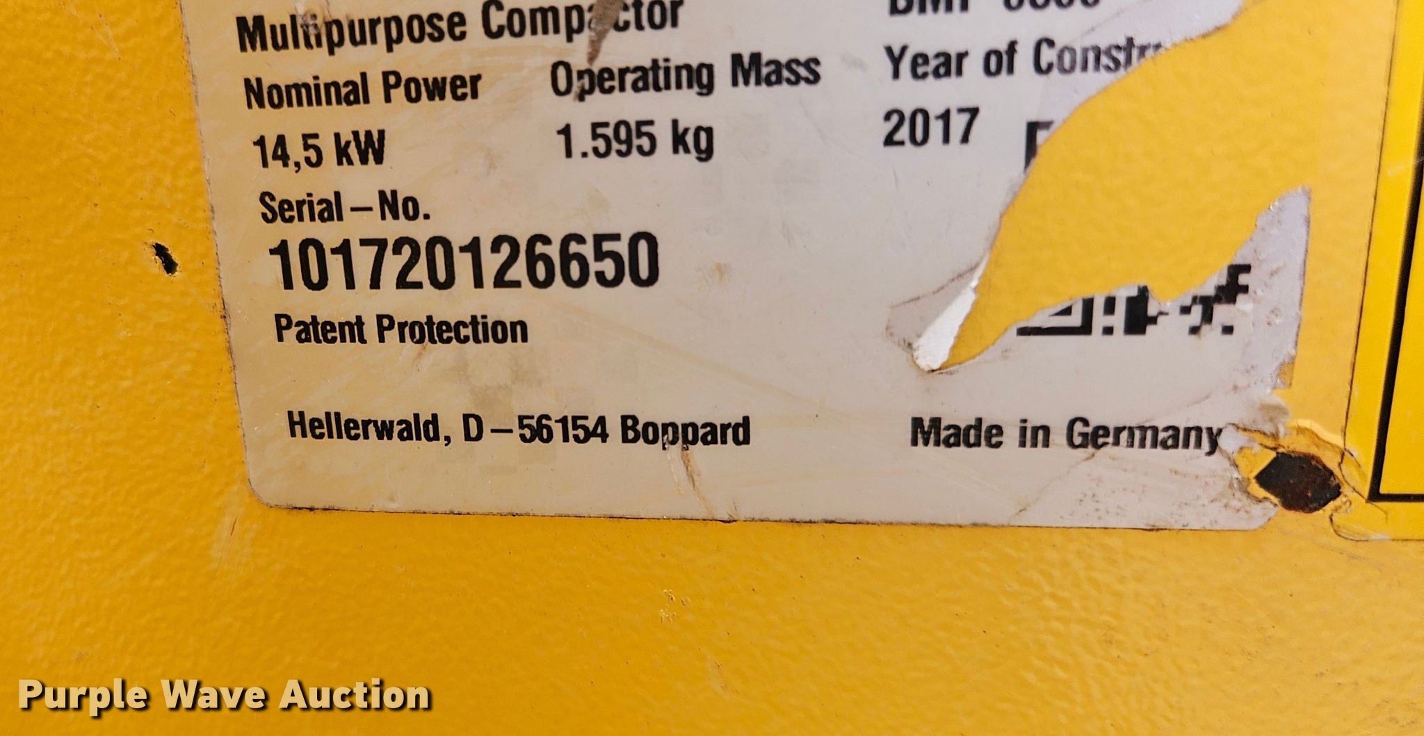 Purple Wave is selling a used Walk Behind Compactor in Georgia. This item is a 2017 Bomag BMP 8500 trench compactor with the following: Hours: 1,051 on meter, Serial: 101720126650