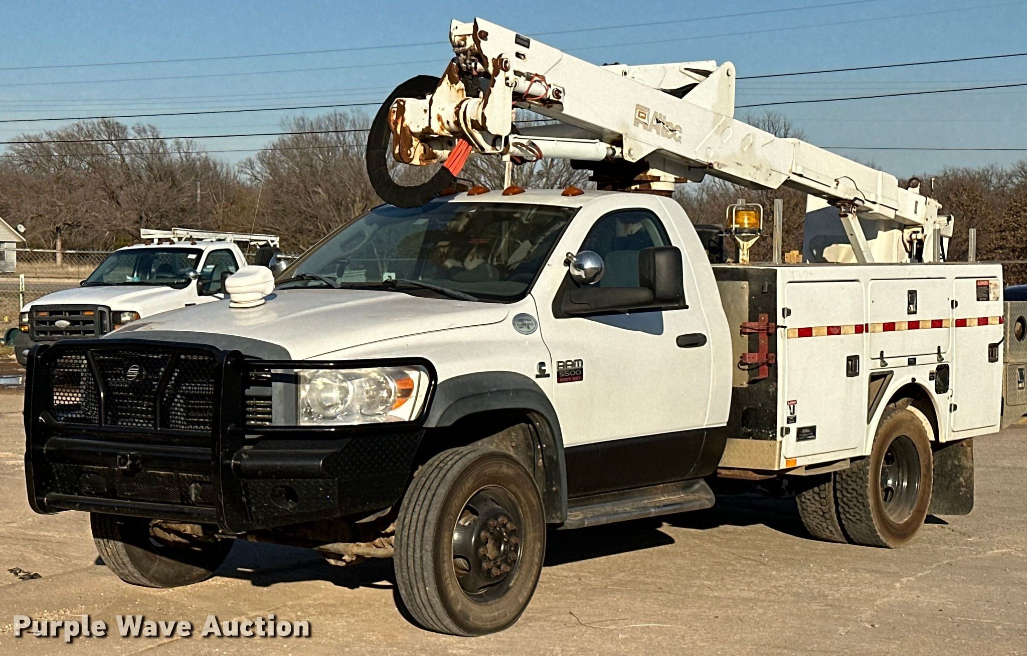 Purple Wave is selling a used Bucket Truck in Oklahoma. This item is a 2009 Dodge Ram 5500HD bucket truck with the following: Miles: 213,669 on odometer, VIN: 3D6WD76L69G523647