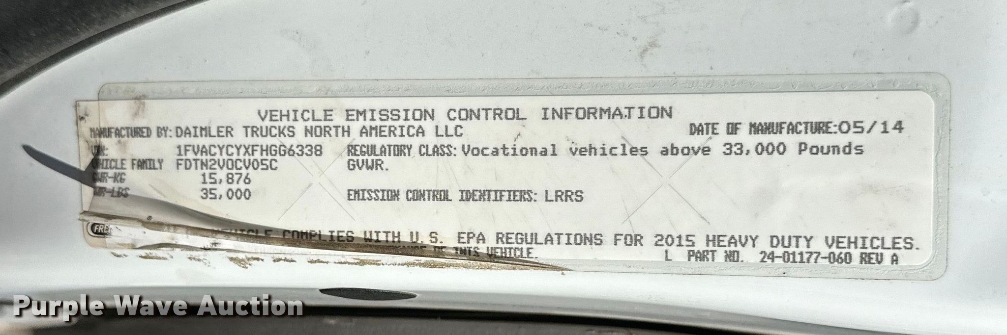 Purple Wave is selling a used Refuse Truck in Texas. This item is a 2015 Freightliner Business Class M2 refuse truck with the following: Miles: 70,315 on odometer, VIN: 1FVACYCYXFHGG6338