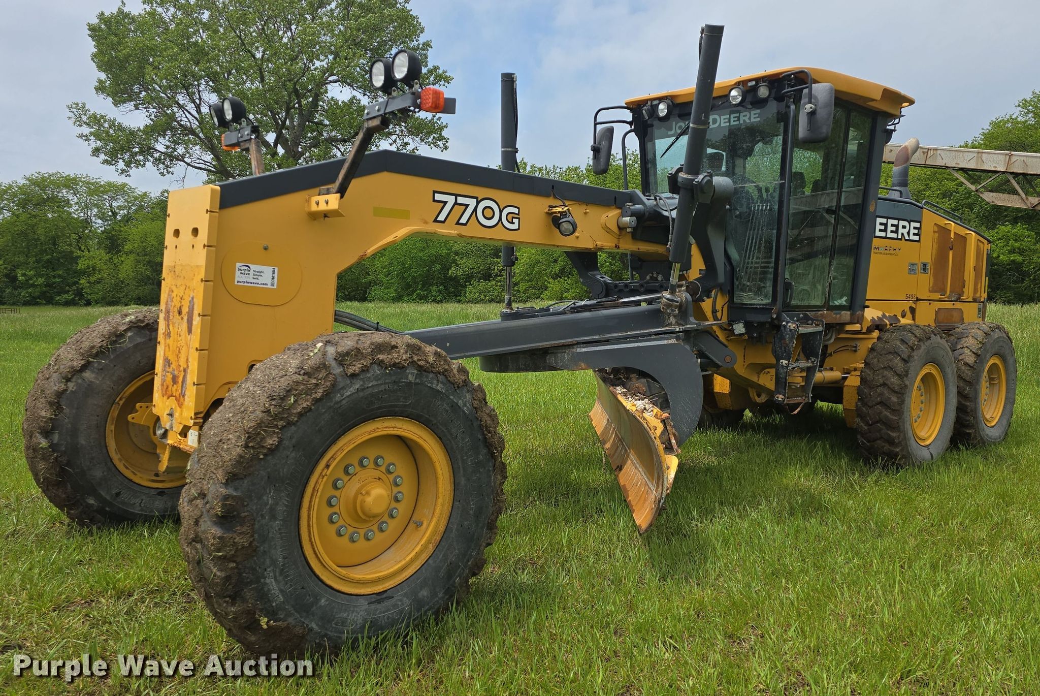 Purple Wave is selling a used Motor Grader in Kansas. This item is a 2013 John Deere 770G motor grader with the following: Hours: 6,073 on meter, Serial: 1DW770GXACE650013, Unit #: JCW5498