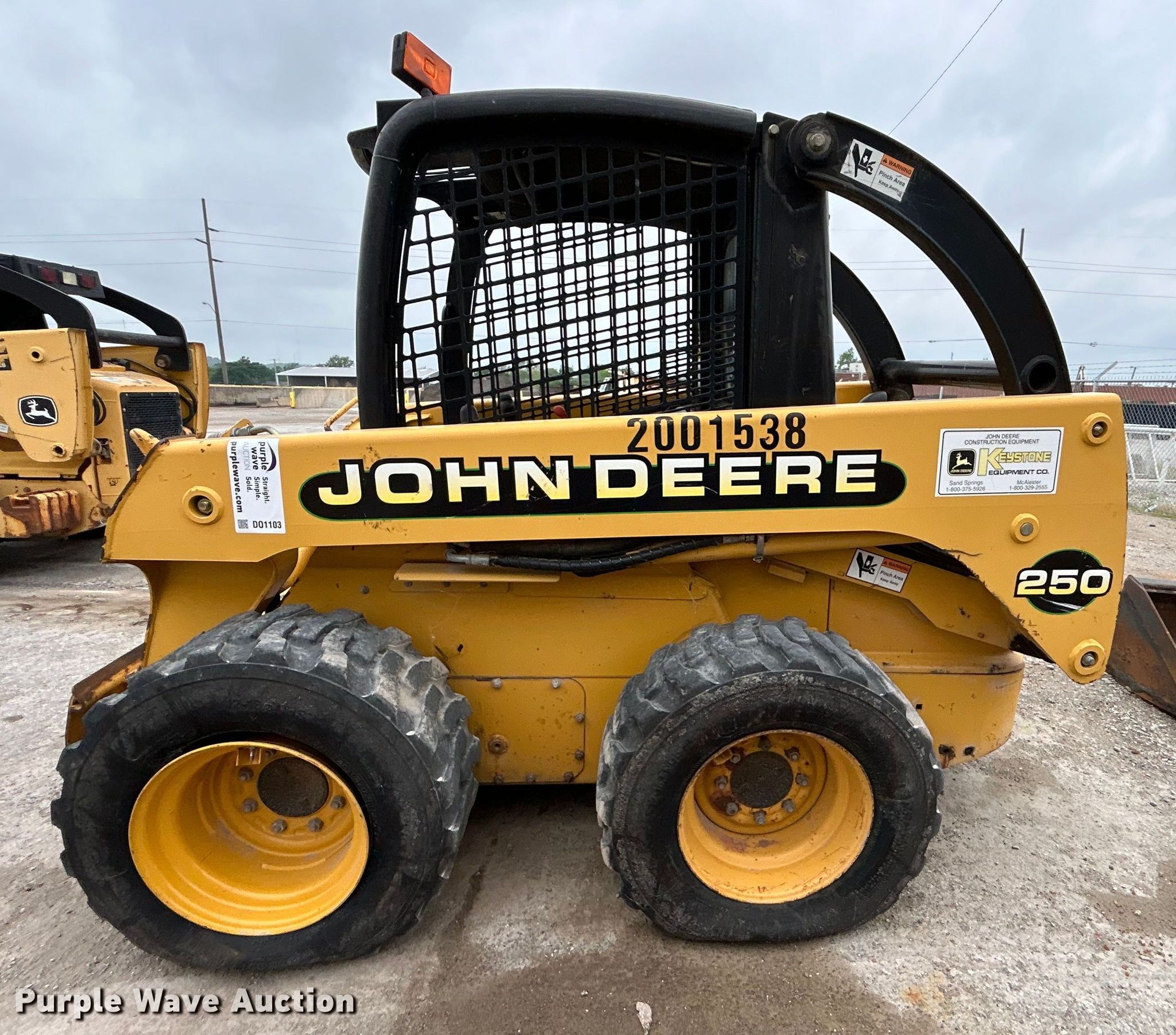 Purple Wave is selling a used Skid Steer Loader in Oklahoma. This item is a 2001 John Deere 250 skid steer loader with the following: Hours: Unknown, Serial: KV0250A350180