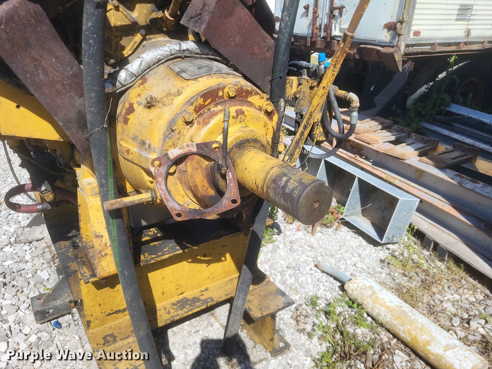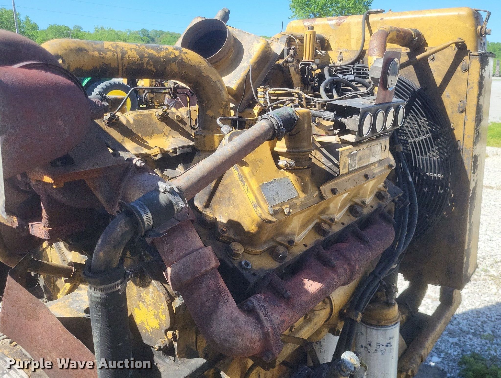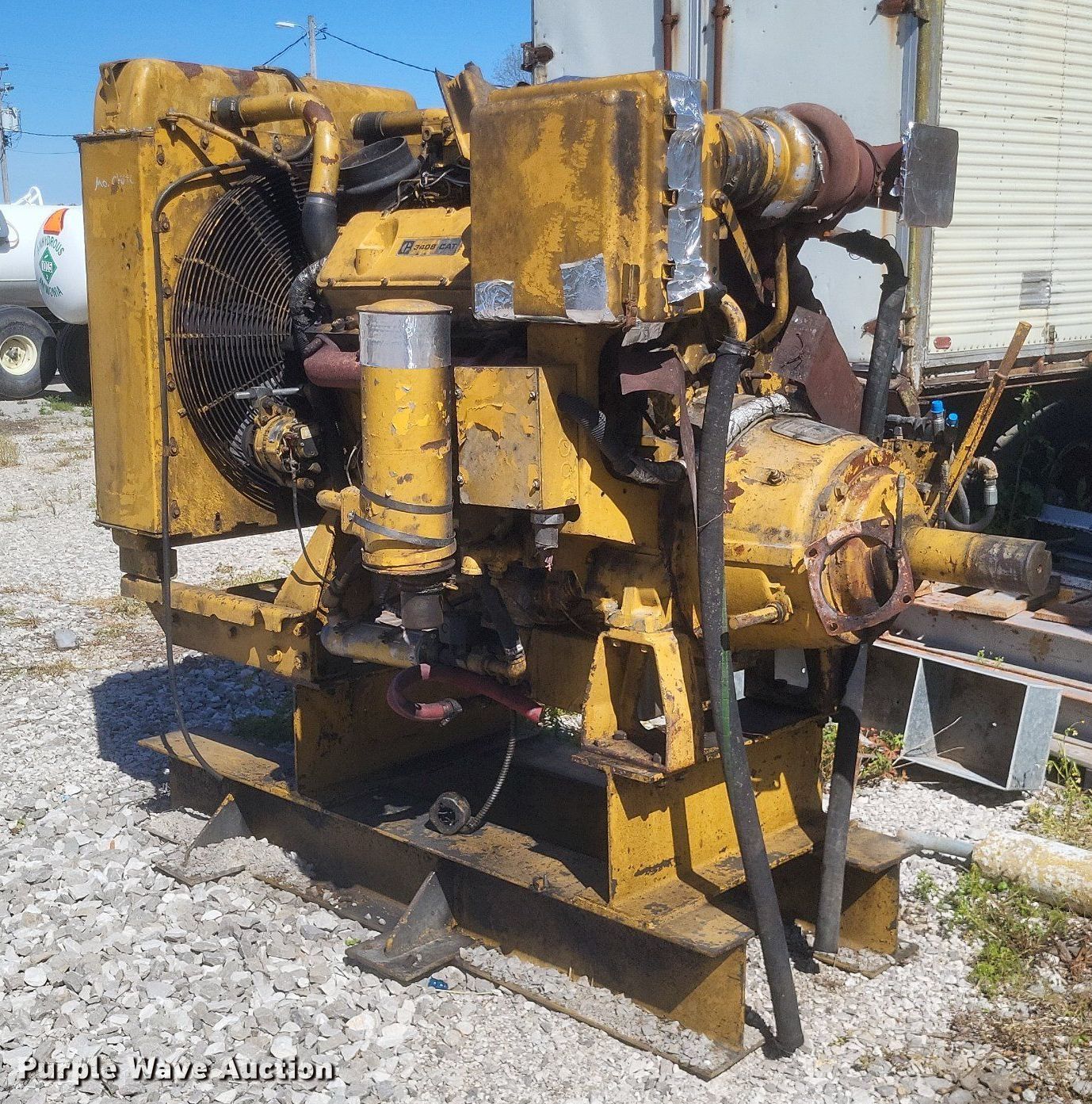 Caterpillar 3408 power unit. Hours: Unknown, Serial: 67U07466, Cylinders: 8, Fuel type: Diesel. Features PTO Caterpillar 3N6542, Radiator, Skid mounted. Bois Brule Levee and Drainage District. McBride, MO 63776