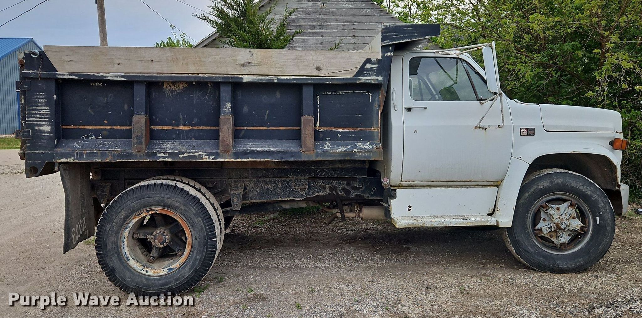 1980 GMC 7000 dump truck. Miles: 35,353 on odometer, VIN: C17DBAV101239. Engine Cylinders: 8, Fuel type: Gas. Transmission Manual, Speed: 5. Chassis Axles: Single, Suspension: Spring, Brakes: Hydraulic, PTO. Interior Heat, Brake controller. Features Dump bed 10' L x 8' W, Side height: 26", Side board height: 10", Bed type: Steel, End gate: Manual. Tires Front: 295/75R22.5, Rear: 10.00-20. Notes Possible Ignition issues, will not start. Kansas title. Title distribution may be delayed up to 14 days from verification of funds. City of Richmond, KS. Richmond, KS 66080