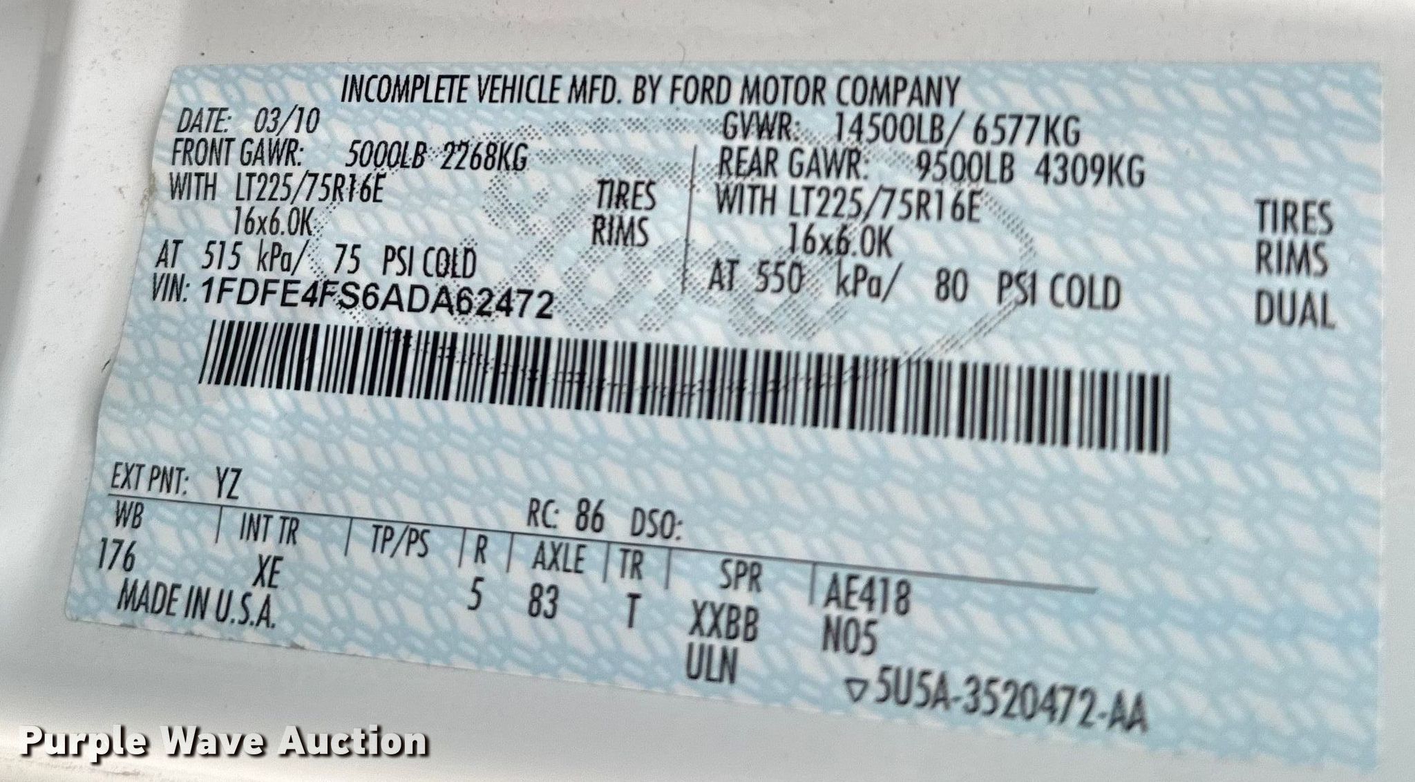 2010 Ford E450 shuttle bus. Miles: 83,223 on odometer, VIN: 1FDFE4FS6ADA62472. Engine Displacement: 6.8L, Cylinders: 10, Fuel type: Gas. Transmission Automatic. Chassis Axles: Single, Suspension: Spring, Brakes: Hydraulic. Interior AC, heat, Cruise control, Auxiliary controls, Electric passenger sliding door, Passengers: 25. Tires Size: LT225/75R16. Notes Catalytic converters removed, Dead battery. Kansas title. Title distribution may be delayed up to 14 days from verification of funds. City of Manhattan, KS. Manhattan, KS 66502