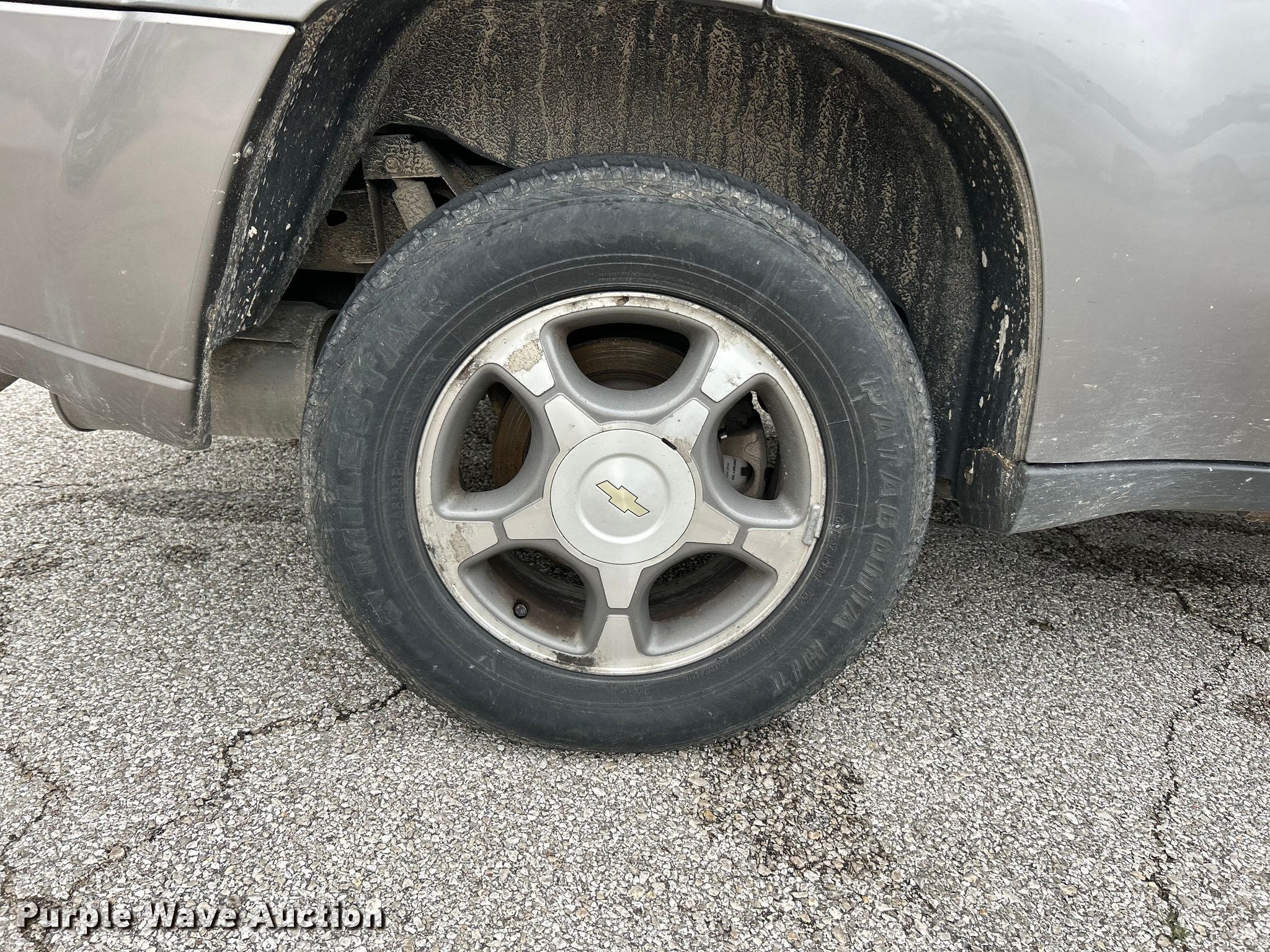 2007 Chevrolet Trailblazer LS SUV. Miles: 163,975 on odometer, VIN: 1GNDT13S572265403. Engine Displacement: 4.2 L6 DOHC, Cylinders: 6, Fuel type: Gas. Transmission Automatic, Four wheel drive. Interior AC, Heat, Power windows, Power locks, Cruise control. Tires Size: P245/65R17. Notes Dash warning indicator: TPMS, Change engine oil, Windshield chipped or cracked, Front end issues, intermittent noise. Missouri title. Title distribution may be delayed up to 14 days from verification of funds. Franklin County, MO. Union, MO 63084