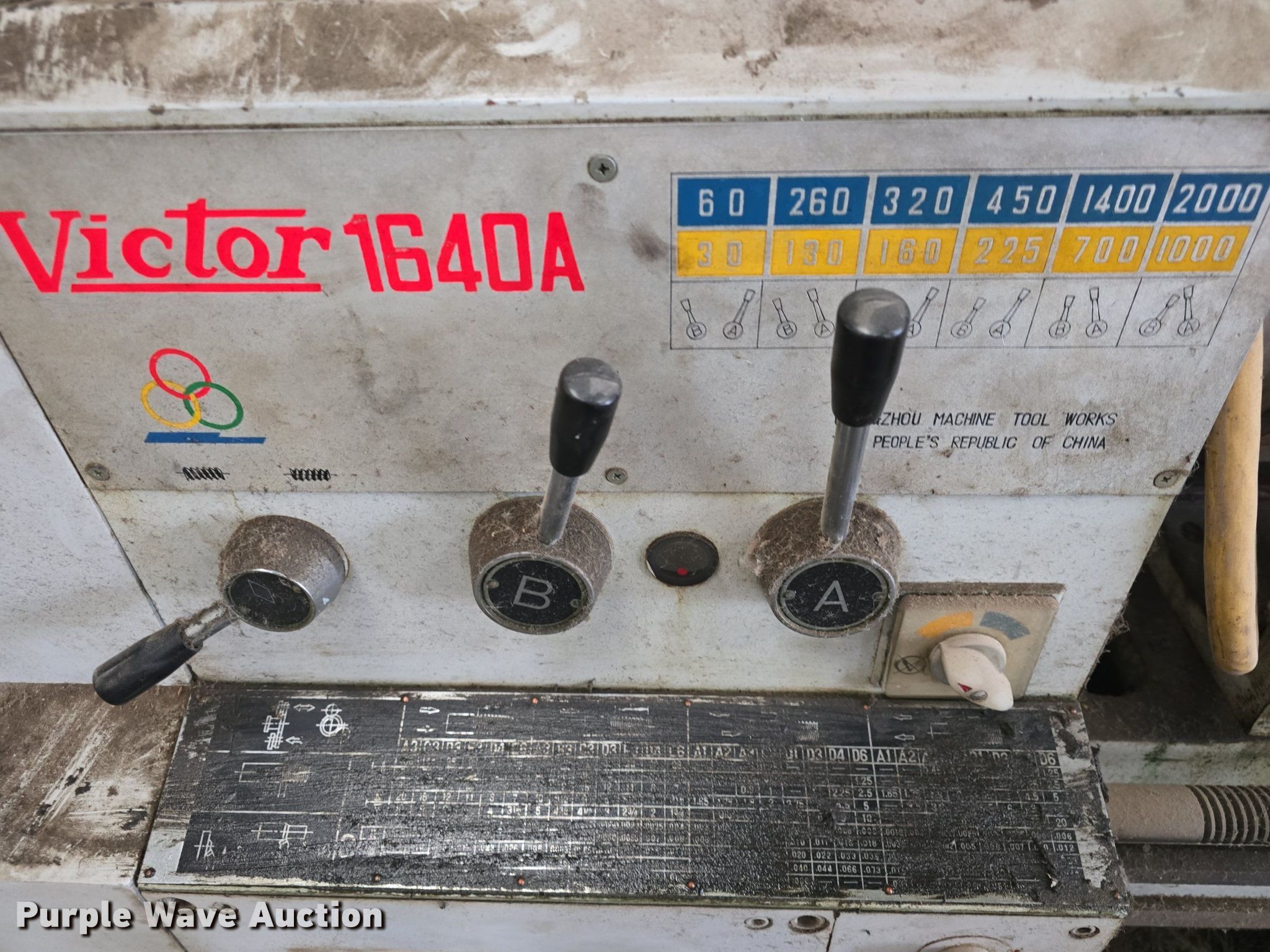 Purple Wave is selling a used Lathes, Manual in Kansas. This item is a Victor 1640A metal lathe with the following: Unknown operating condition