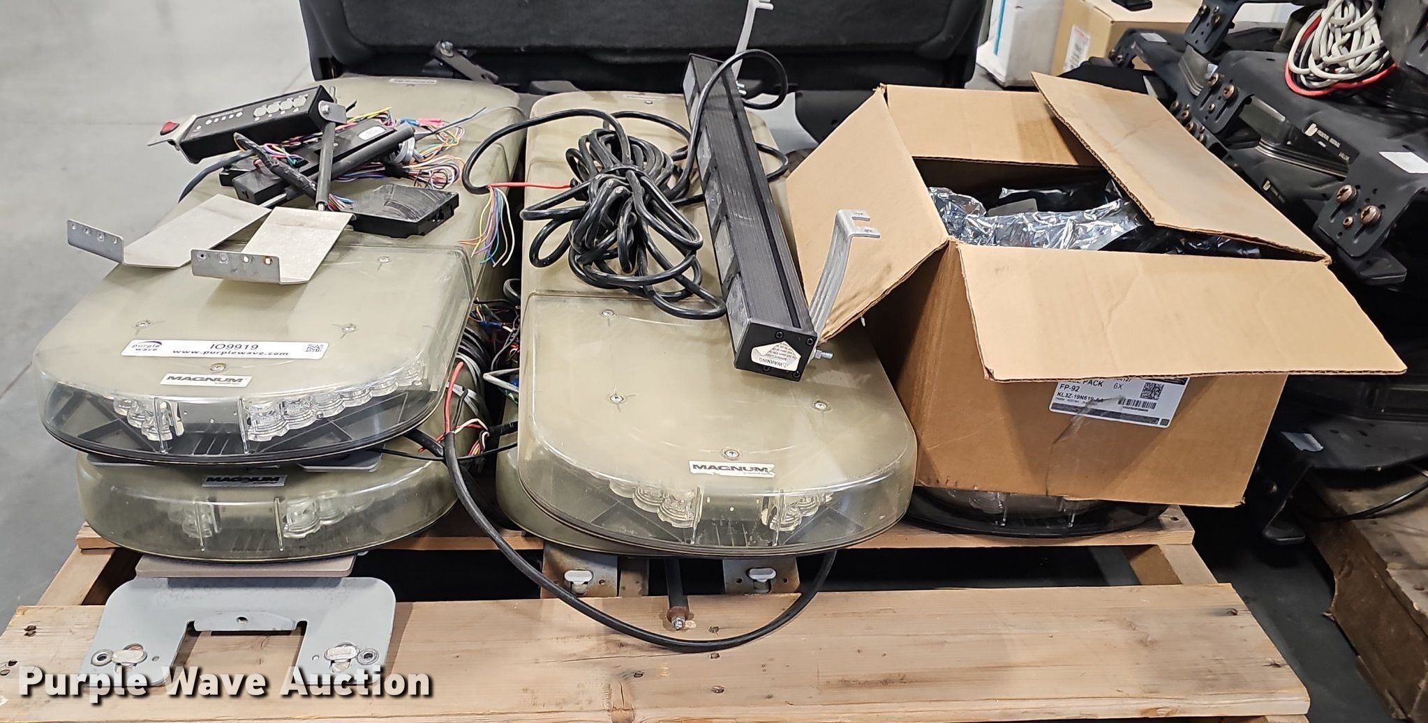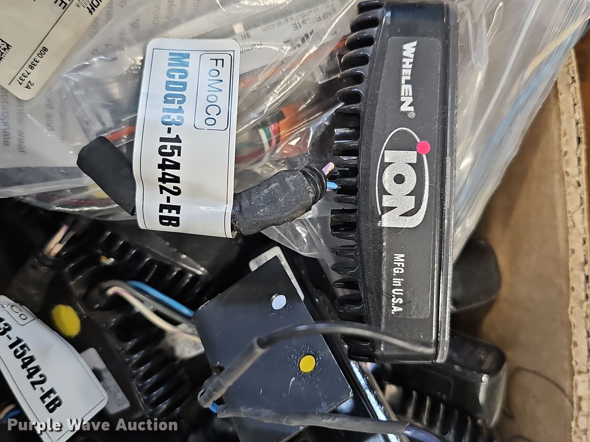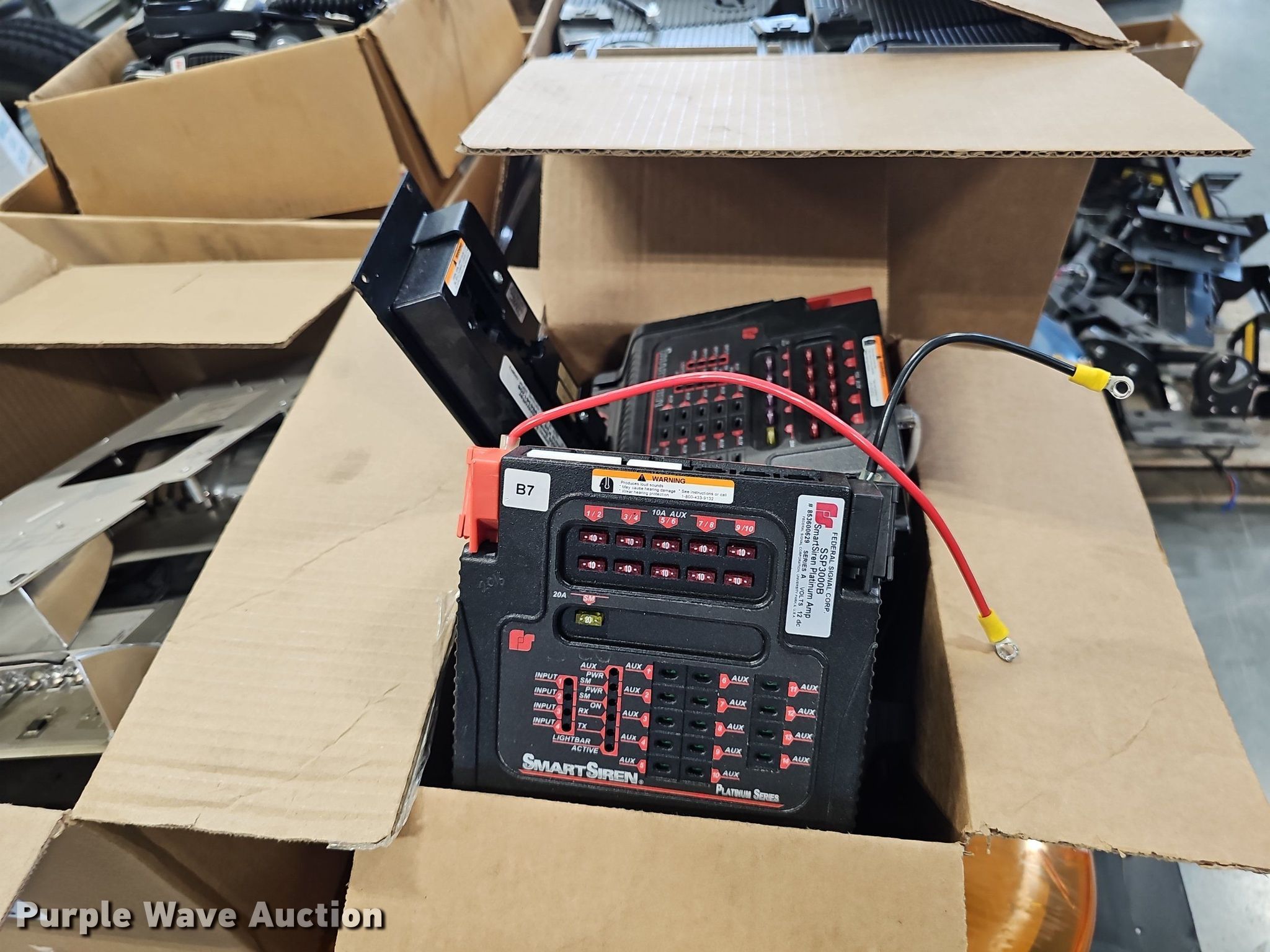 Purple Wave is selling a used Automotive Parts or Acces. in Nebraska. This item is a Automotive parts with the following: (21) Smart Siren SSP3000B platinum amps, (18) Federal Signal lights, (5) Magnum light bars, (2) boxes Whelen Ion lights, Setina recess panel, Setina partition, Blower motor, Rear seat, Gun racks, Blue Sea fuse panels