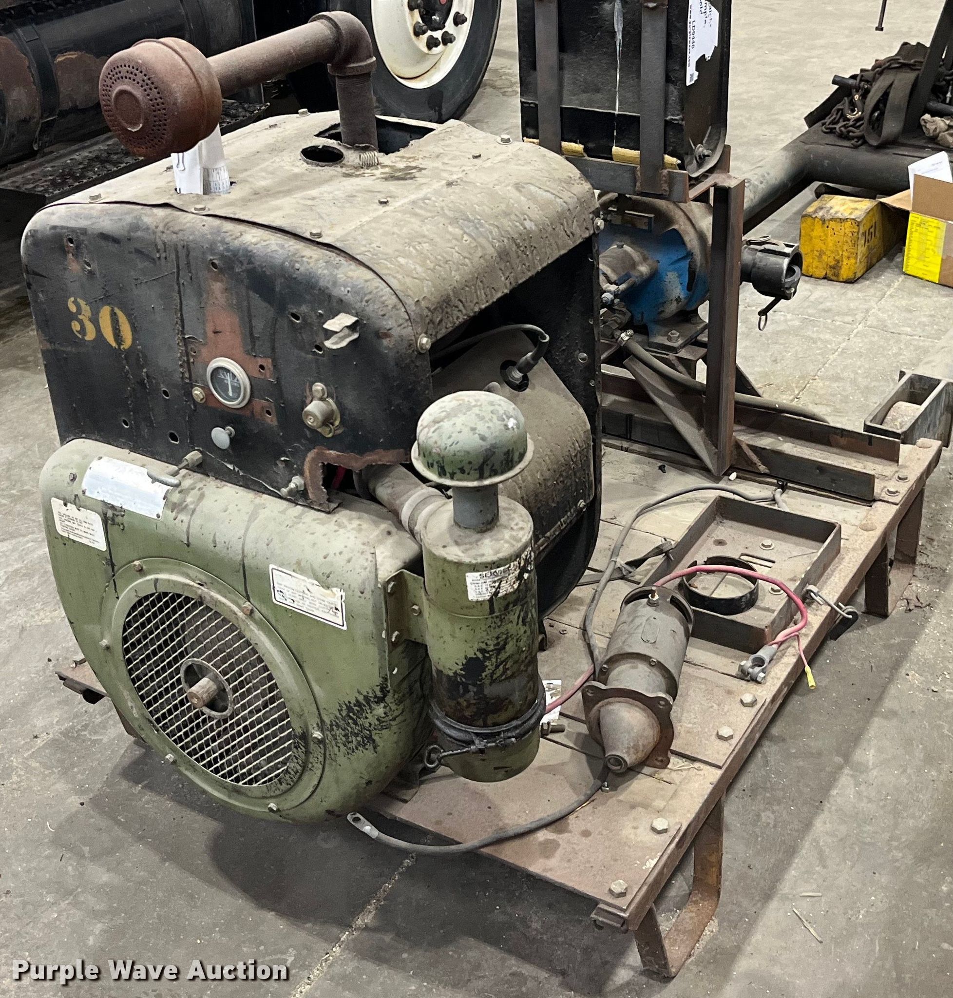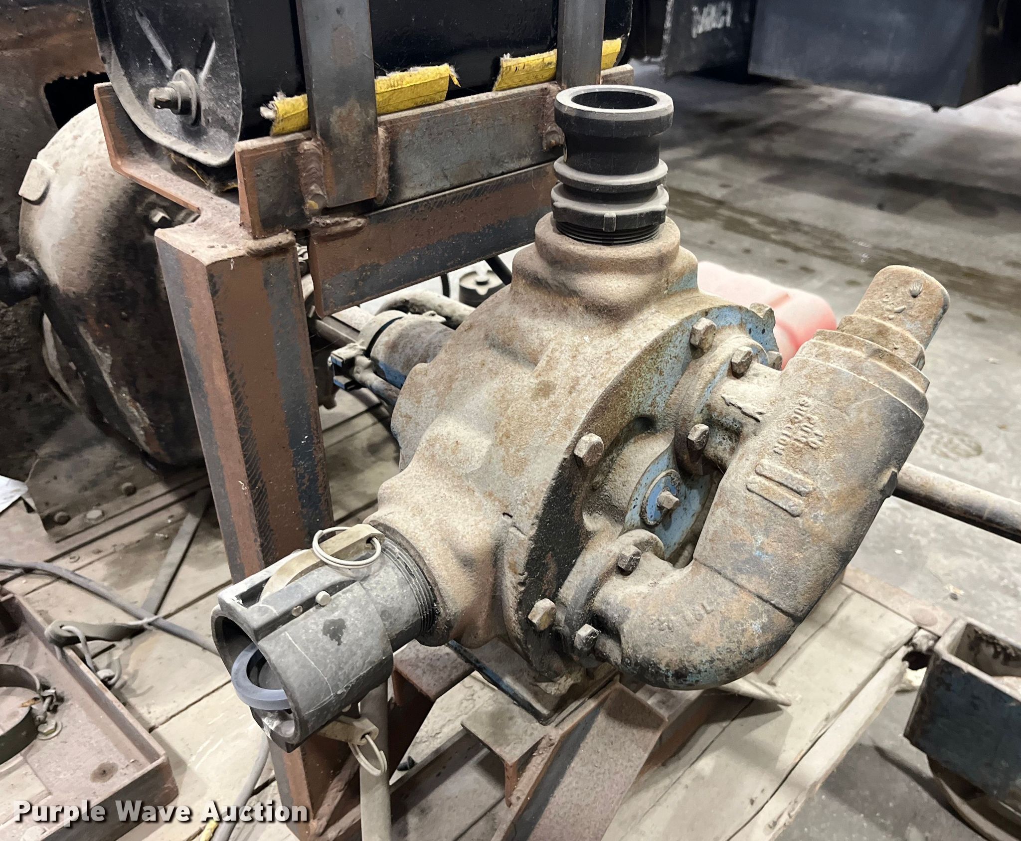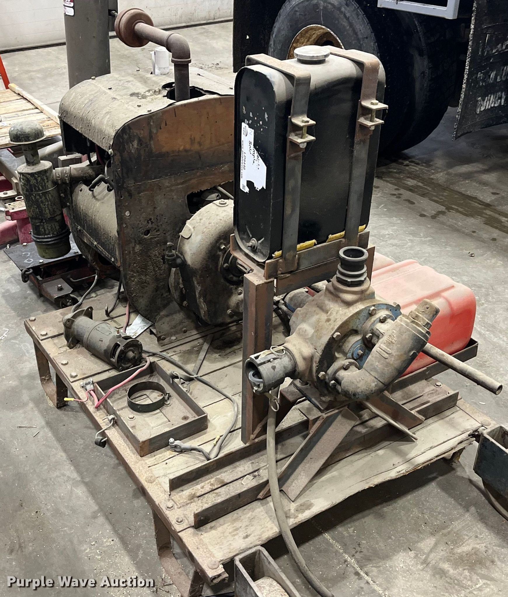 Viking L-32 pump. Serial: 10910193. Engine Wisconsin VH4D, Cylinders: 4, Fuel type: Gas. Features Inlets/outlets: 3" and 2.5", Fuel tank, Skid mounted. Notes Battery missing, Starter removed but included, Non-operational unit. City of Burlington. Burlington, IA 52601