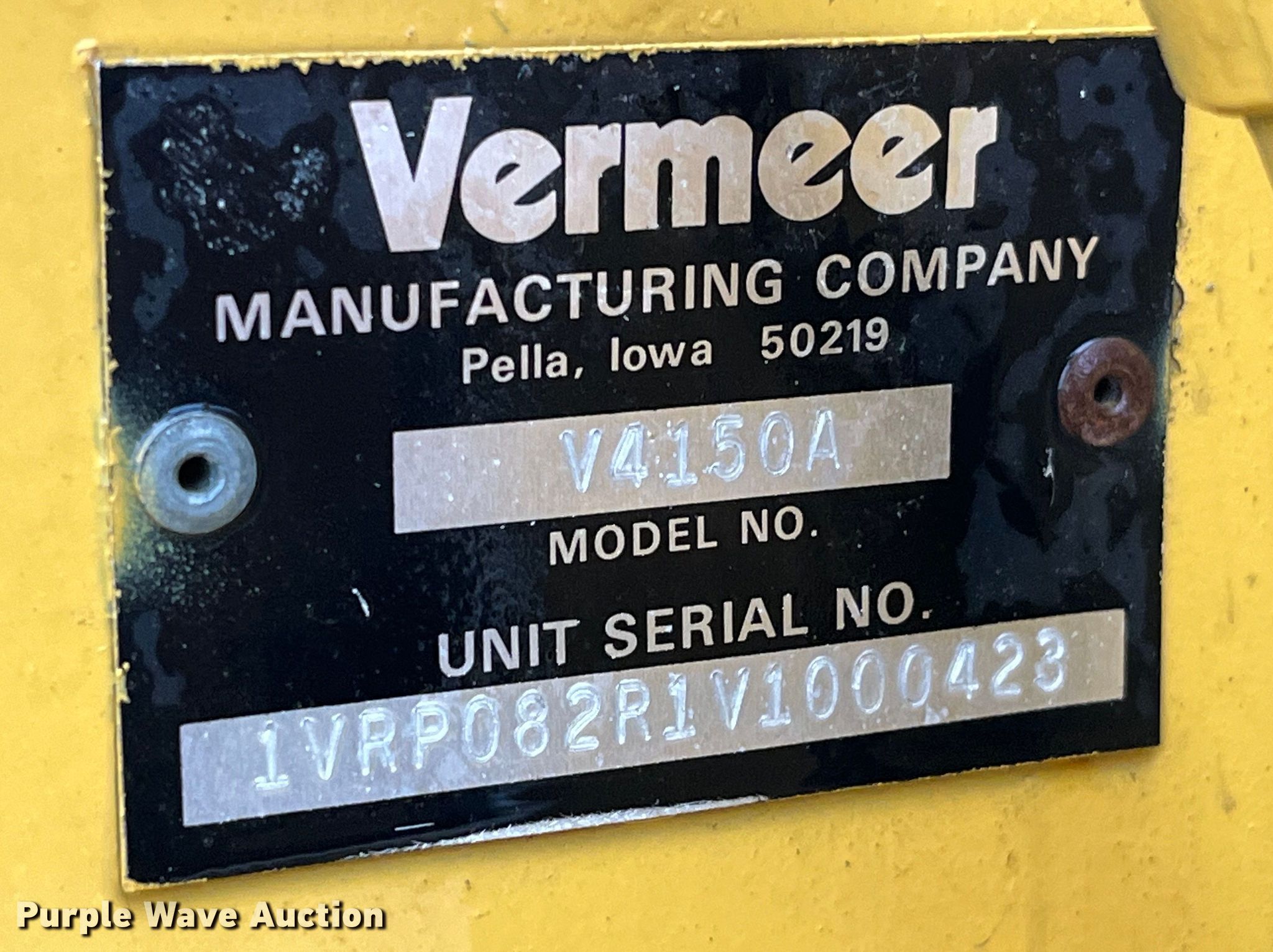 Purple Wave is selling a used Trencher or Rock Saw in Missouri. This item is a 1997 Vermeer V4150A trencher with the following: Hours: 1,306 on meter, Serial: 1VRP082R1V1000423