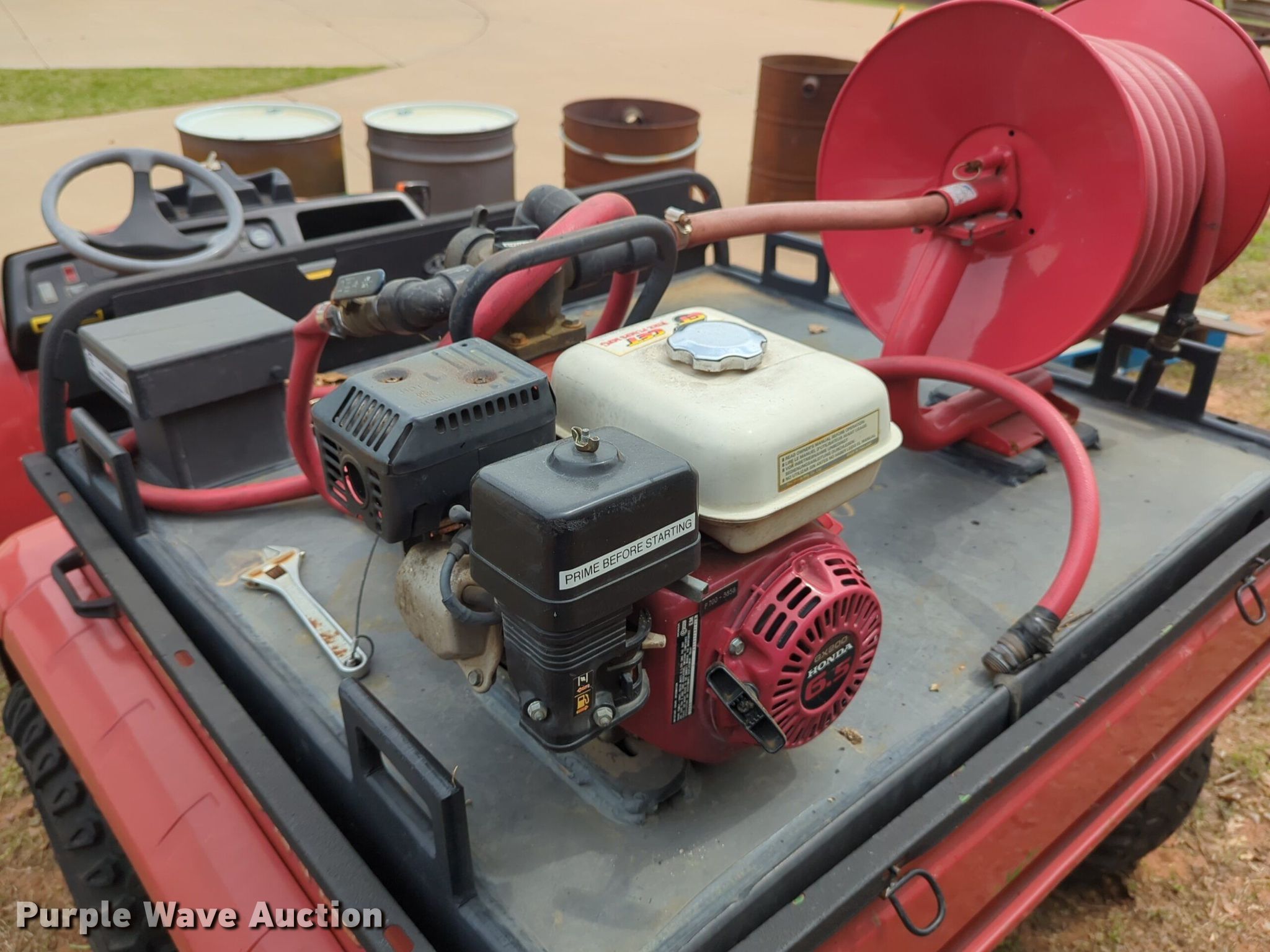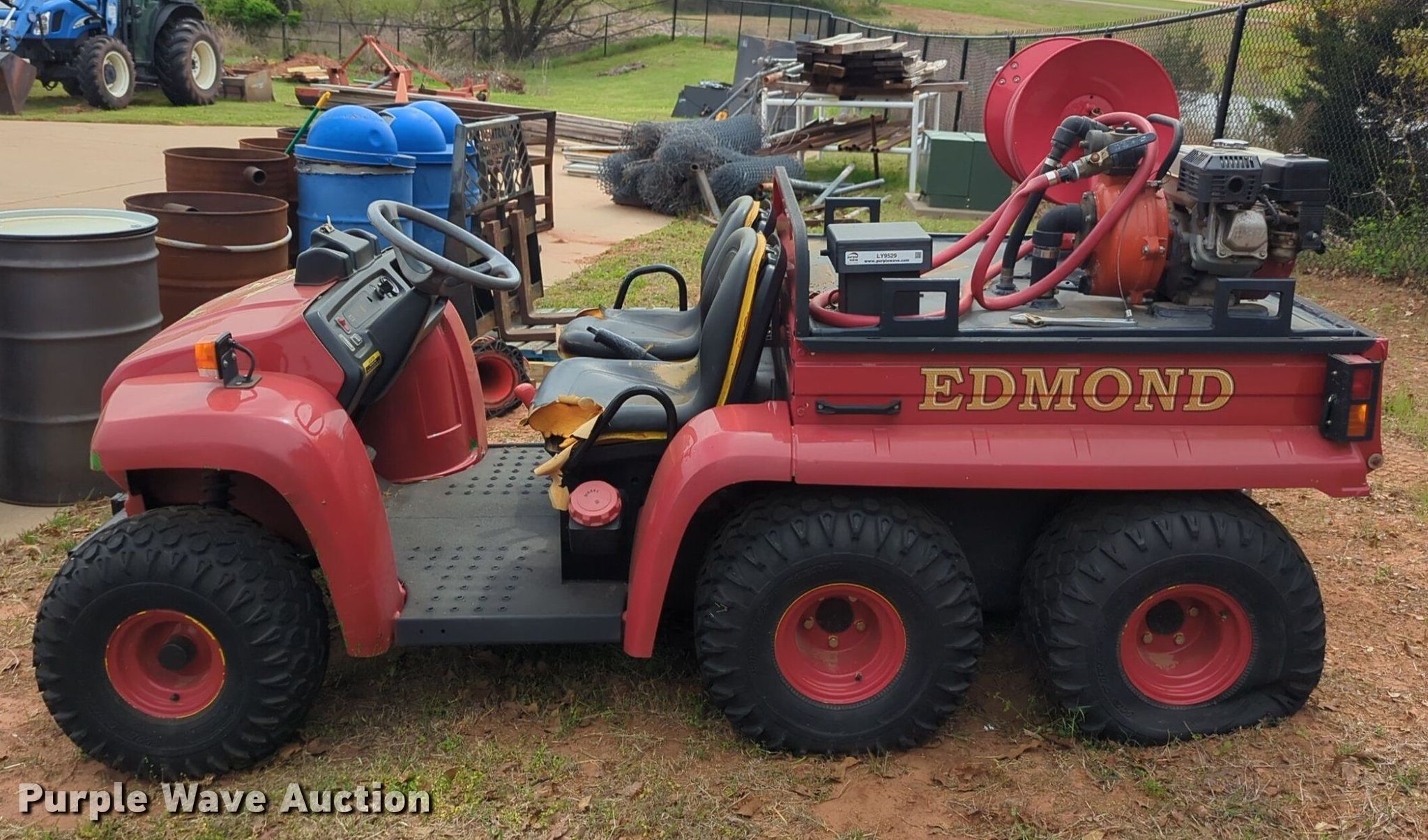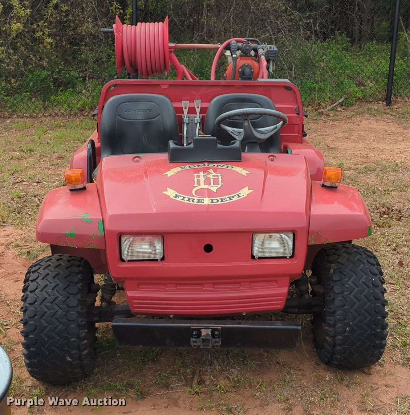 2005 John Deere 6X4 Gator utility vehicle. Hours: 775 on meter, Serial: W006X4D040178. Engine John Deere, Cylinders: 3, Fuel type: Diesel, Electric start. Transmission Automatic. Chassis Four wheel drive/ All wheel drive. Features Dump bed 42" L x 52" W, Dump bed type: Electric/ Hydraulic, Engine: Honda GX200, Centrifugal pump, Hose reel, Receiver hitch. Tires Front: 22.5X10-8, Rear: 25X13-9. Notes Flat tire, Possible electrical issues , Unknown operating condition. Transfer of ownership documentation will be a bill of sale. City of Edmond. 5300 E Covell Rd. Edmond, OK 73034