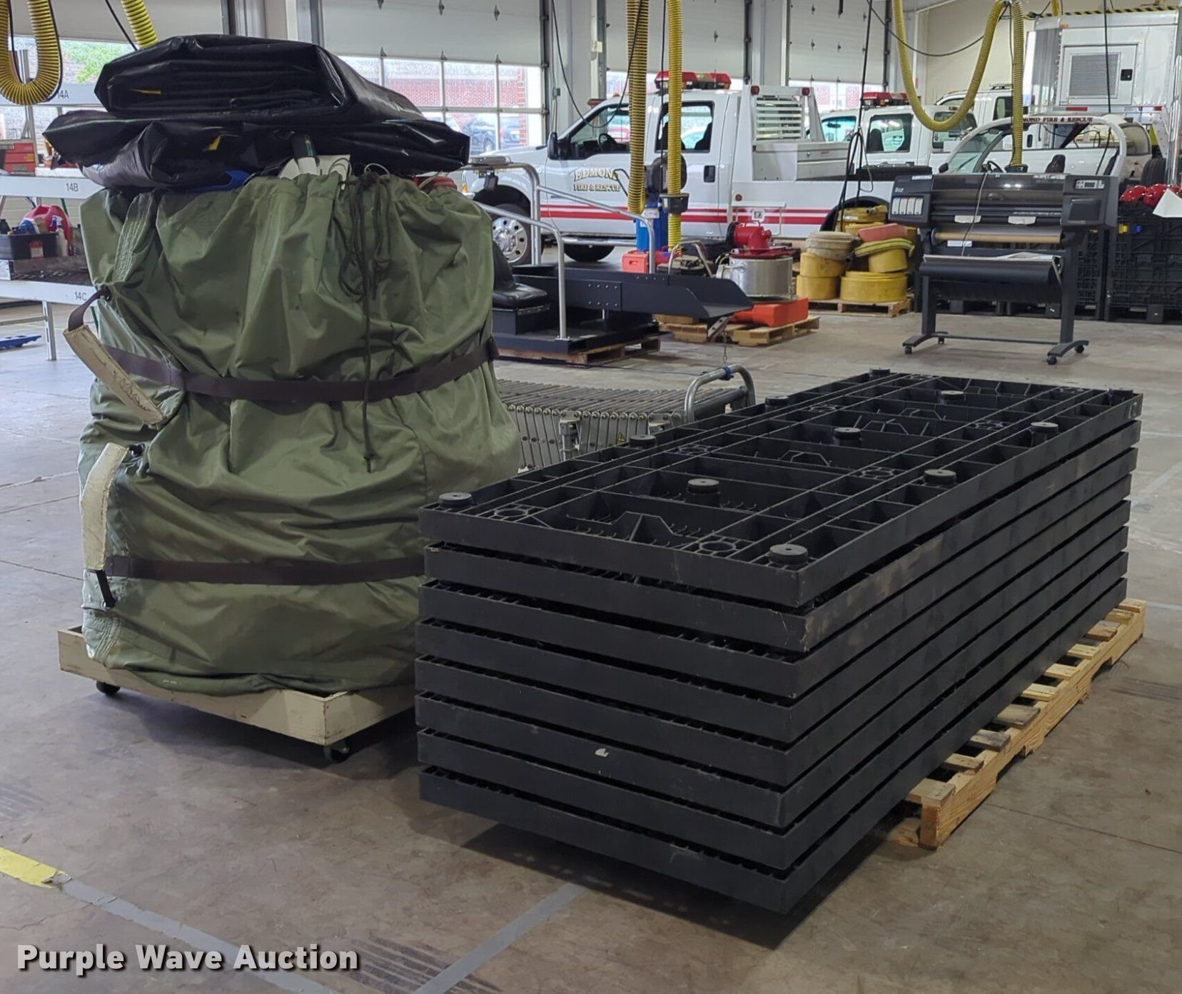 Purple Wave is selling a used Sporting Goods in Oklahoma. This item is a DHS Systems 4XBI decon shelter popup tent kit with the following: (8) poly flooring grids, 8' L x 3' W x 3" H, (2) containment berms, 17' x 17' x 8", Drash steel pin stake set, (25) stakes, NestaFlex Roller 200 flexible rolling conveyor