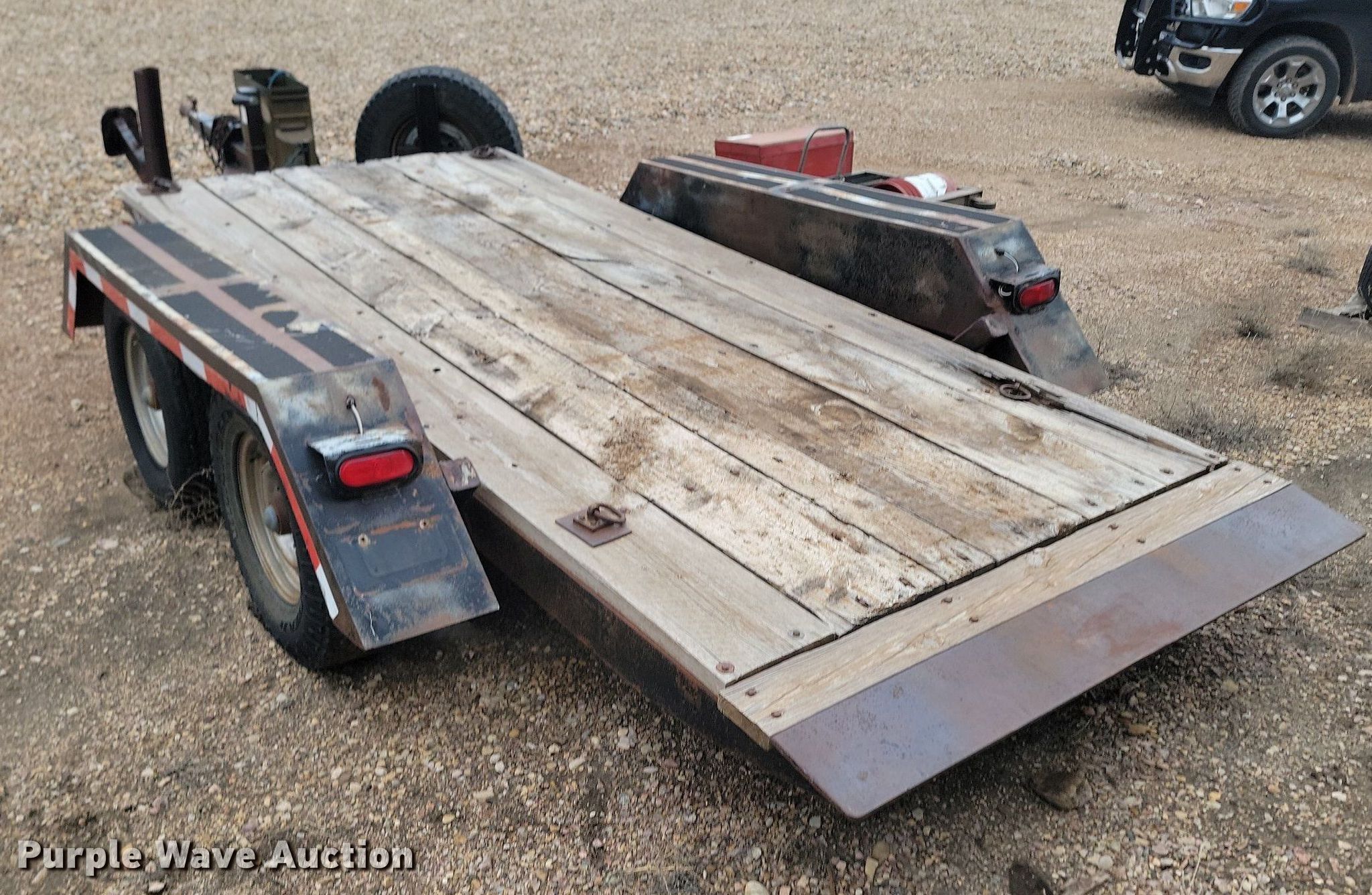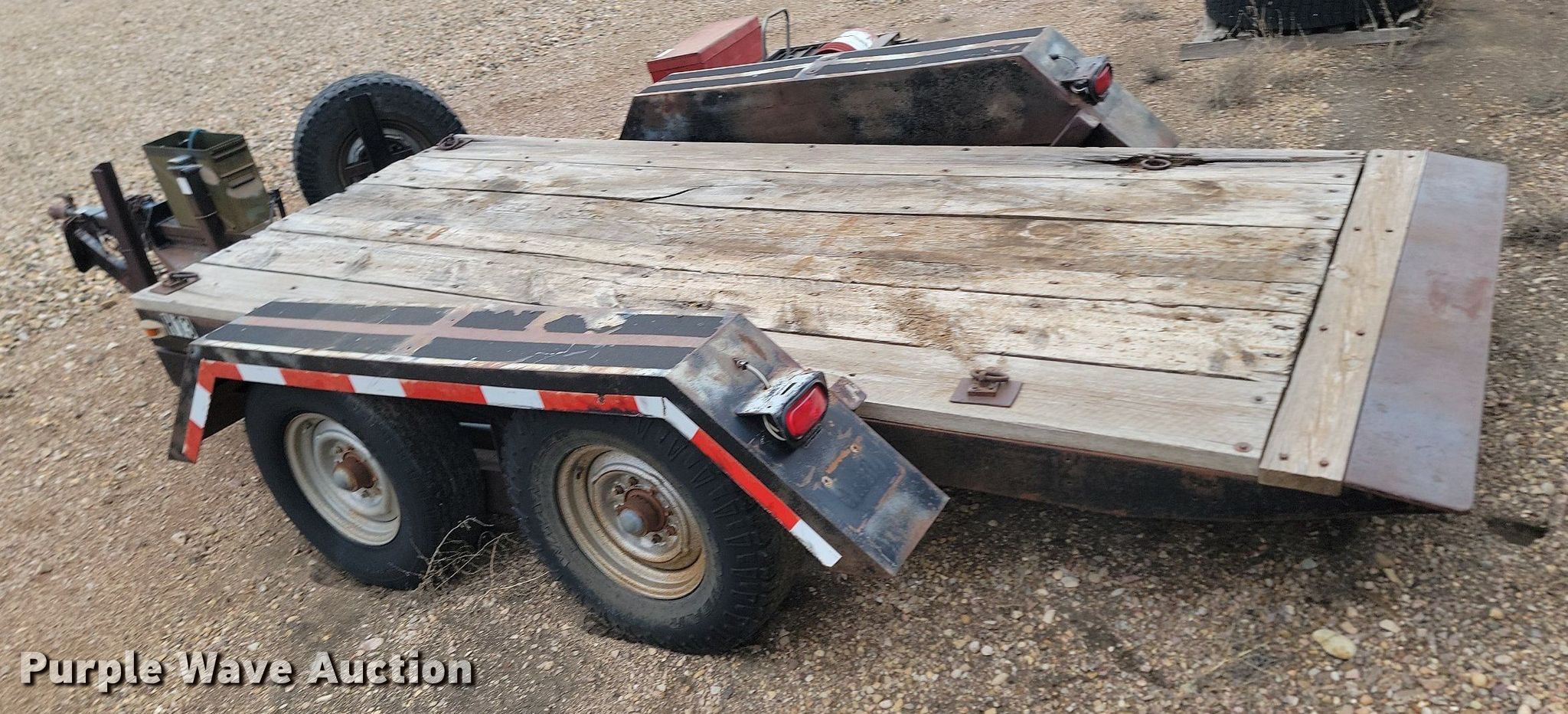 Purple Wave is selling a used Equip. Trailer in South Dakota. This item is a 1993 Shop built tilt deck equipment trailer with the following: Overall: 19' 6" L x 96" W, Deck: 13' 2" L x 65" W