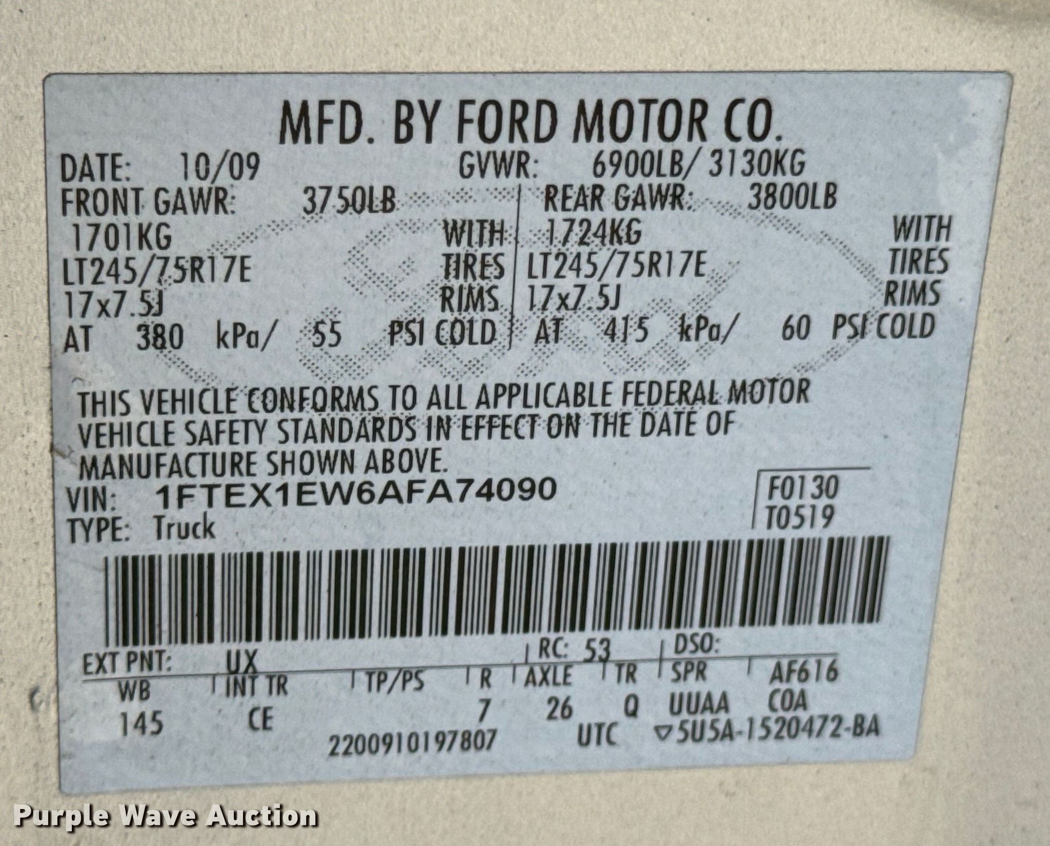 Purple Wave is selling a used 1/2 Ton Pickup or Van in Kansas. This item is a 2010 Ford F150 XL SuperCab pickup truck with the following: Miles: 108,377 on odometer, VIN: 1FTEX1EW6AFA74090