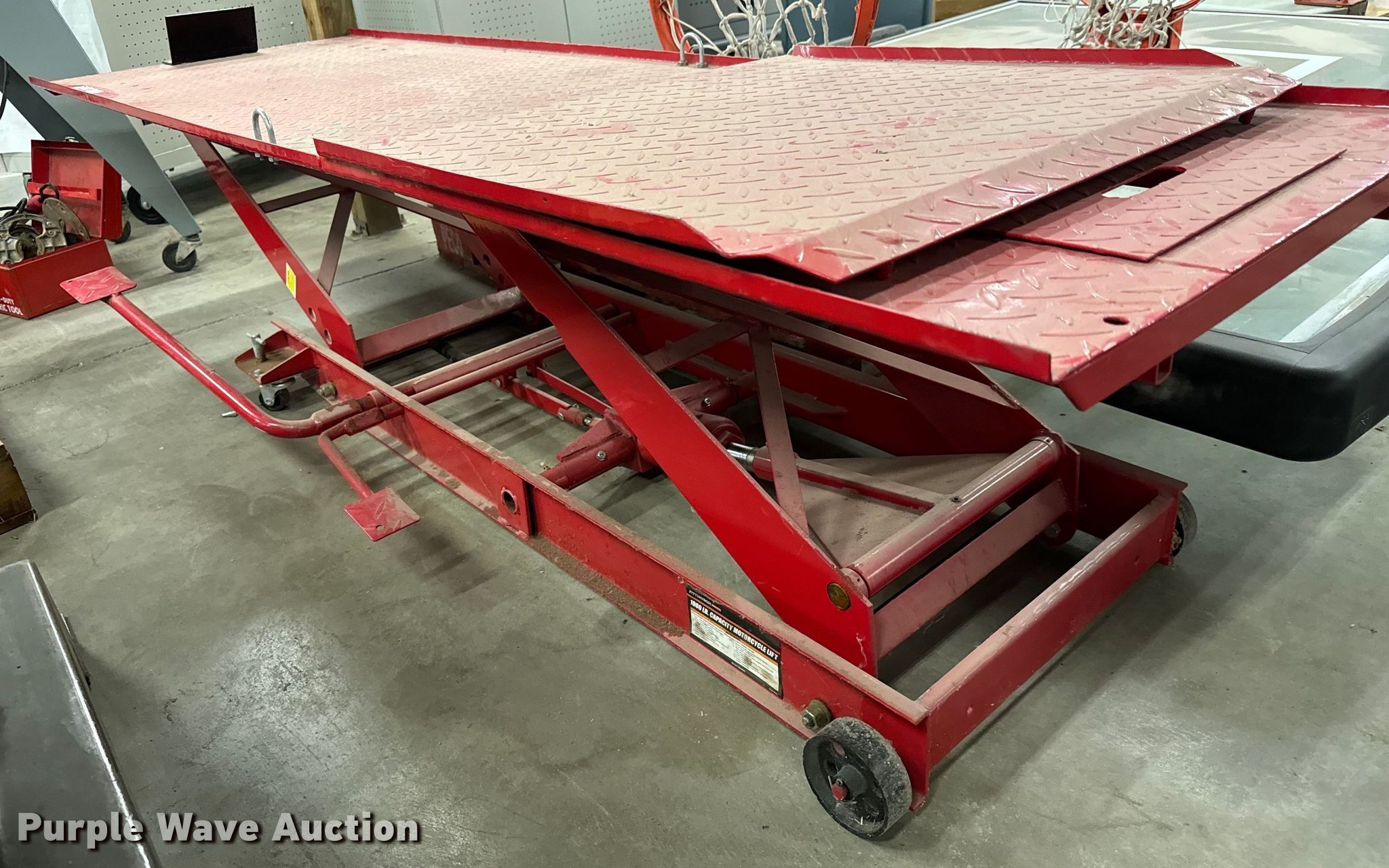 Purple Wave is selling a used Tools in Kansas. This item is a Pittsburgh motorcycle lift with the following: Capacity: 1,000 lbs