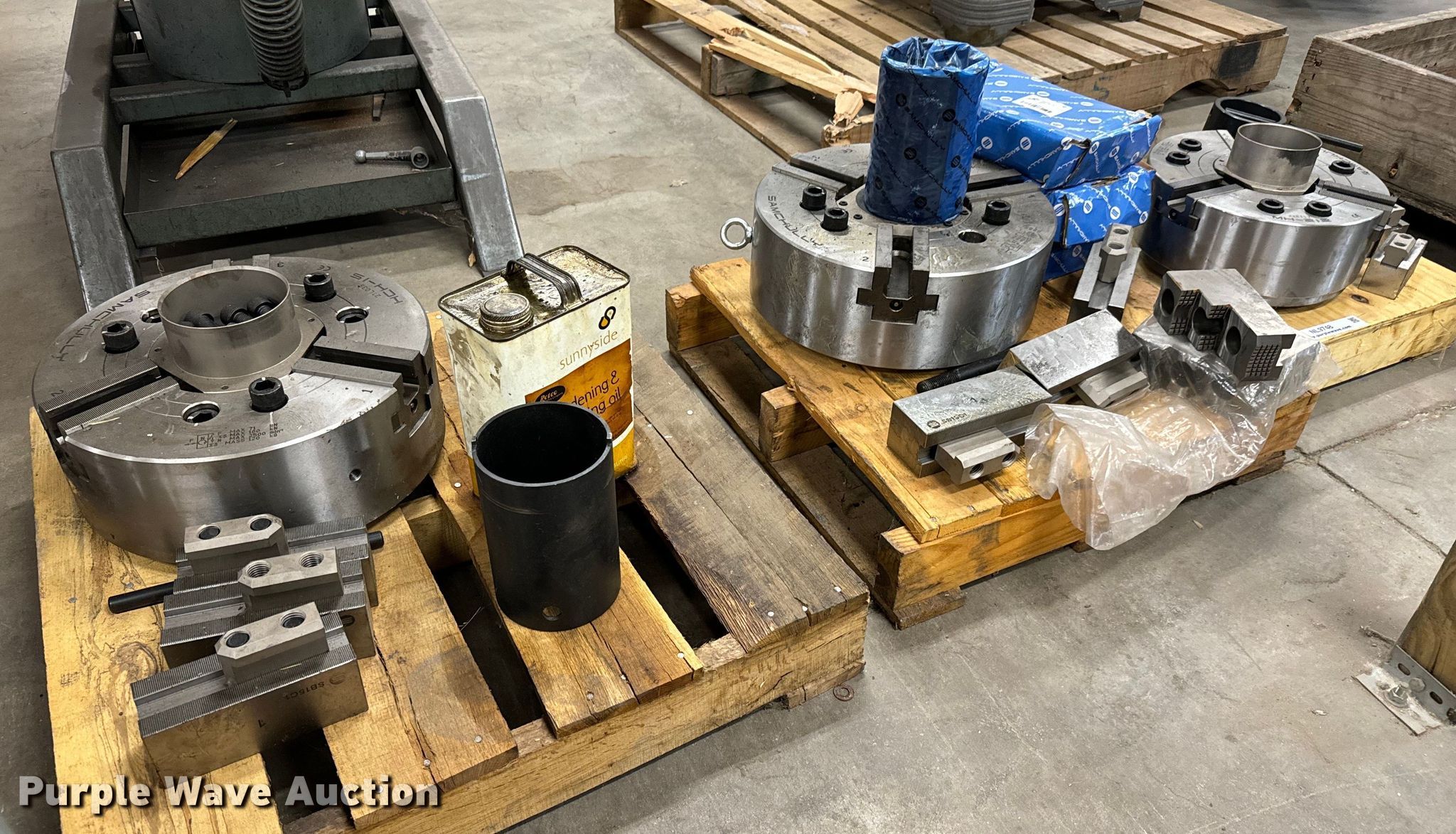 Purple Wave is selling a used Lathes, Manual in Kansas. This item is a (3) Samchully jaw lathe chucks with the following: (2) HCH-15, MH-212, Additional components included