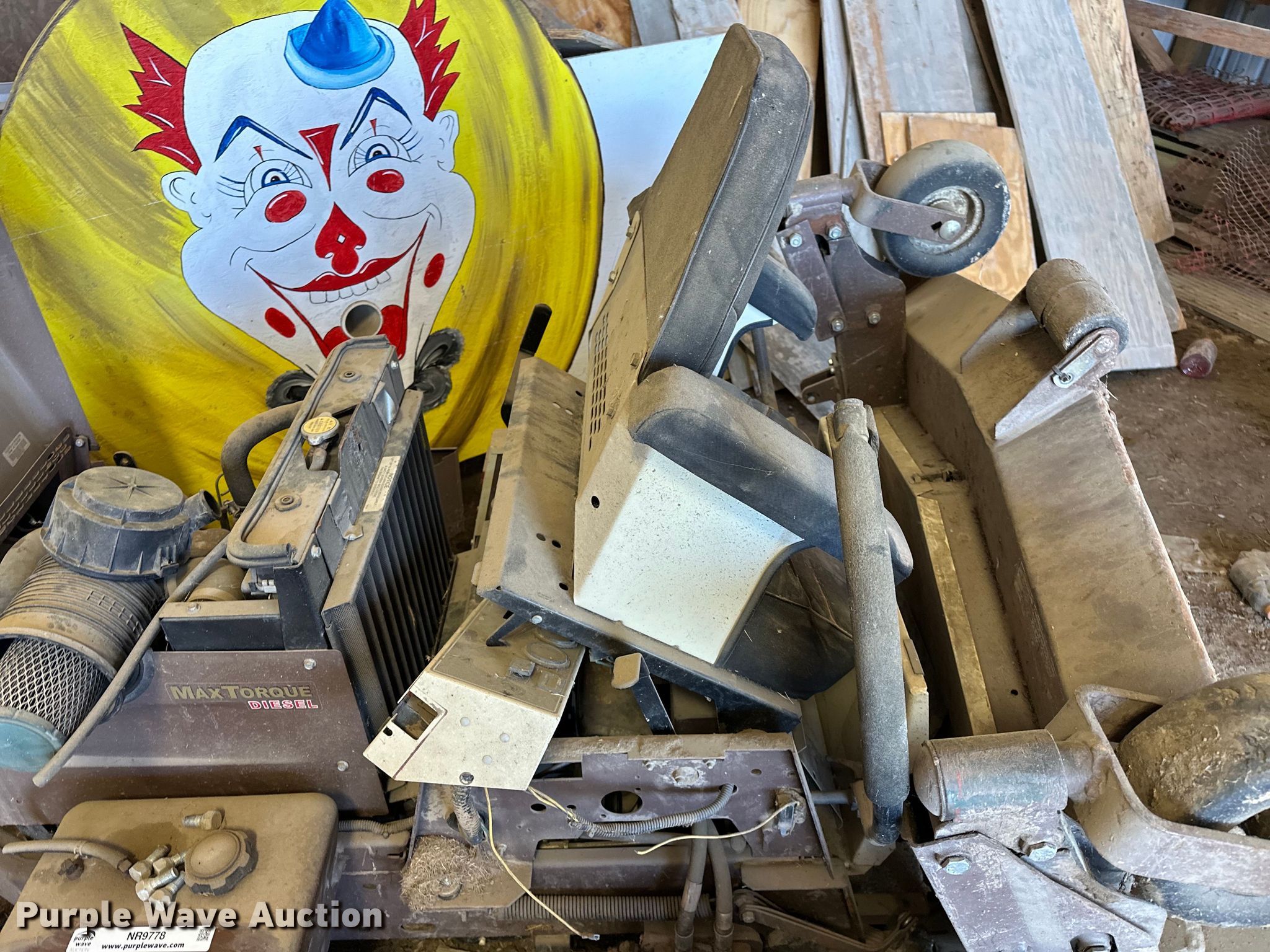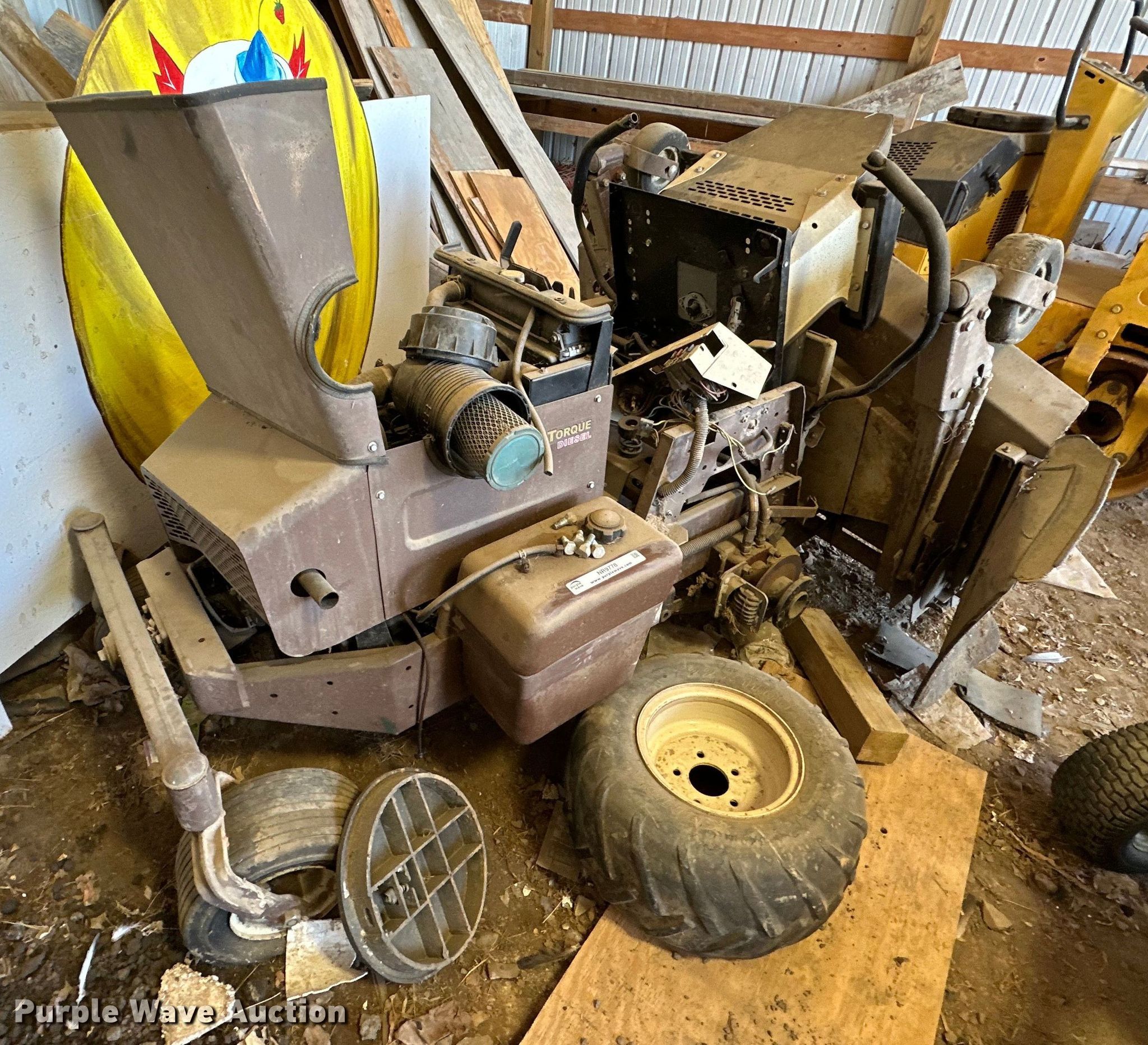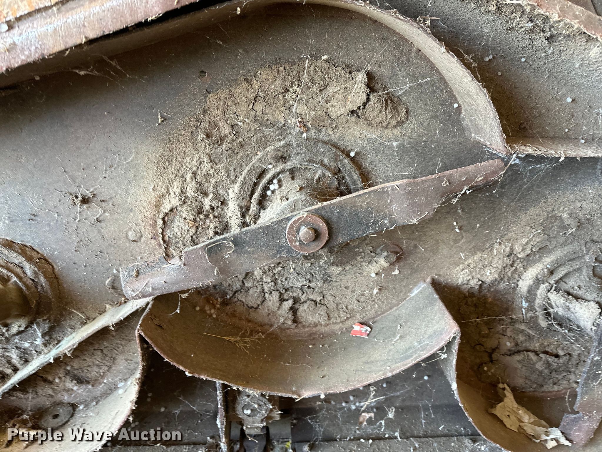 Grasshopper 722D ZTR lawn mower. Hours: 858 on meter, Cutting width: 61". Engine Kubota D902-E, Displacement: 0.898L, Cylinders: 3, Fuel type: Diesel. Transmission Hydrostatic. Features Flip up front deck. Tires Front: 22x11.00-10, Rear: 13x6.50-6. Notes Dead battery, Flat tires, Tire removed, Parts may be missing, Non-operational unit. Stilwell, OK 74960