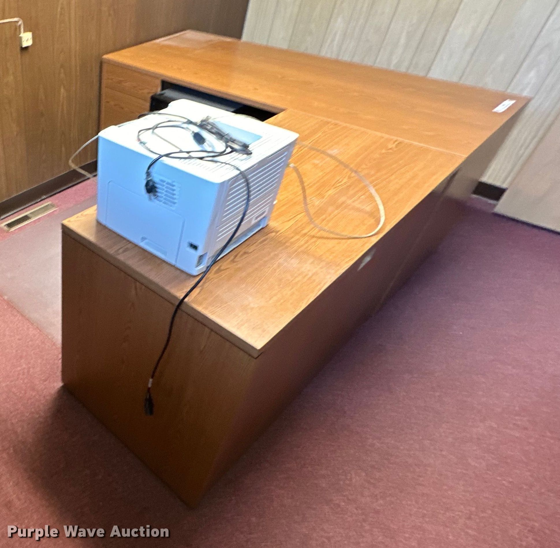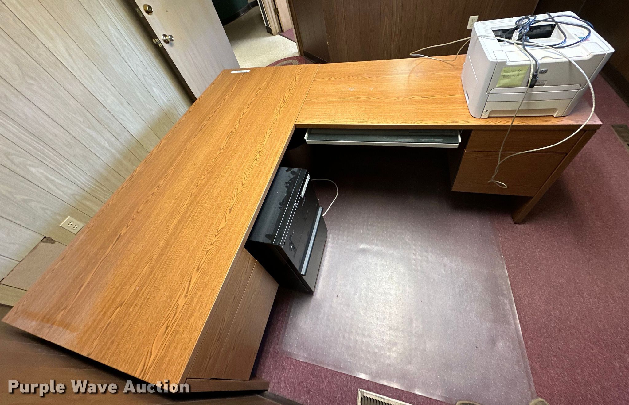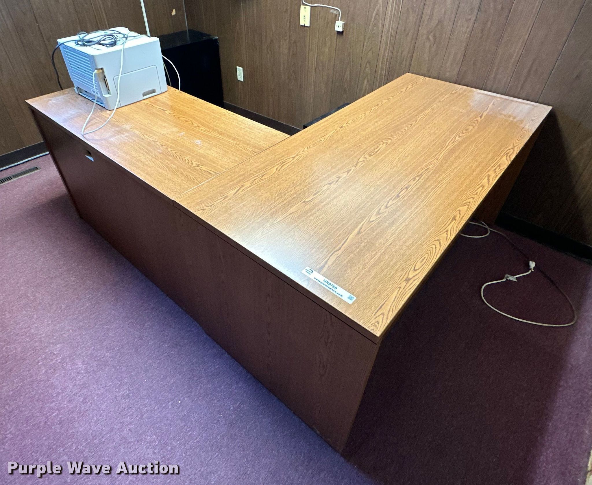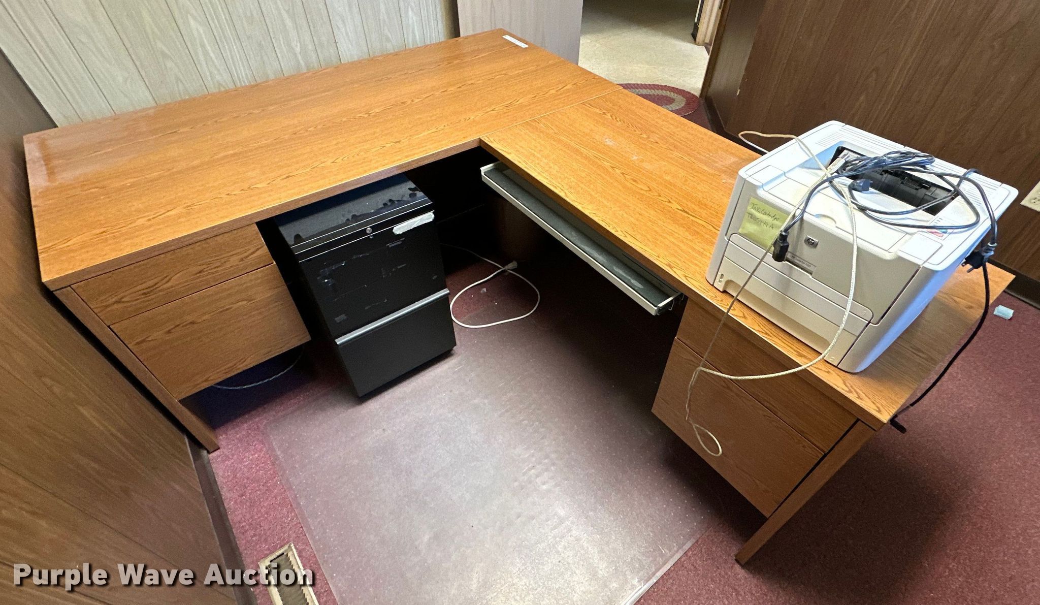 Purple Wave is selling a used Furniture in Oklahoma. This item is a Office furniture with the following: (2) desks, (2) filing cabinets, Printer