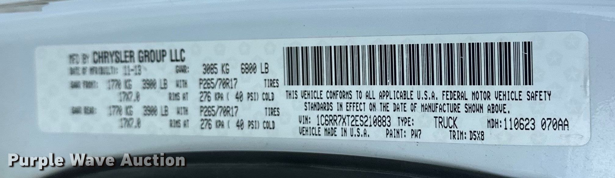 Purple Wave is selling a used 1/2 Ton Pickup or Van in Oklahoma. This item is a 2014 Dodge Ram 1500 Crew Cab pickup truck with the following: Miles: 222,189 on odometer, VIN: 1C6RR7XT2ES210883