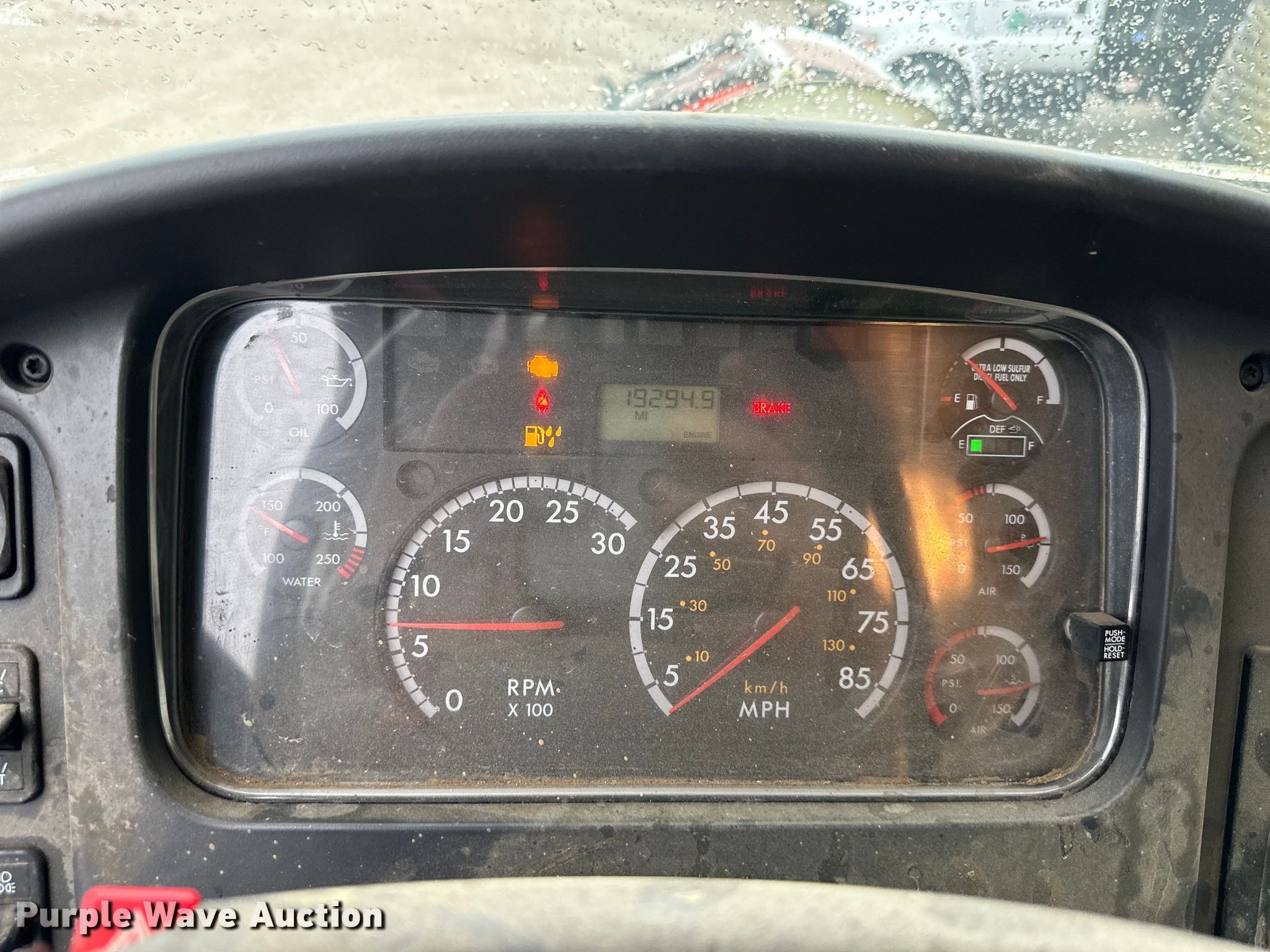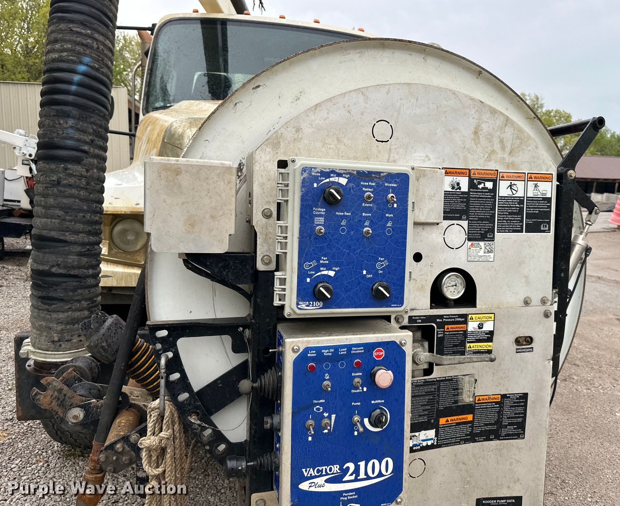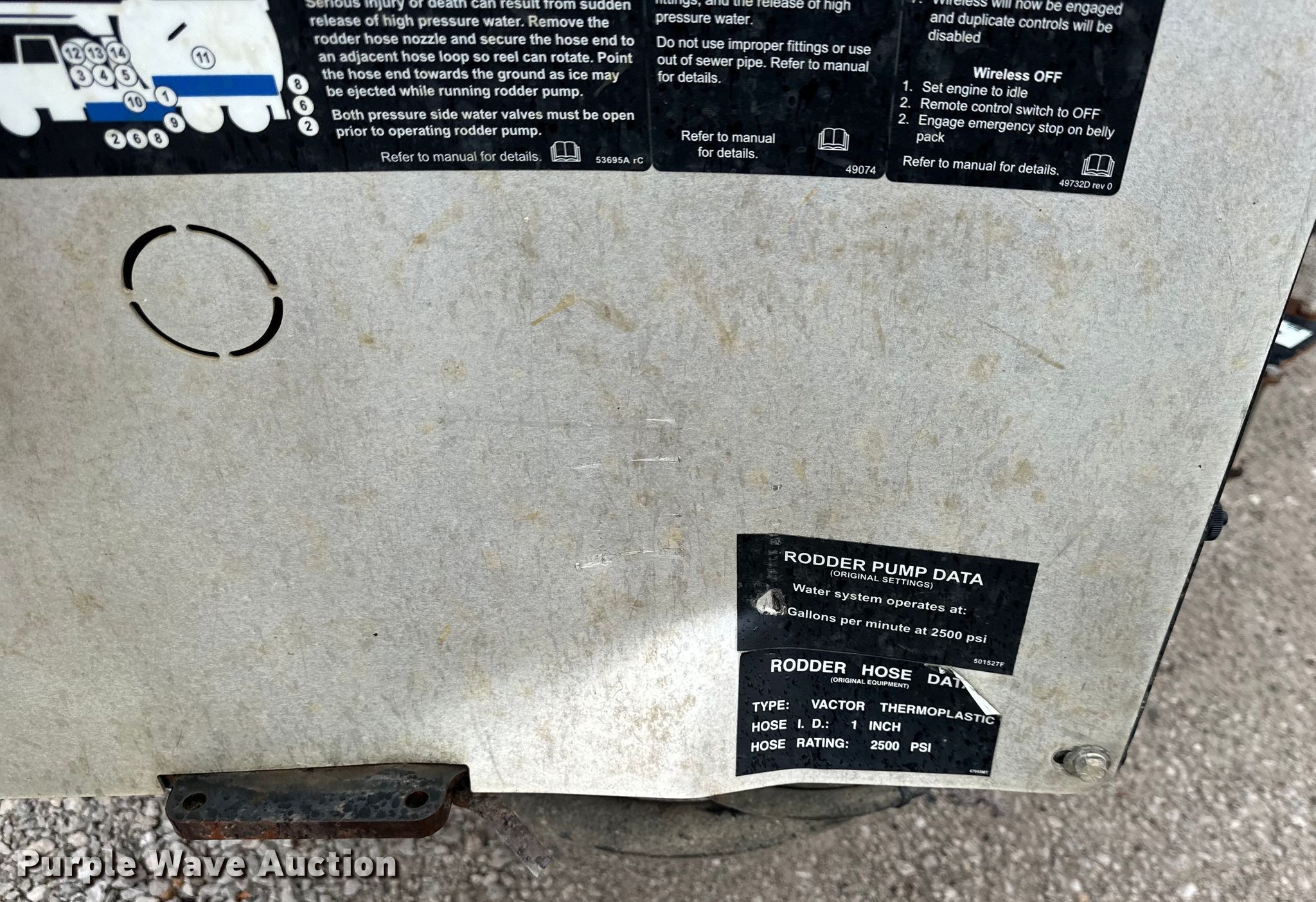 2016 Freightliner 114SD sewer jetter truck. Miles: 19,295 on odometer, Hours: 3,213 on meter, VIN: 1FVAG3CY0GHGX1948. Engine Cummins, Displacement: 8.9L, Cylinders: 6, Fuel type: Diesel. Transmission Allison, Automatic. Chassis Axles: Single, Suspension: Spring, Brakes: Air, PTO, GVWR: 46,000 lbs. Interior AC, Heat. Features Tank bed Vactor Guzzler 2100, Capacity: 2,100 gallons, Rear outlet: 6", Hose reel Front, Hydraulic, Diameter: 1", Telescopic boom Diameter: 10", Length: 18'.. Tires Front: 425/65R22.5, Rear: 12R22.5. Notes Dash warning indicator: Check engine, Water in fuel, Dead battery, Possible vacuum issues. Missouri title. Title distribution may be delayed up to 14 days from verification of funds. Gladstone, MO 64119
