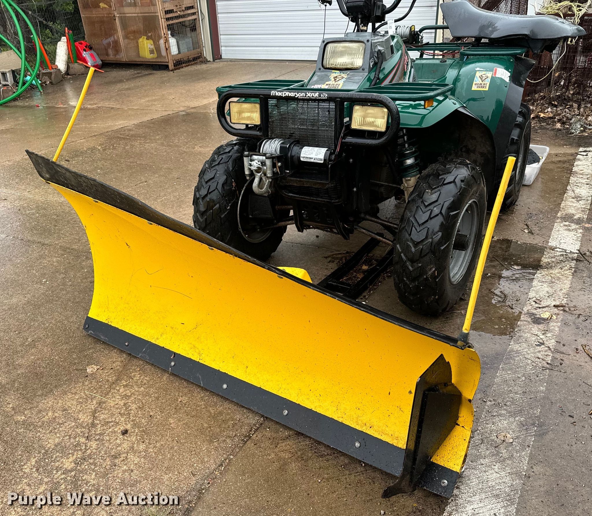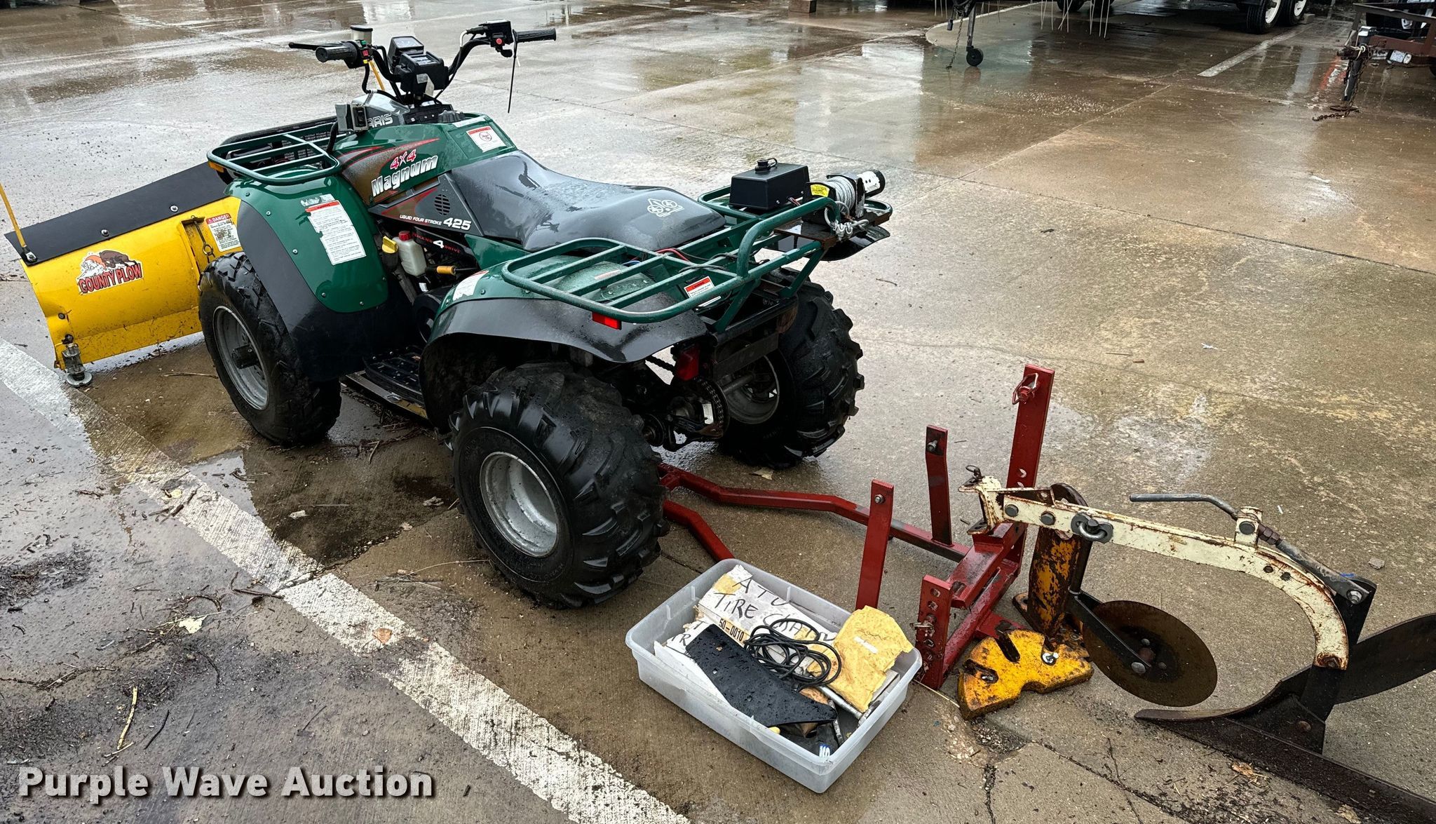 1997 Polaris Magnum ATV. Miles: 1,668 on odometer, VIN: 4XAAC42A0VB014945. Engine Displacement: 425cc, Cylinders: 1, Fuel type: Gas, Electric start. Transmission Automatic. Chassis Four wheel drive/ All wheel drive. Features Winch, Grille guard, Snow plow Country Plow, Width: 60", Chisel. Tires Front: 25x8-12, Rear: 25x11-10. Notes Additional parts, Non-operational unit. Kansas non-highway title. Title distribution may be delayed up to 14 days from verification of funds. Kansas Department of Wildlife & Parks. Wichita, KS 67220