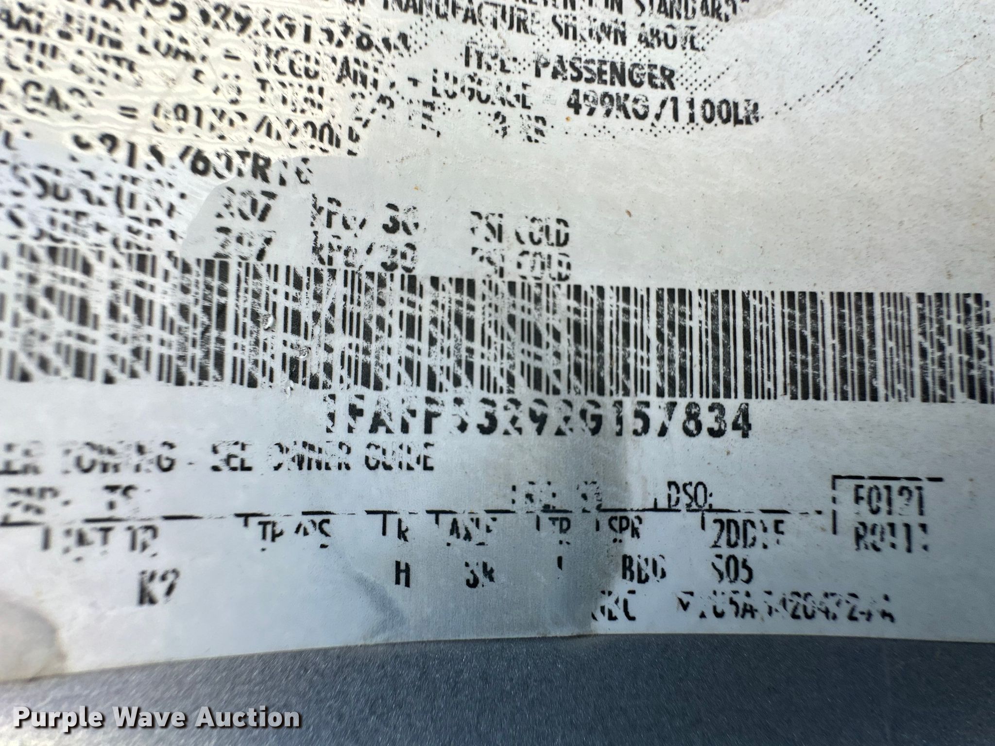 2002 Ford Taurus SE. Miles: 165,868 on odometer, VIN: 1FAFP53292G157834. Engine Displacement: 3.0L V6 OHV, Cylinders: 6, Fuel type: Gas. Transmission Automatic. Interior AC, Heat, Power windows, Power locks, Cruise control. Tires Size: 215/60R16. Notes Dash warning indicator: Check engine, Dead battery, Trans axle issues, Non-operational unit, Unit must be towed or hauled. Kansas title. Larned Correctional Mental Health Facility. Larned, KS 67550