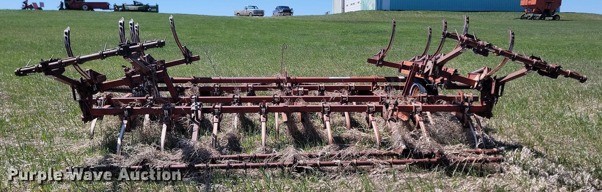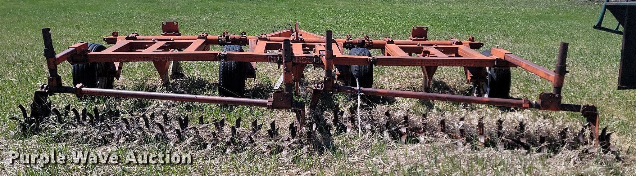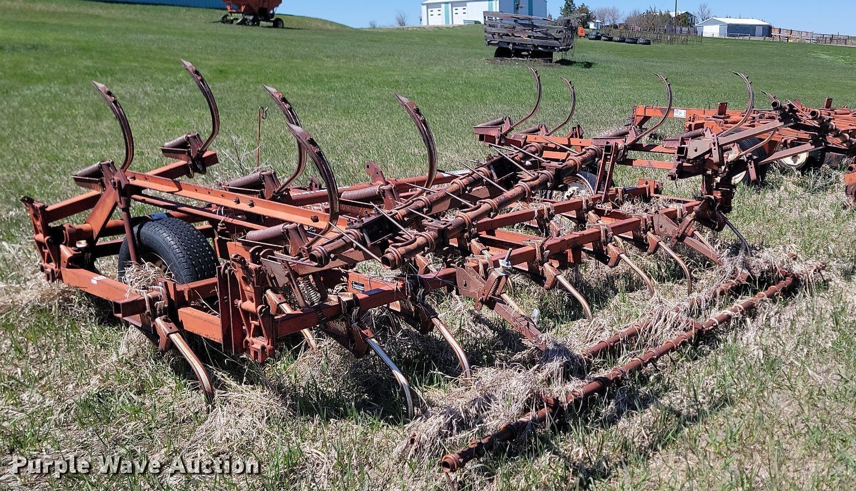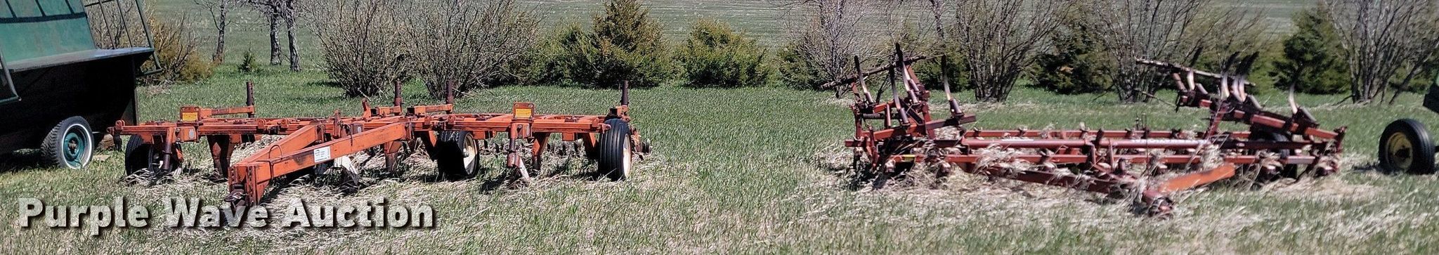 Vibra Shank chisel. Overall width: 19'. Features Shanks: 45. Notes Hydraulic cylinders missing, Non-operational unit. Richardson Stubble Mulcher Serial: 7426, Overall width: 15'. Features Attachments Rolling pickers/treader. Notes Non-operational unit. Doug and Jackie Nies. Draper, SD 57531