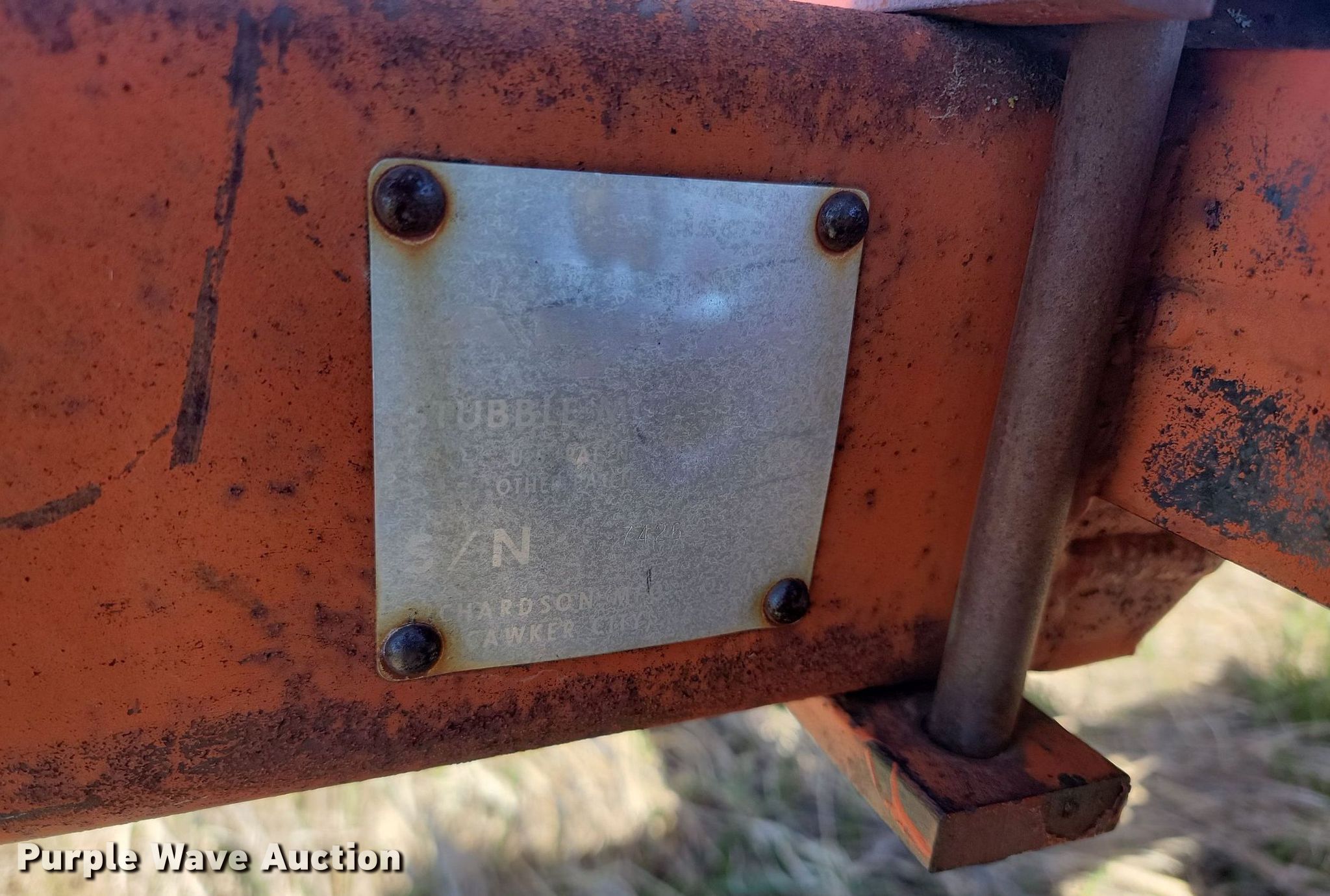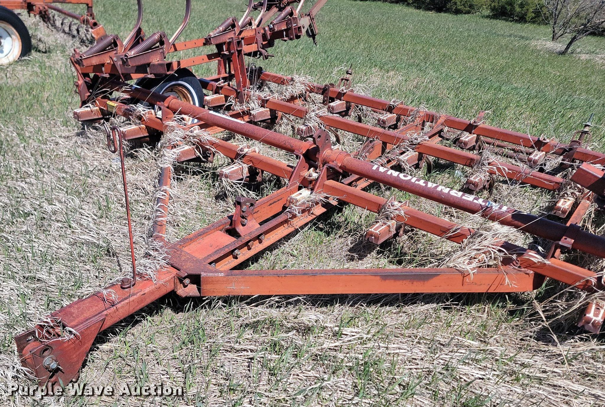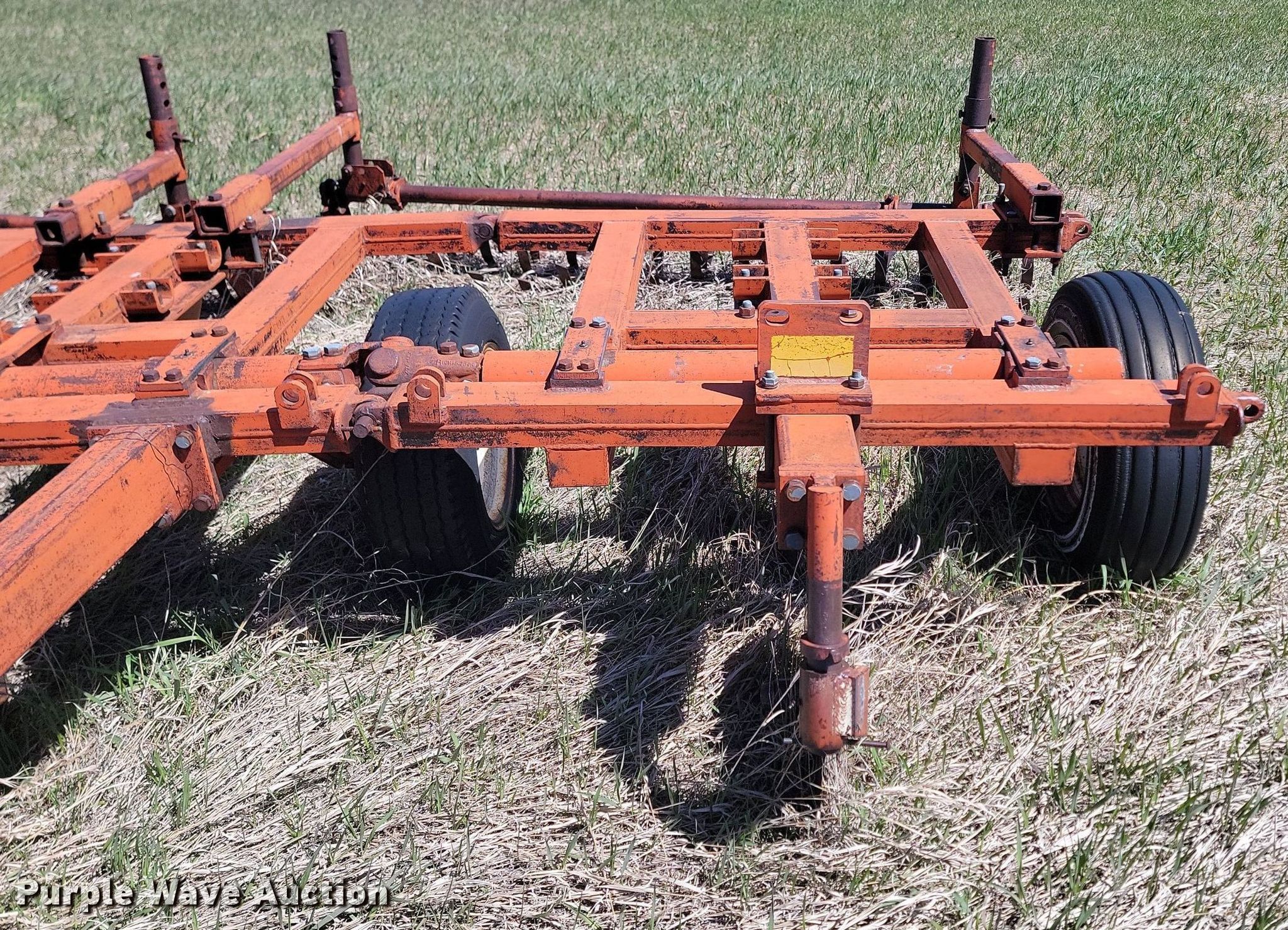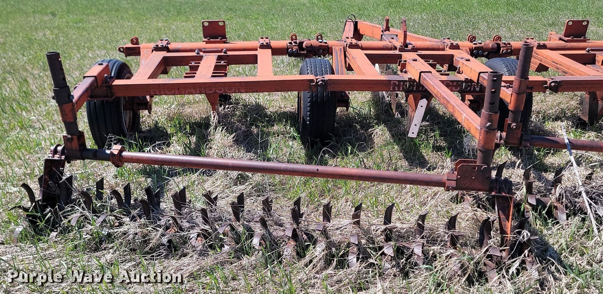 Vibra Shank chisel. Overall width: 19'. Features Shanks: 45. Notes Hydraulic cylinders missing, Non-operational unit. Richardson Stubble Mulcher Serial: 7426, Overall width: 15'. Features Attachments Rolling pickers/treader. Notes Non-operational unit. Doug and Jackie Nies. Draper, SD 57531